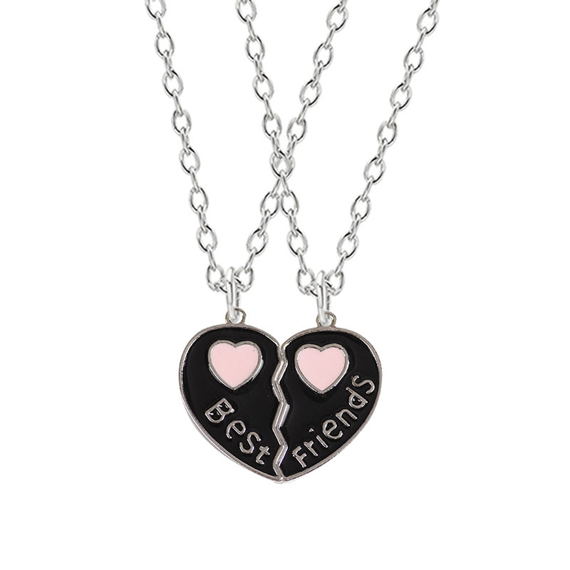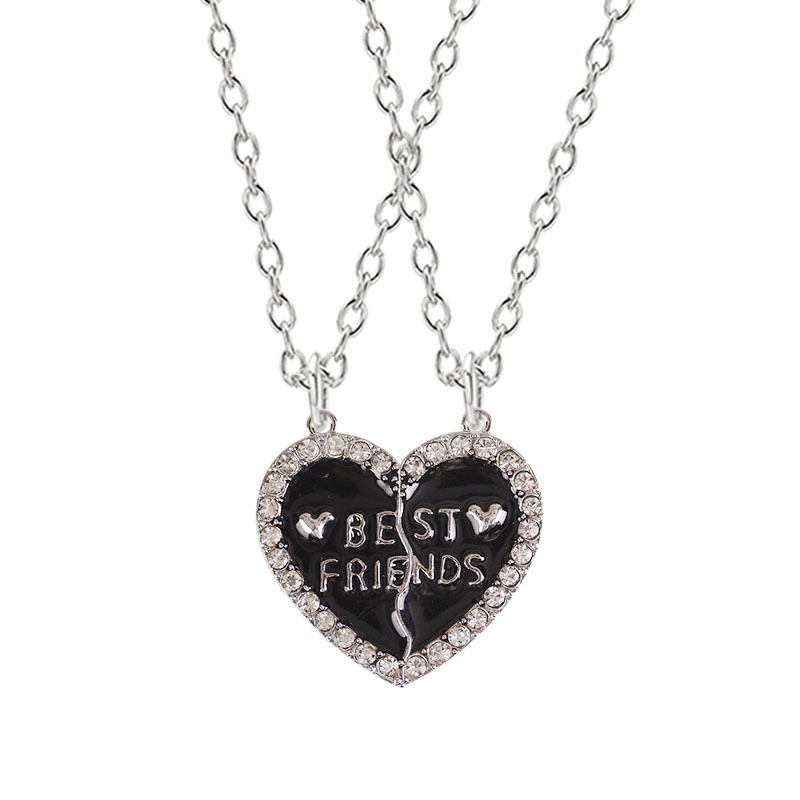 厂家批发好朋友系列BFF爱心拼接镶钻闺蜜项链姐妹二人吊坠