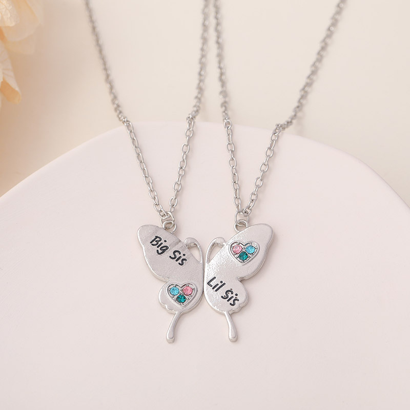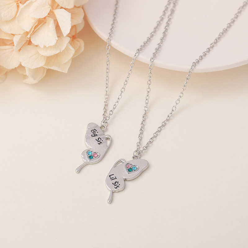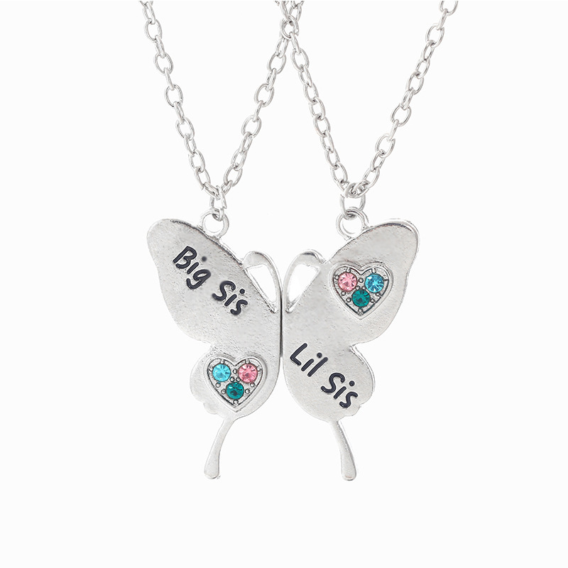 速卖通爆款蝴蝶形状爱心项链夸张个性不撞款独特情侣好朋友吊坠