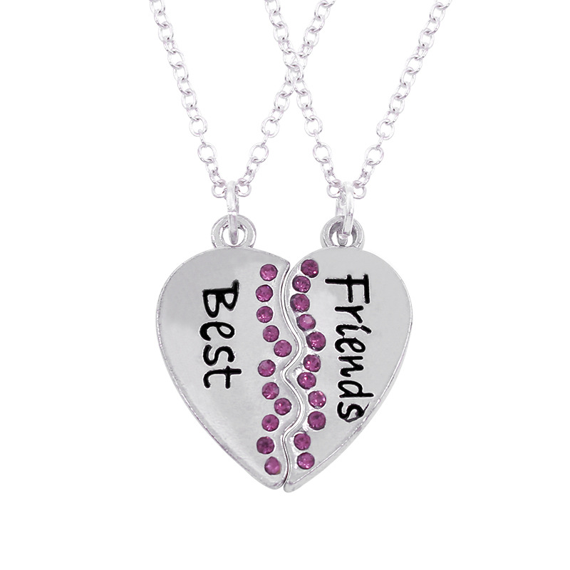欧美饰品好朋友系列镶钻爱心项链 女式心形情侣好朋友吊坠挂饰