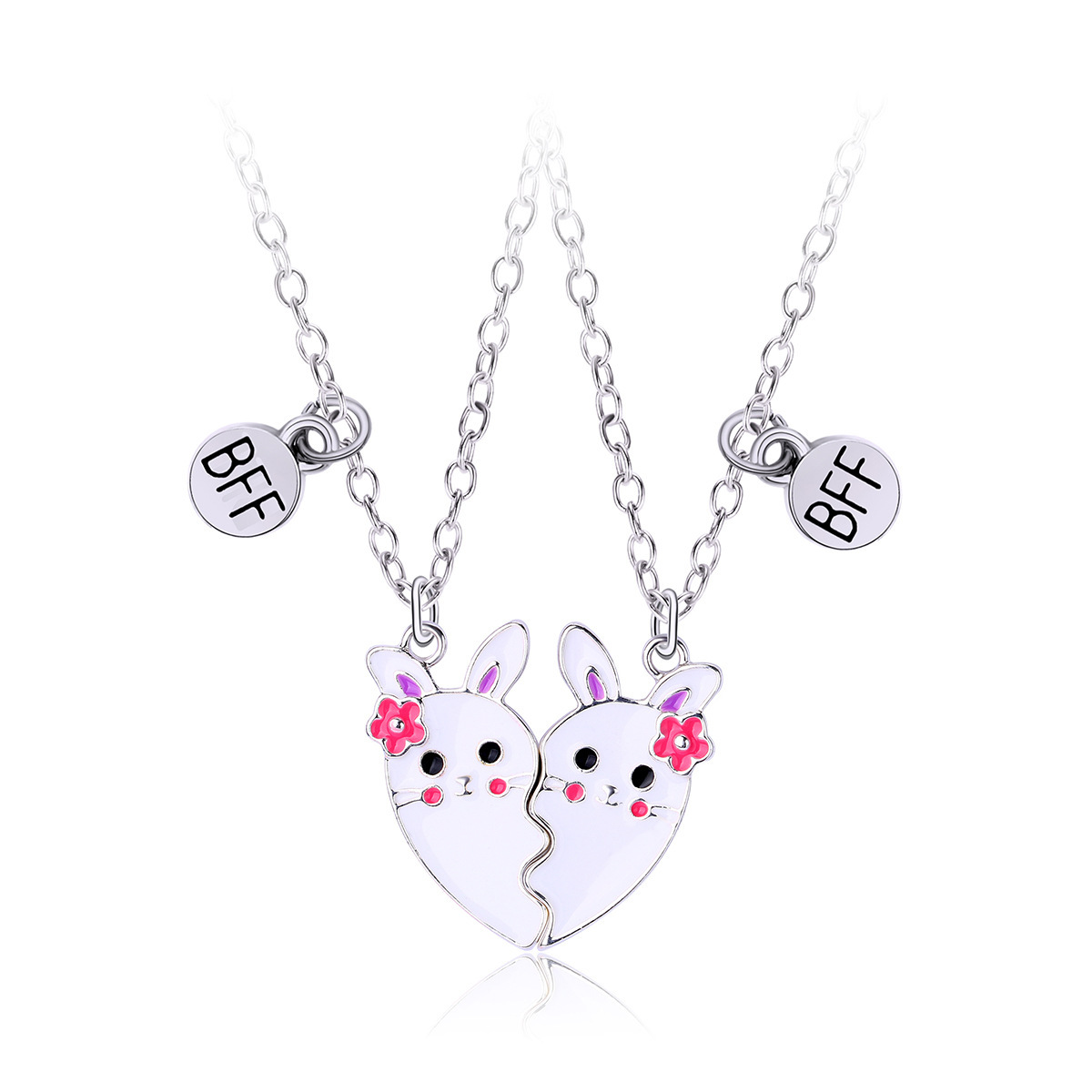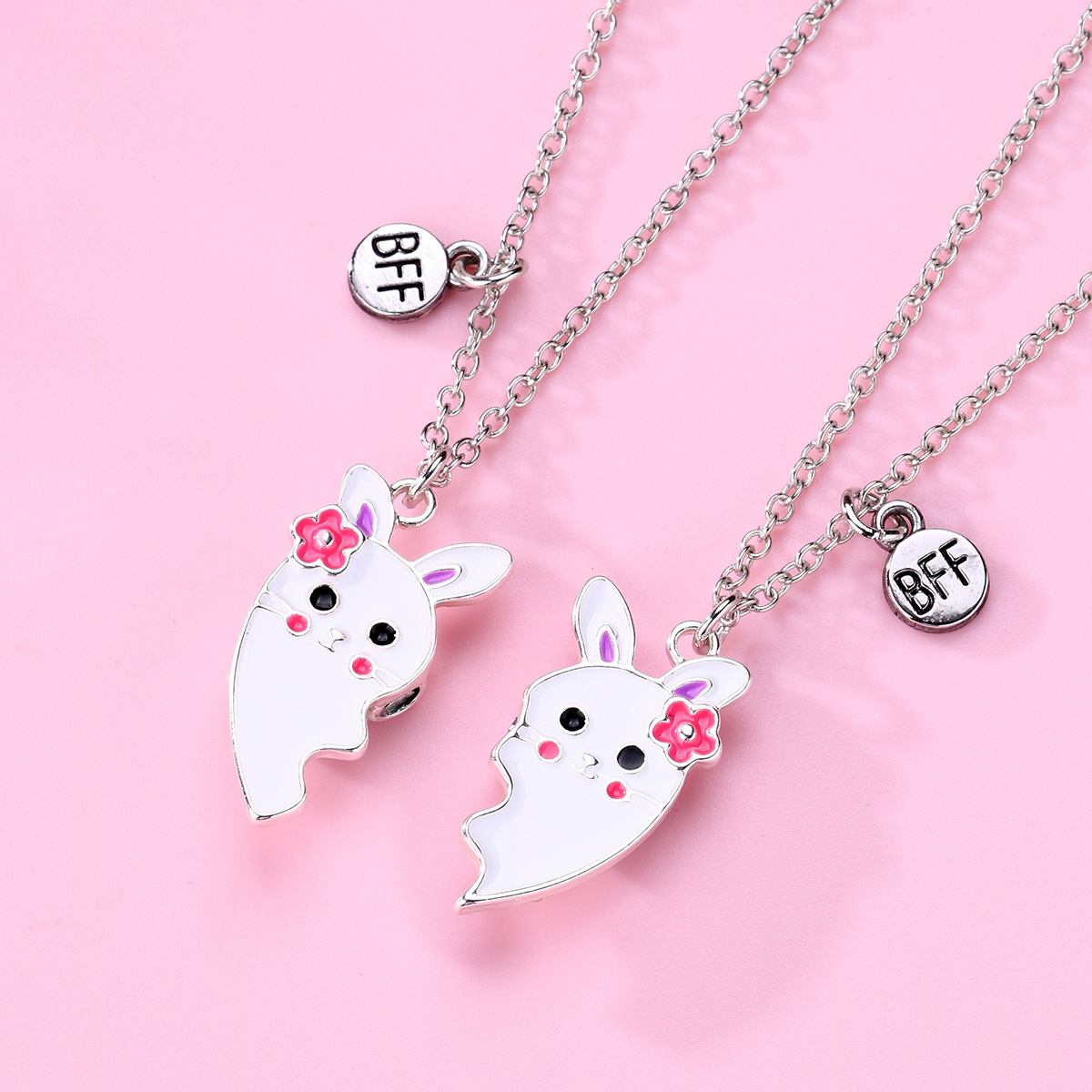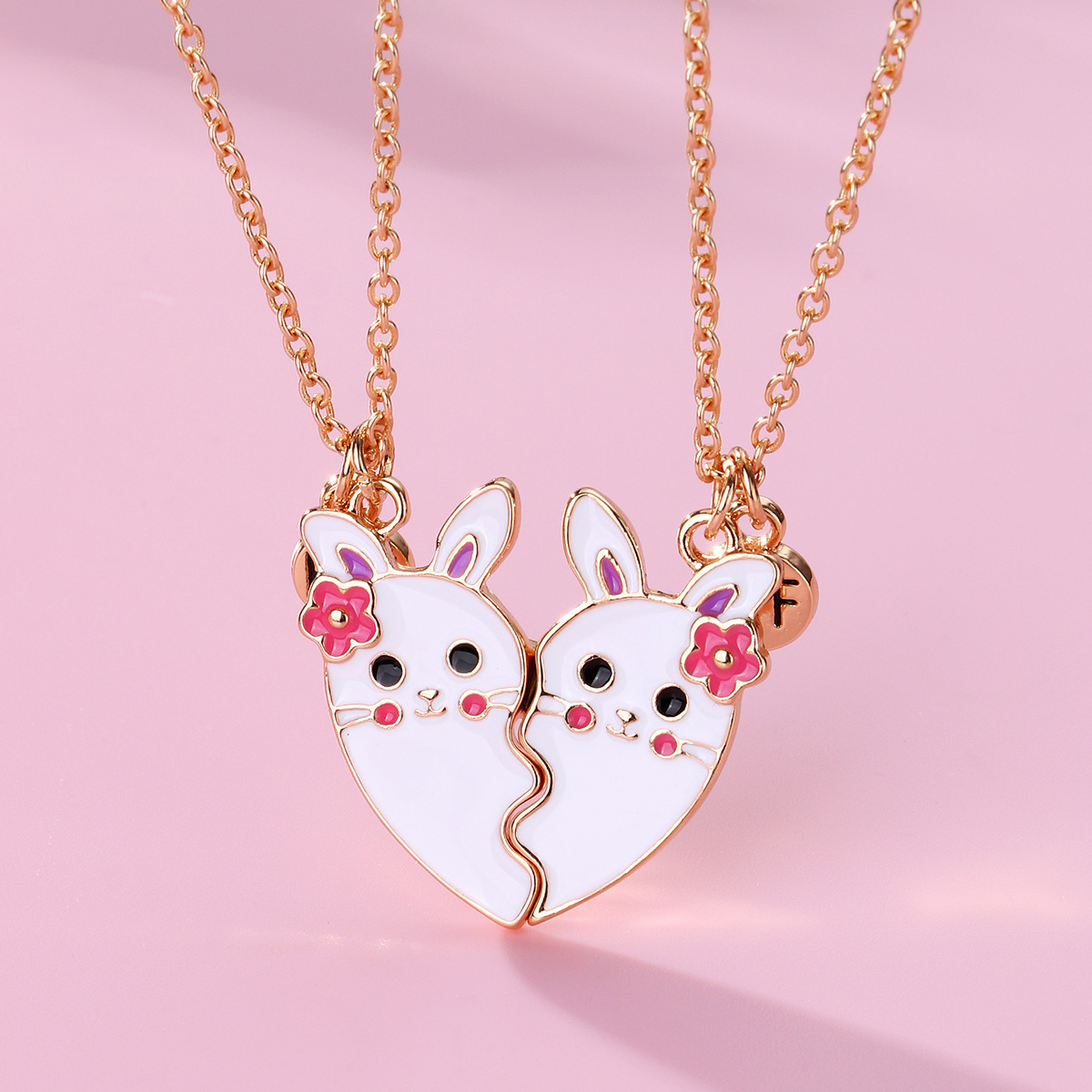 2024新款儿童磁吸可爱抱抱兔吊坠项链bff好朋友闺蜜两人饰品批发