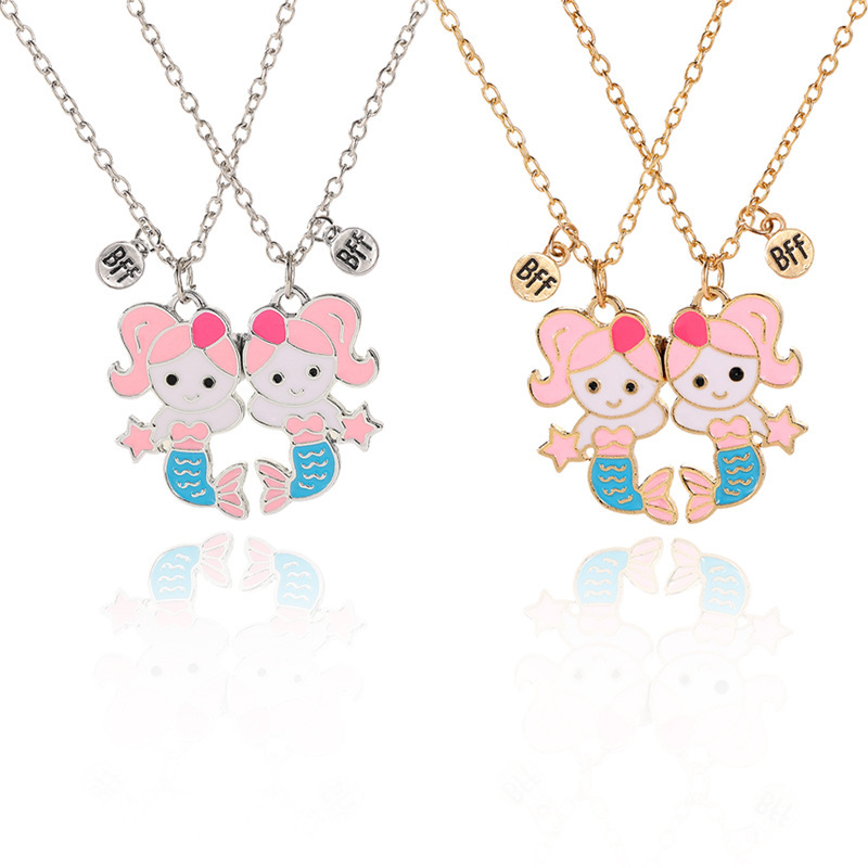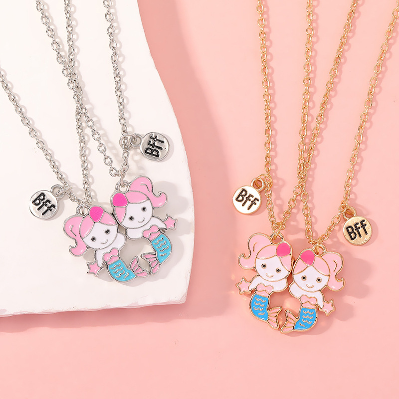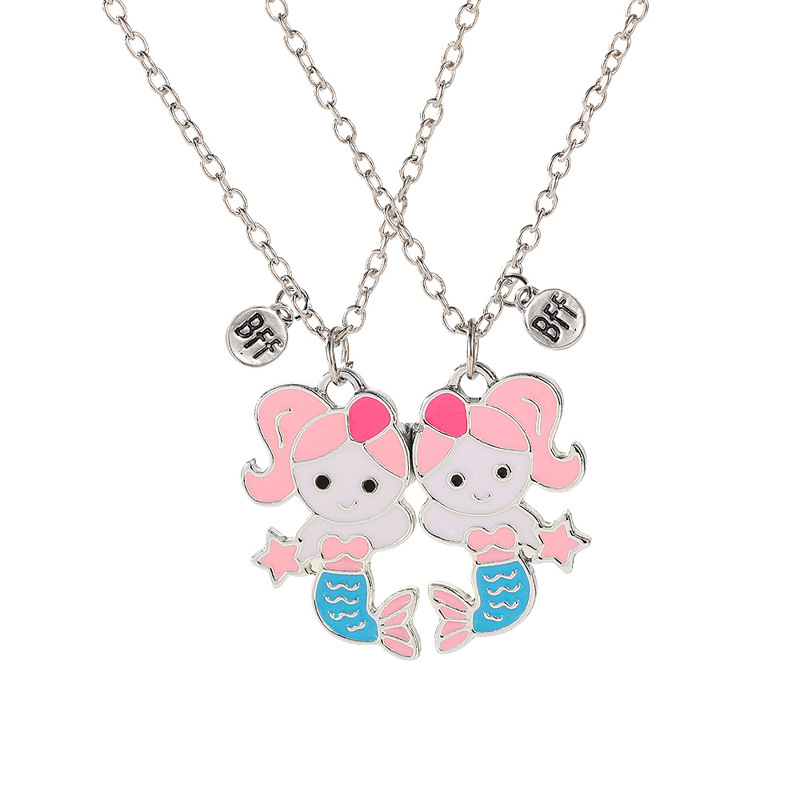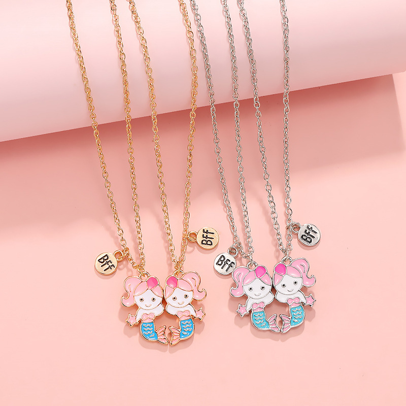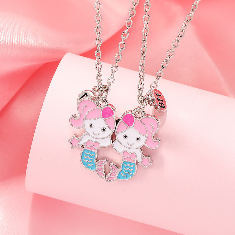 厂家批发欧美热销款小美人鱼BFF磁吸项链小众创意设计好朋友批发