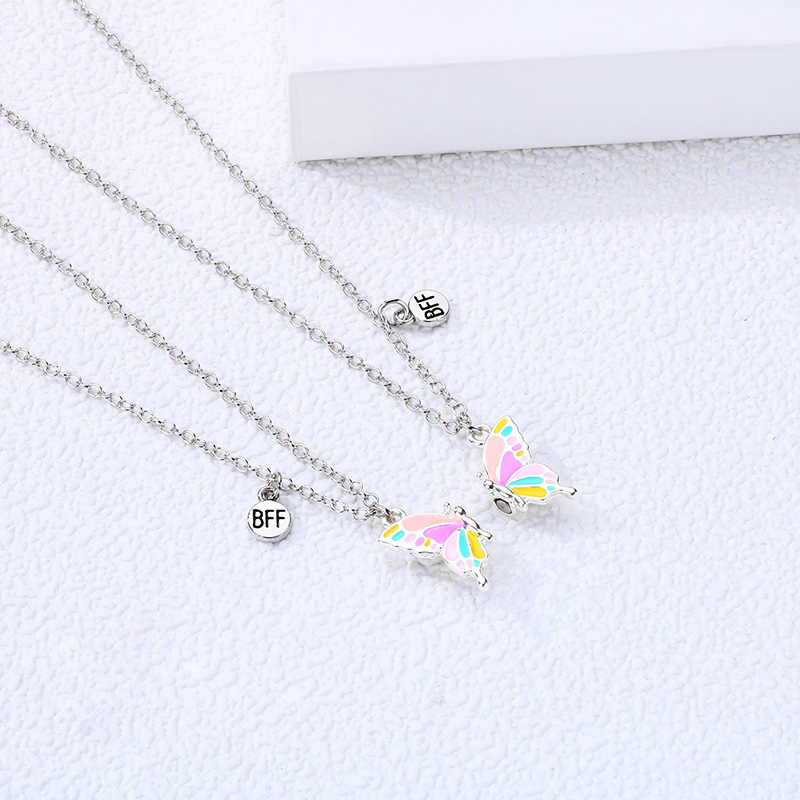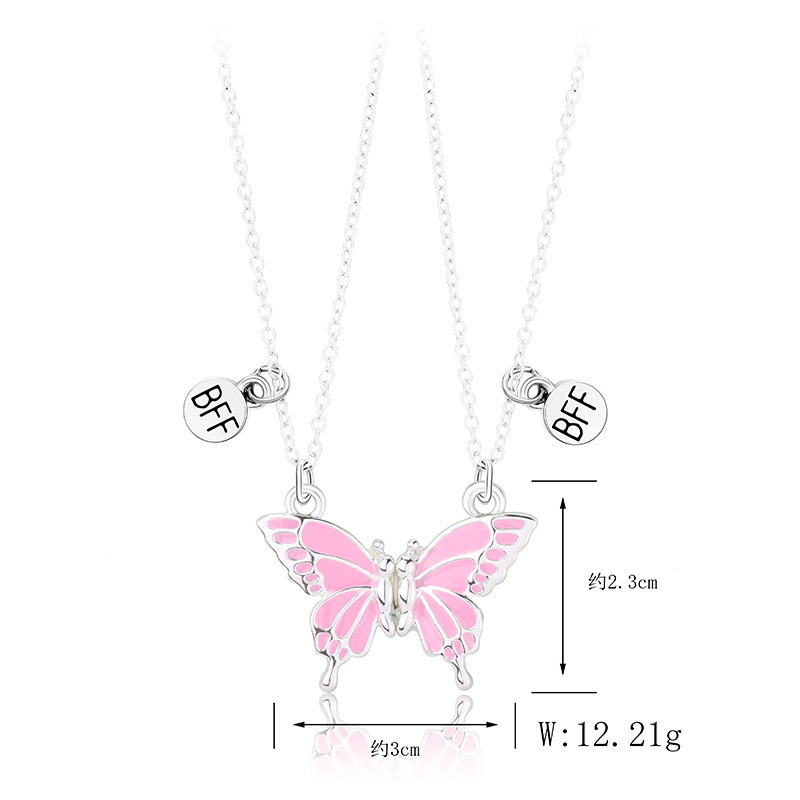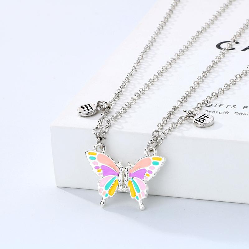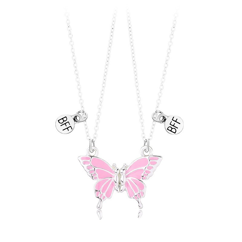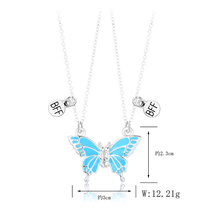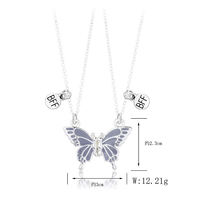 精美磁铁石蝴蝶项链女式创意拼接高级设计感好朋友闺蜜锁骨链吊坠