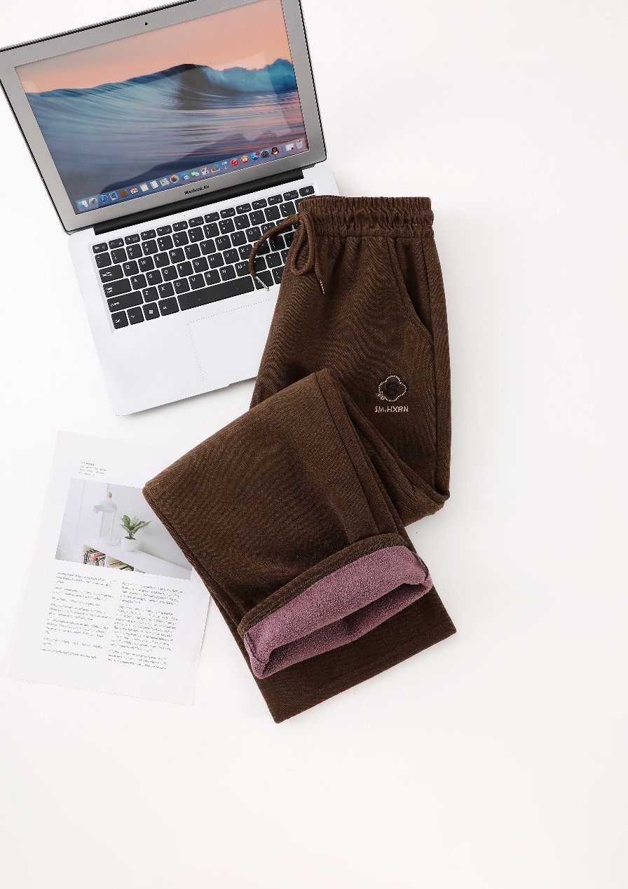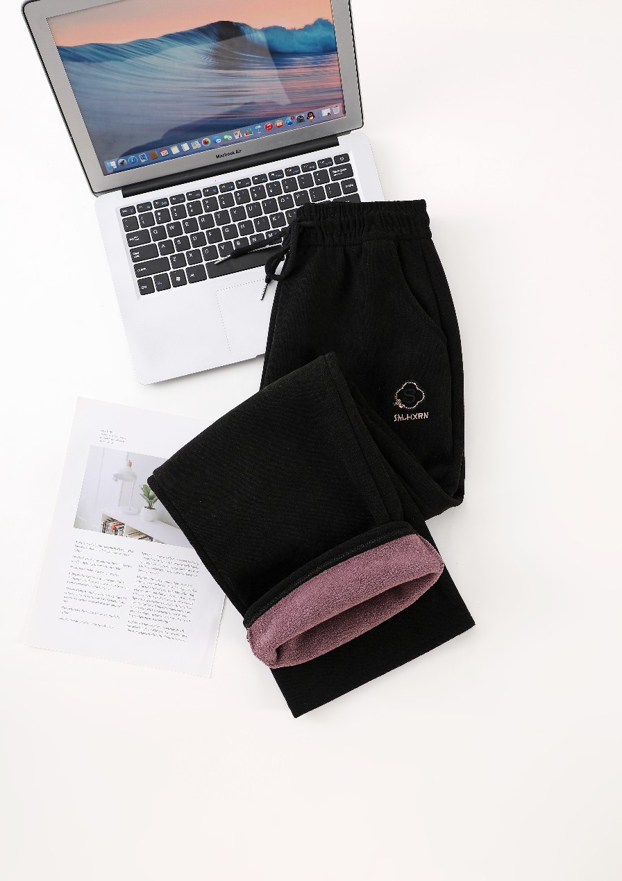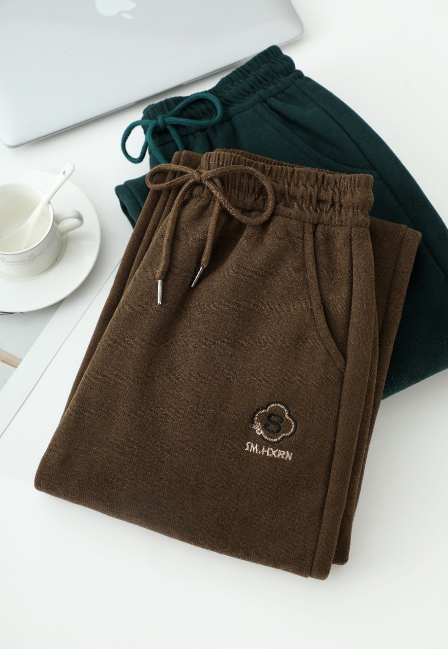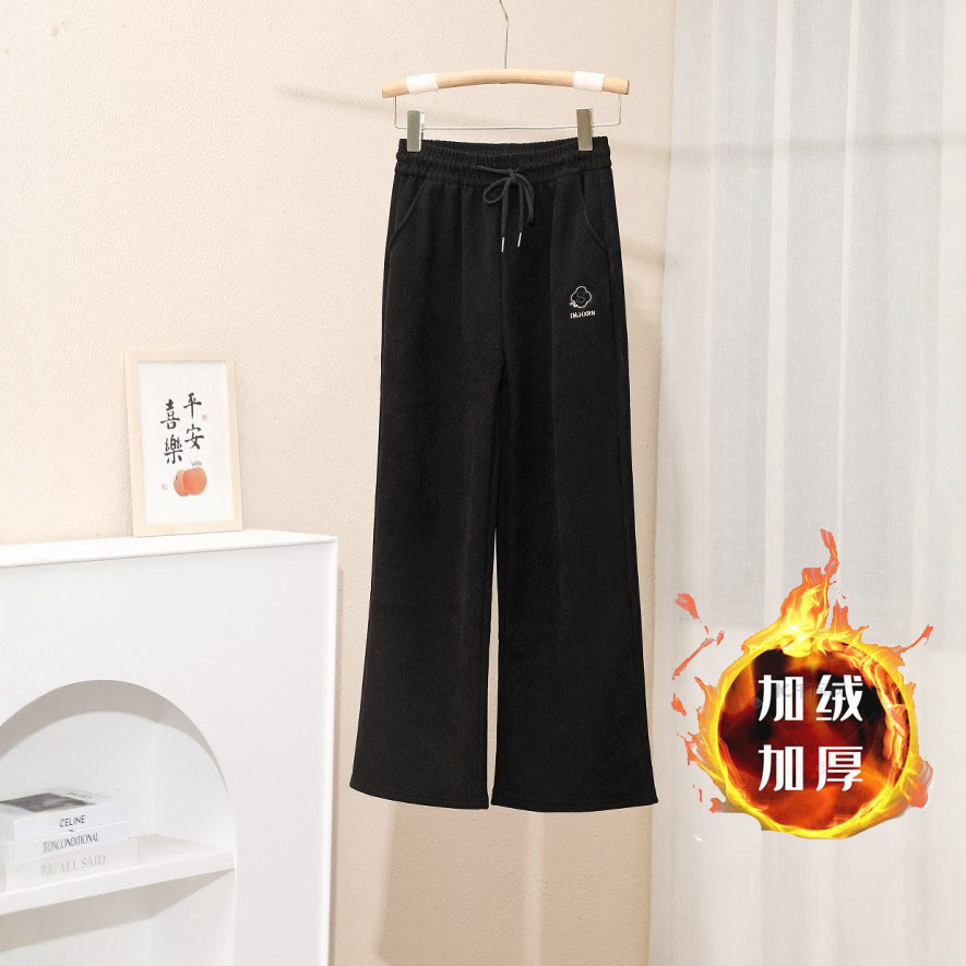 2024新款刺绣秋冬加绒加厚莫尔绒高腰显瘦休闲女裤直筒阔腿外穿