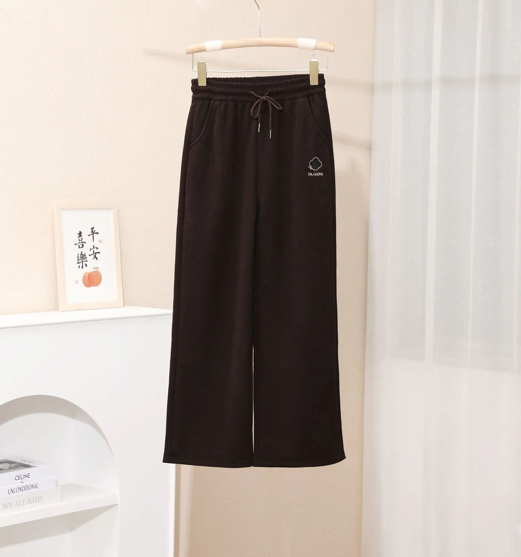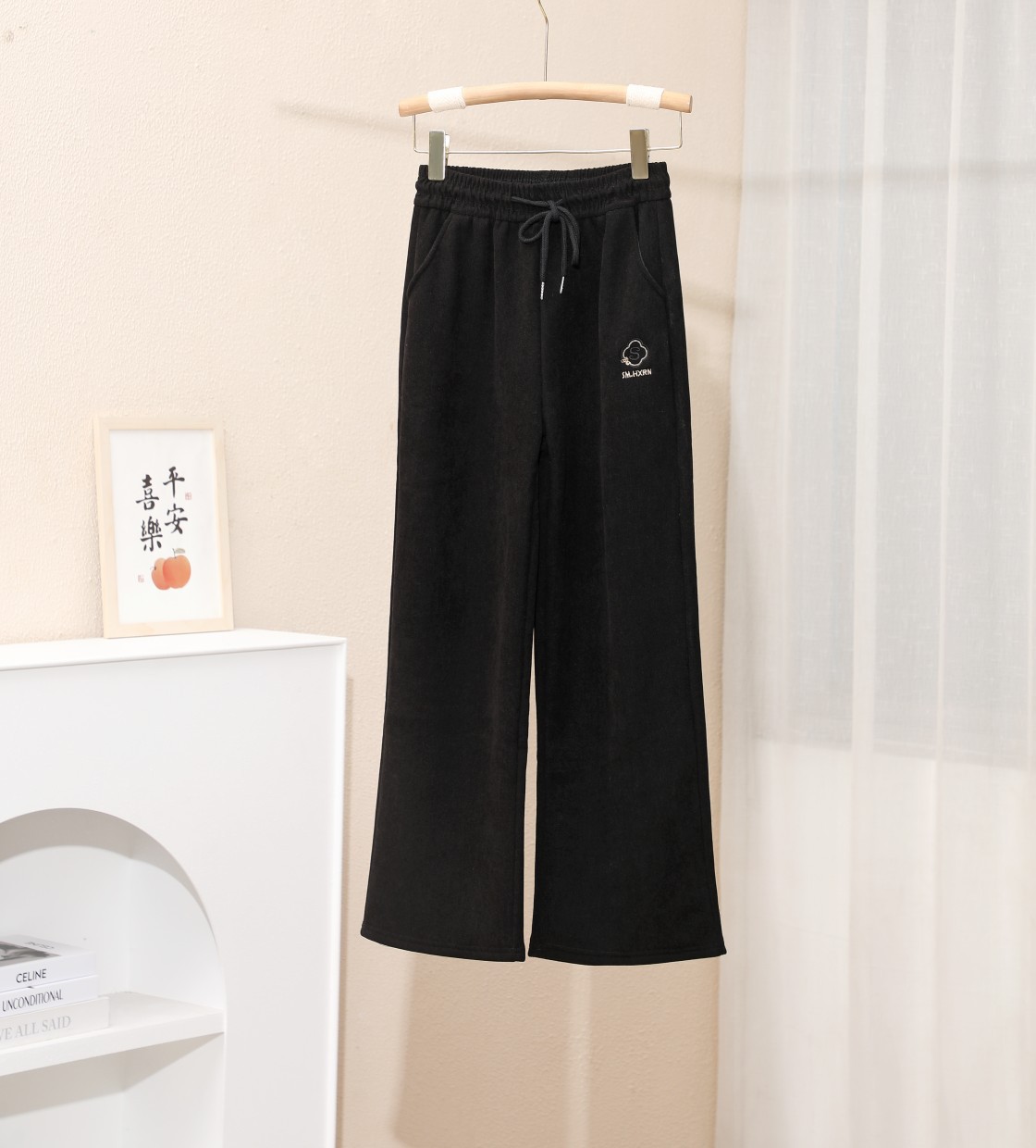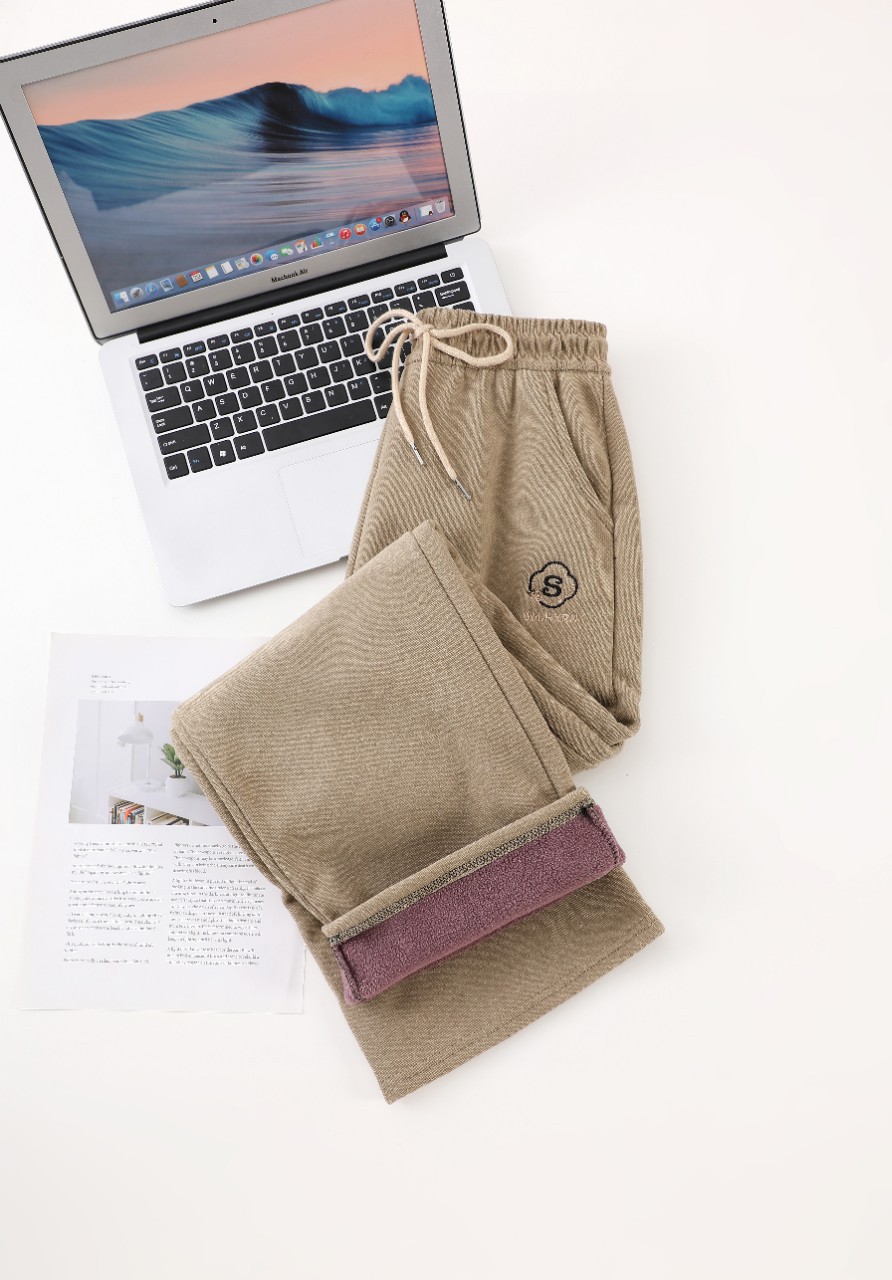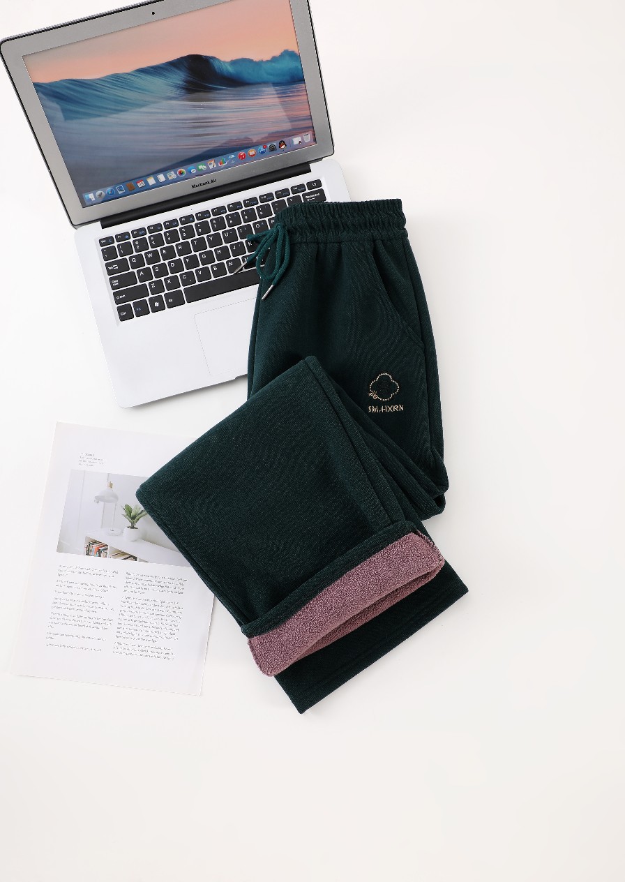 2024新款刺绣秋冬加绒加厚莫尔绒高腰显瘦休闲女裤直筒阔腿外穿