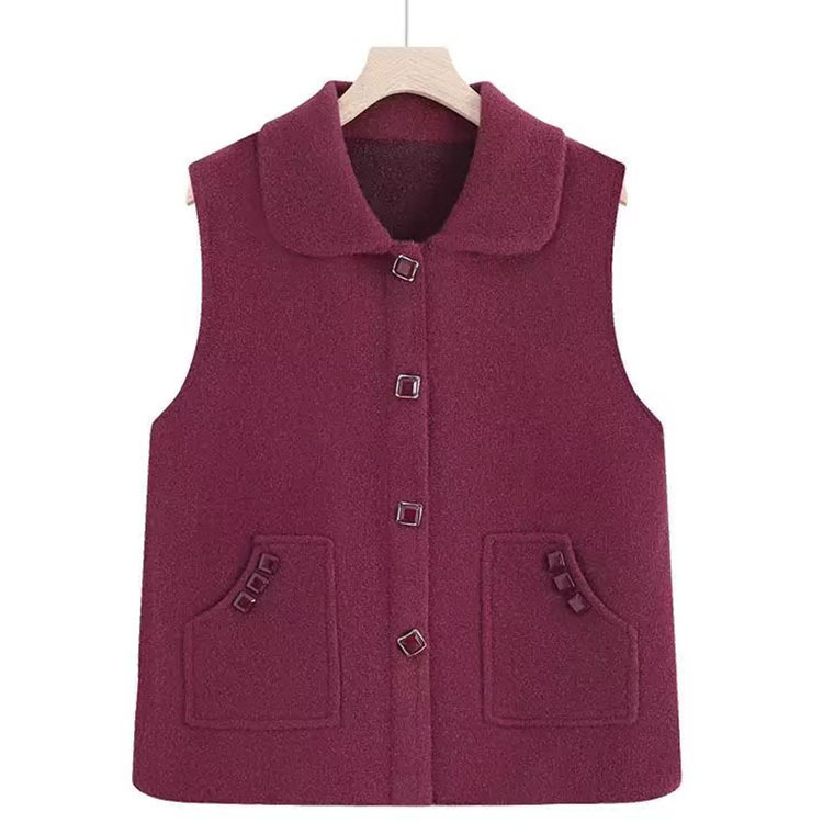 新款羊绒中老年女装针织春秋马甲老人妈妈马夹背心秋冬老年人坎肩