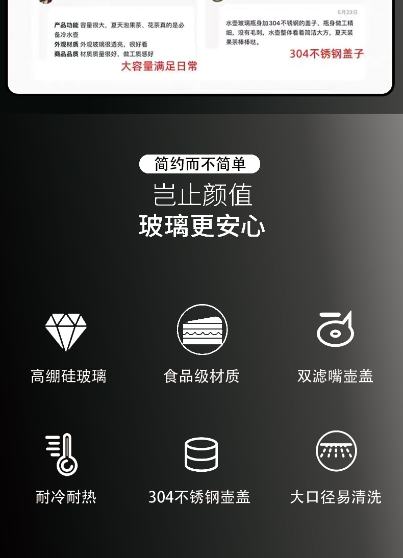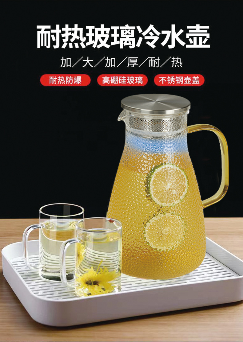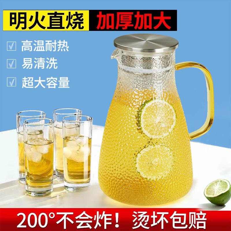 冷水壶高硼硅玻璃水壶大容量泡茶壶家用耐高温果汁储水扎壶凉水壶