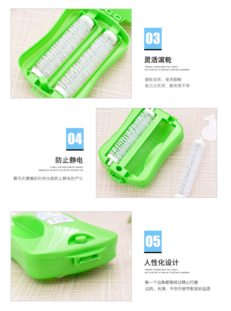 两排手抓多功能家用粘毛滚 双滚轮沙发地毯除尘刷子 创意防静电刷