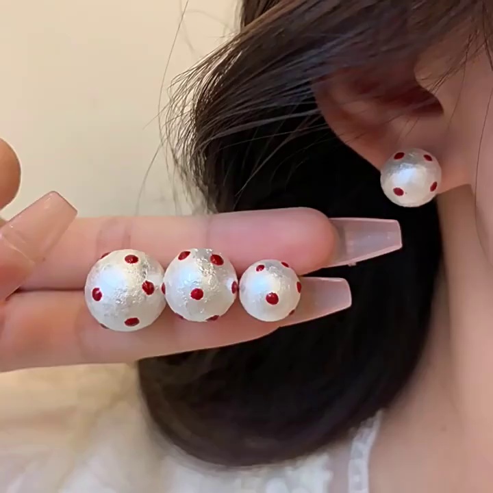 饰品百搭气质简约高级感耳环网红同款耳饰品韩系波点棉花珍珠耳钉