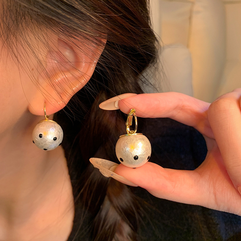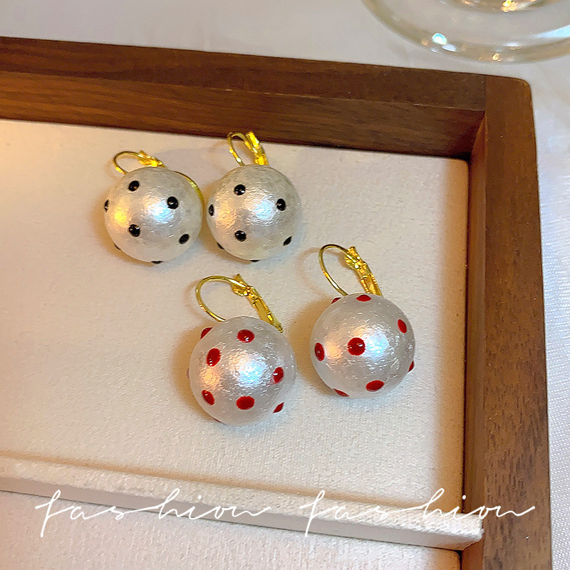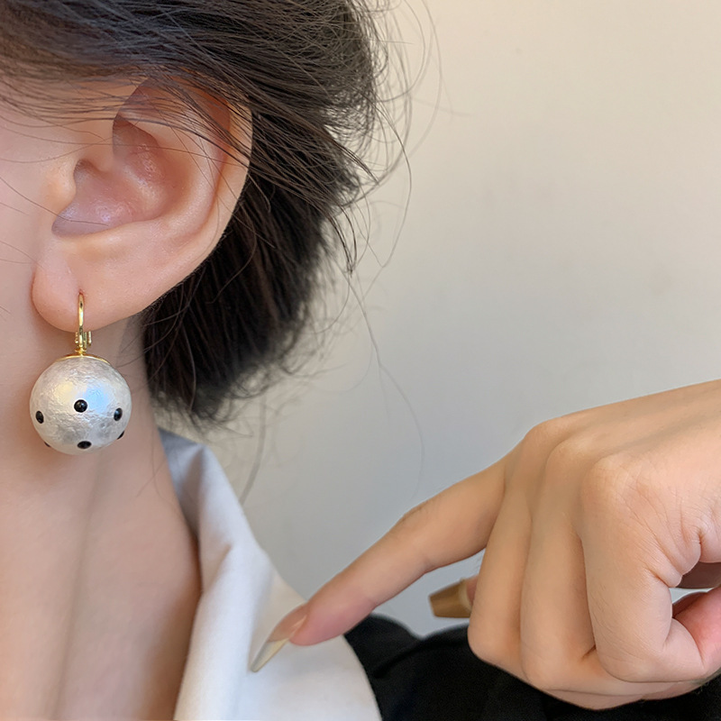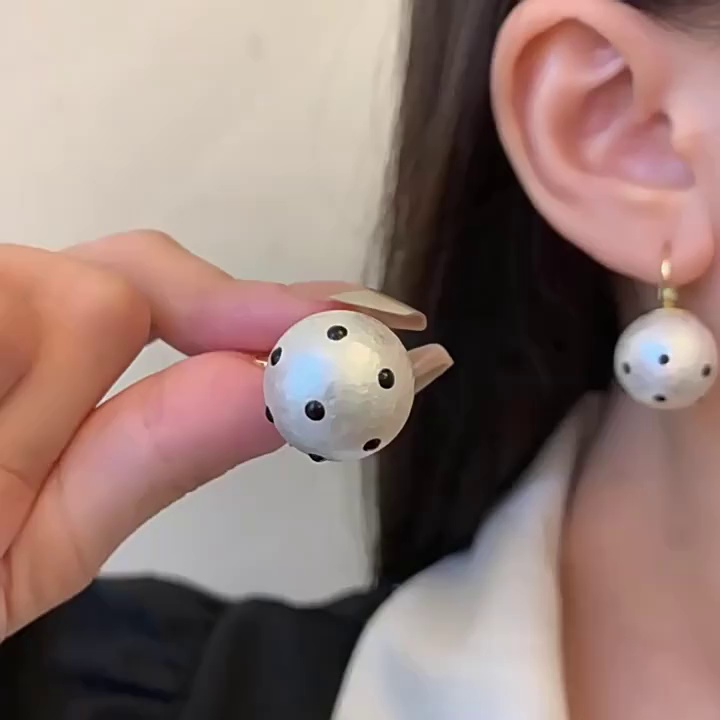 饰品法式时尚气质高级感耳扣网红同款耳钉黑白波点棉花珍珠耳环