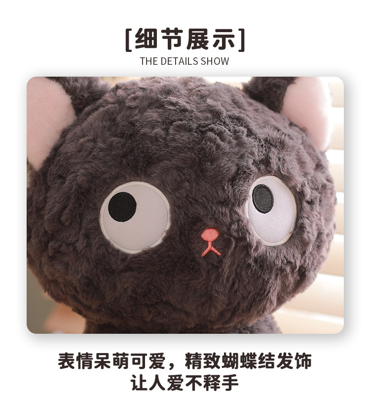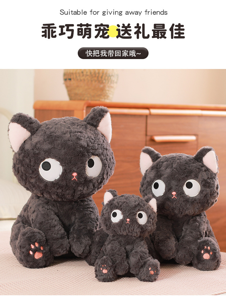 新款可爱呆萌黑猫公仔娃娃毛绒玩具小猫咪玩偶女生生日礼物批发