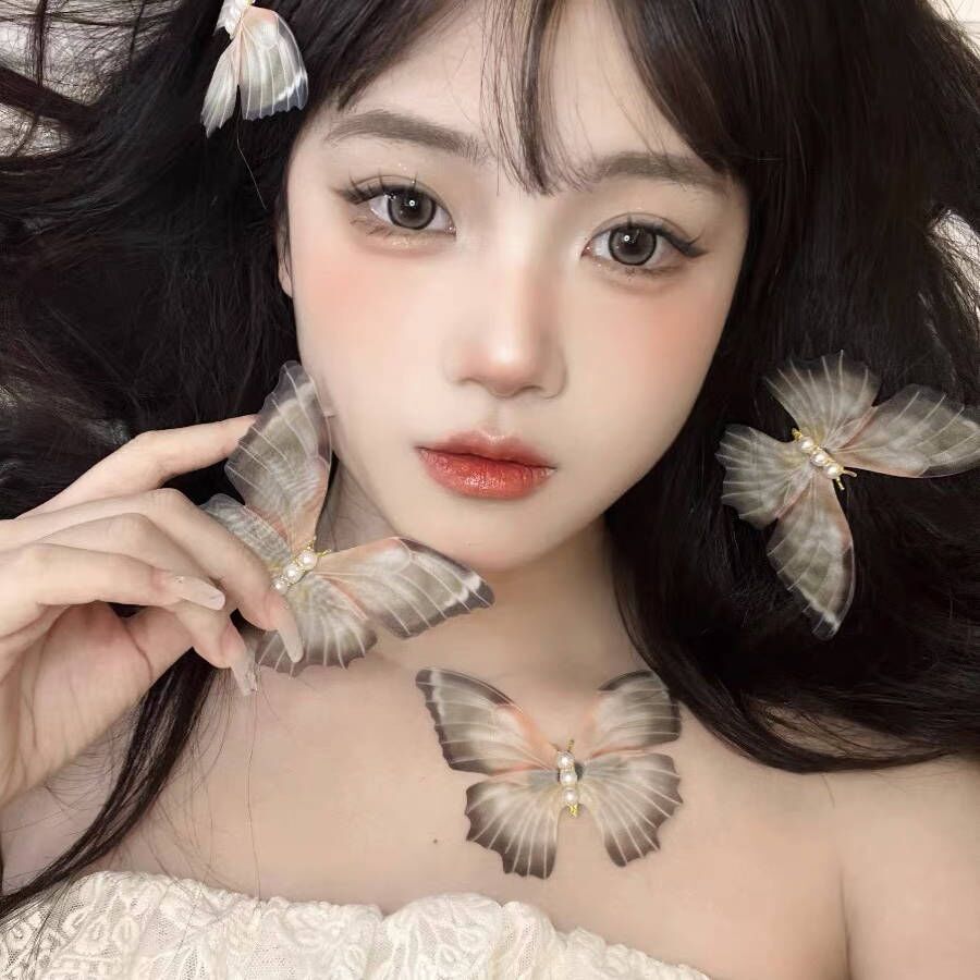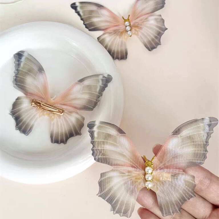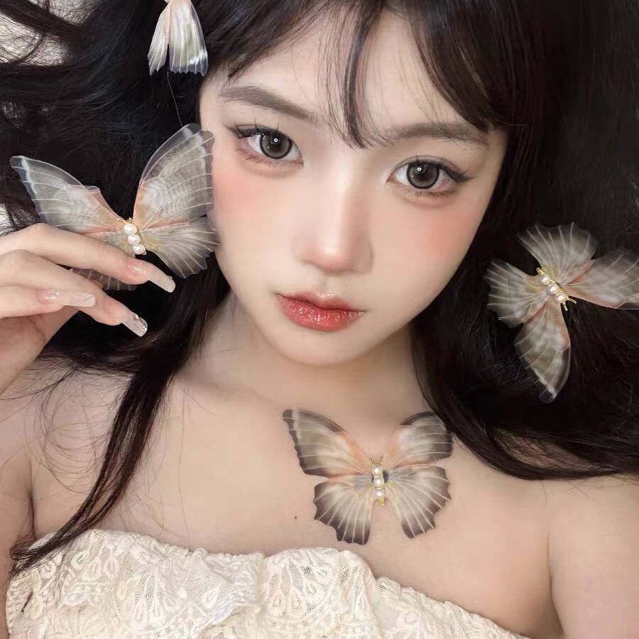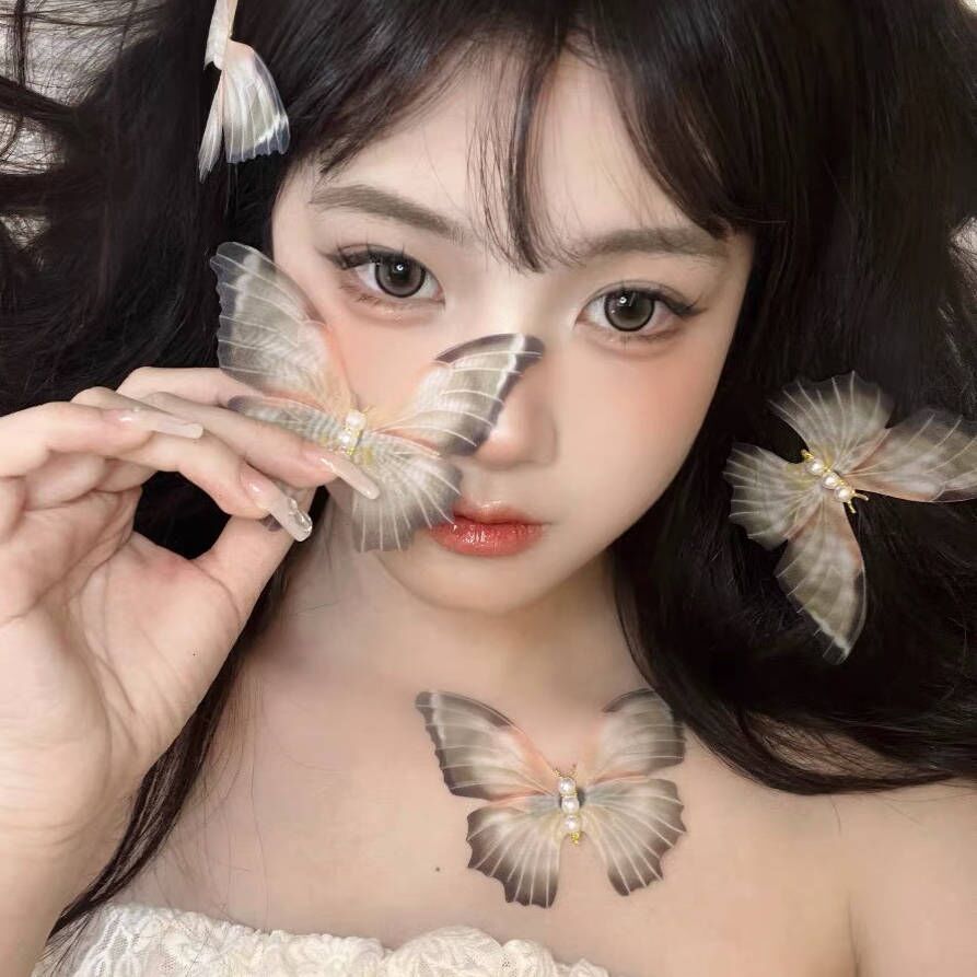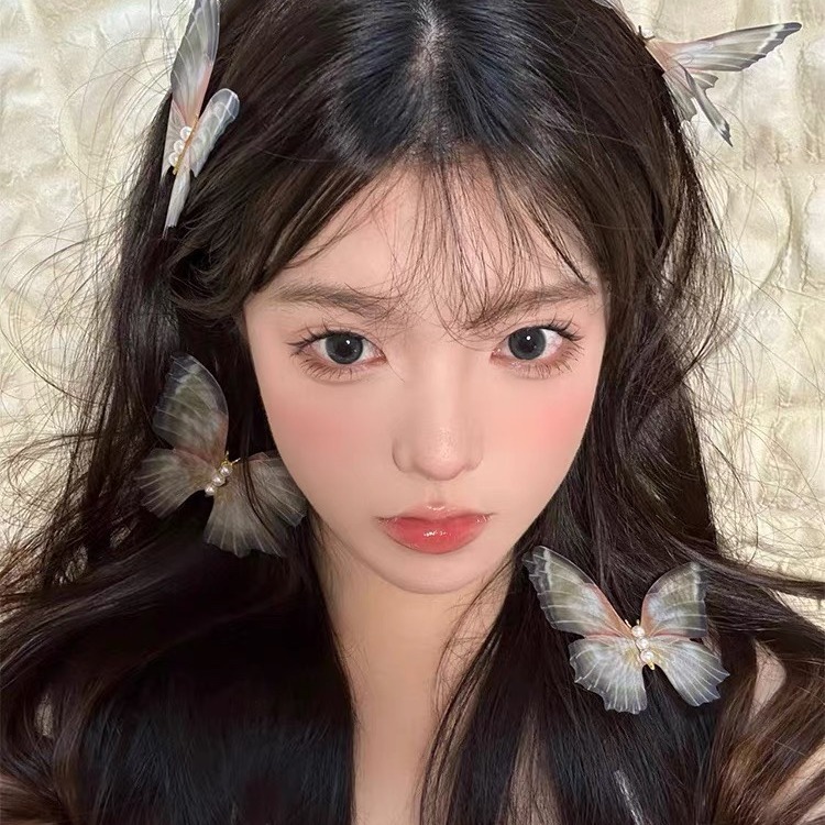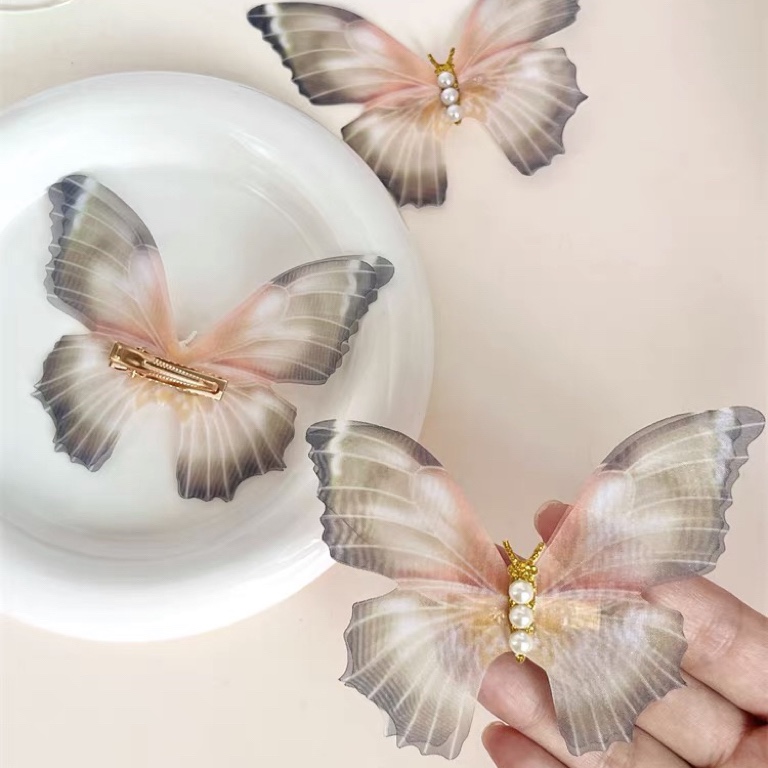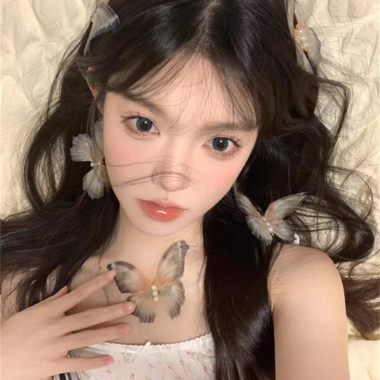 复古超仙珍珠网纱蝴蝶发夹女森系仙美侧边发卡子头饰拍照道具装饰