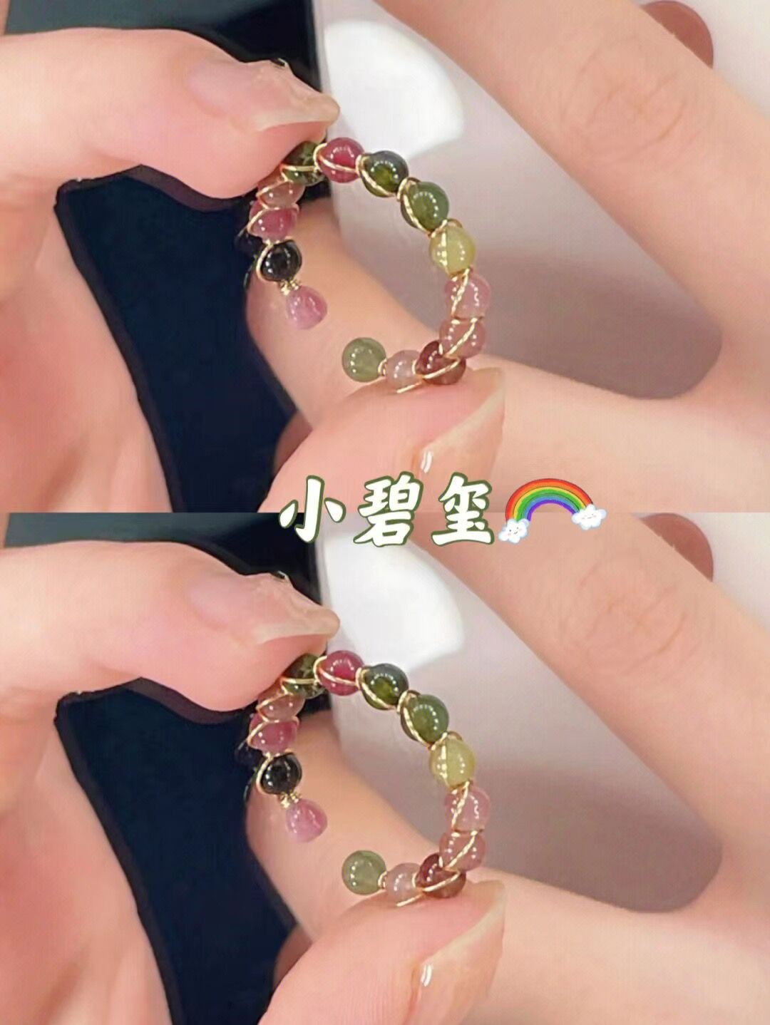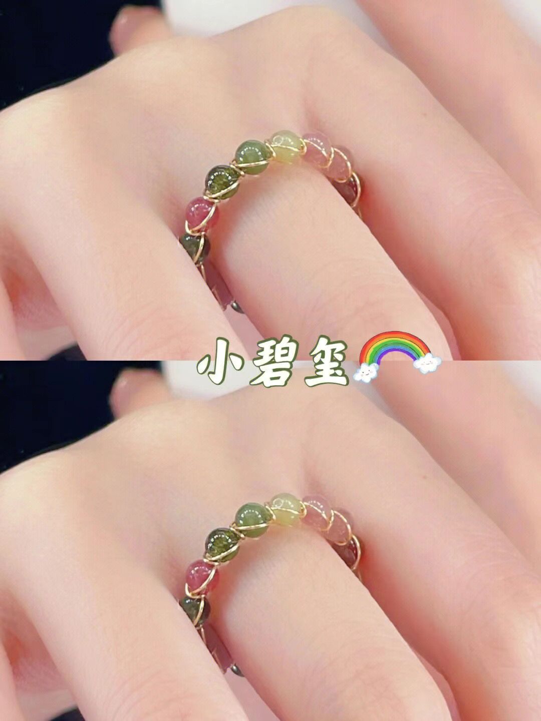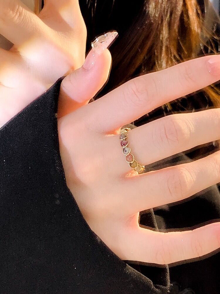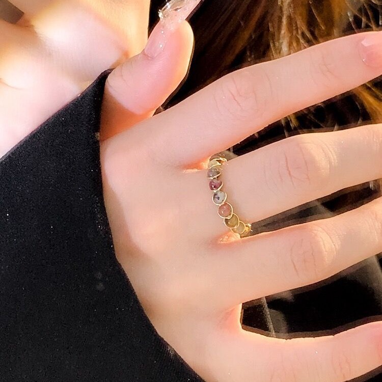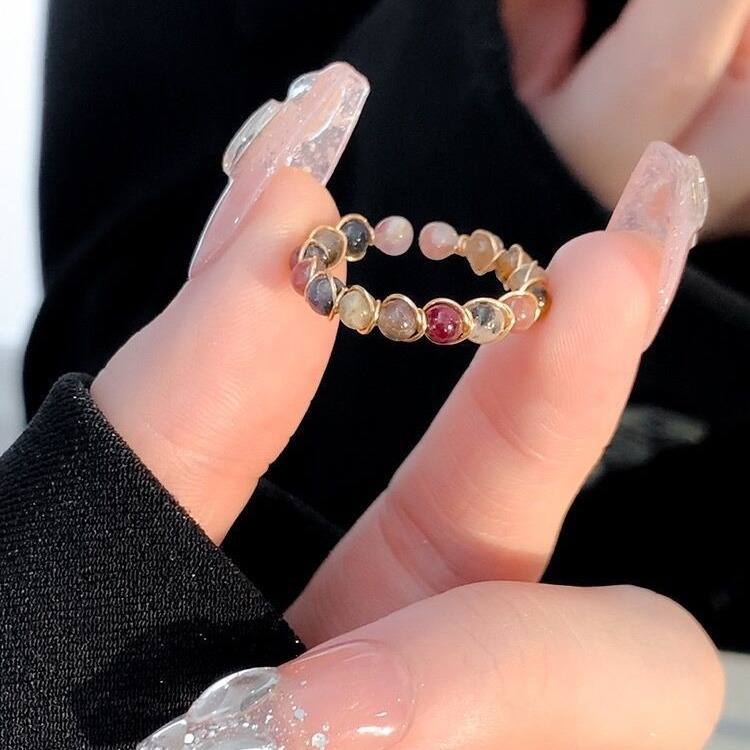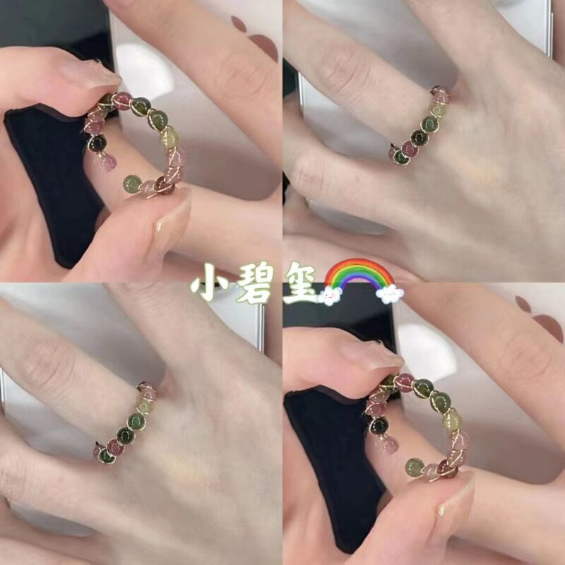 港风复古彩珠开口戒指女款轻奢小众设计食指戒尾戒高级感潮送女友