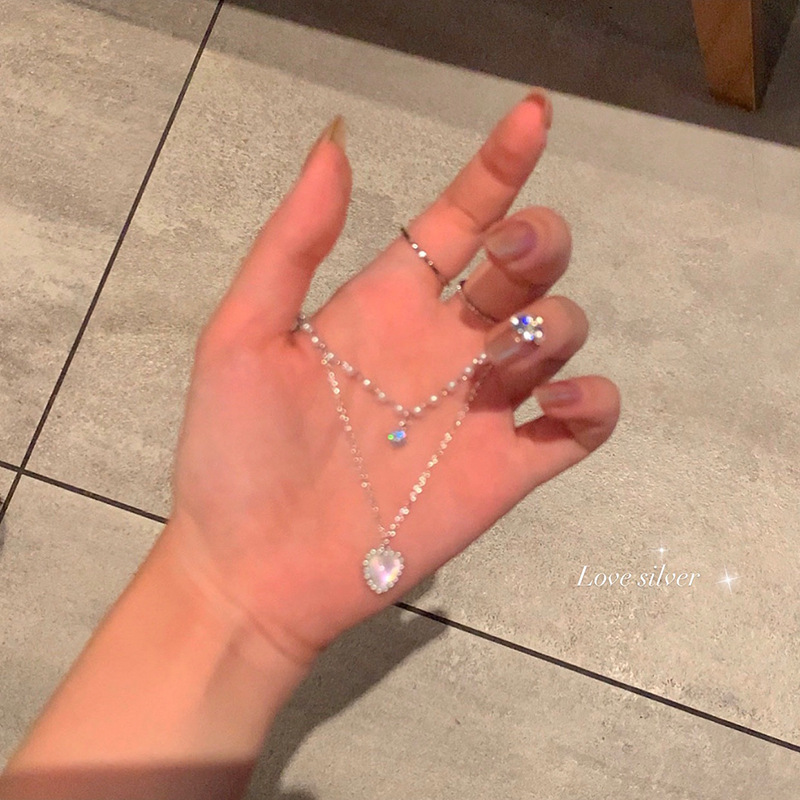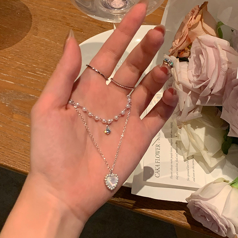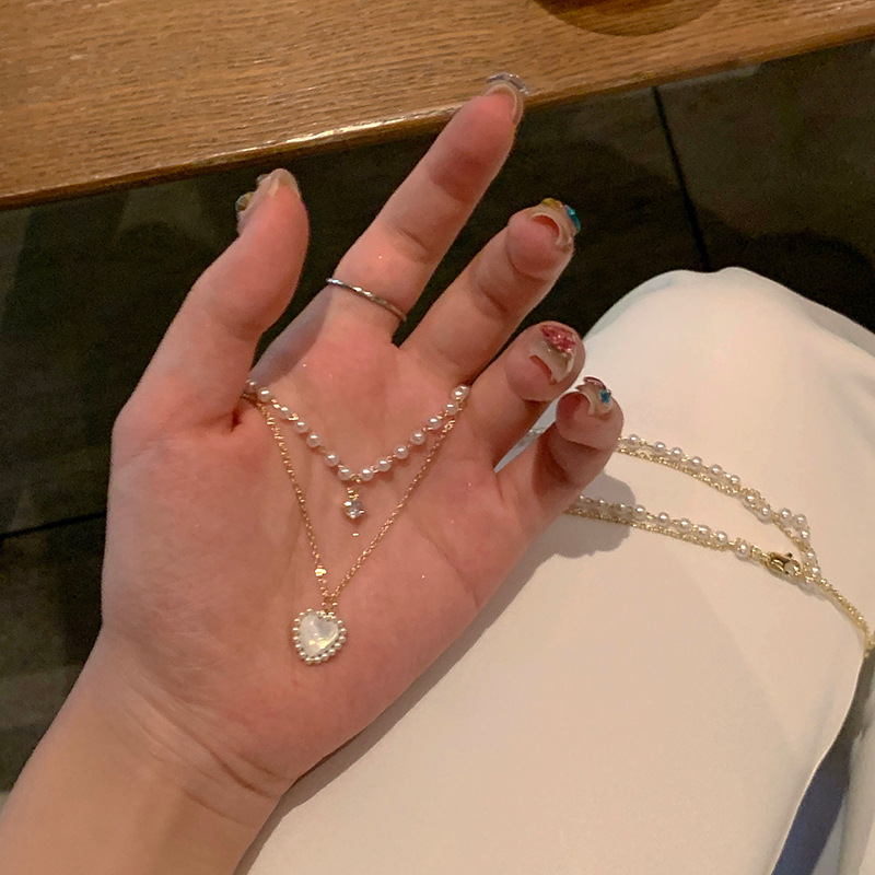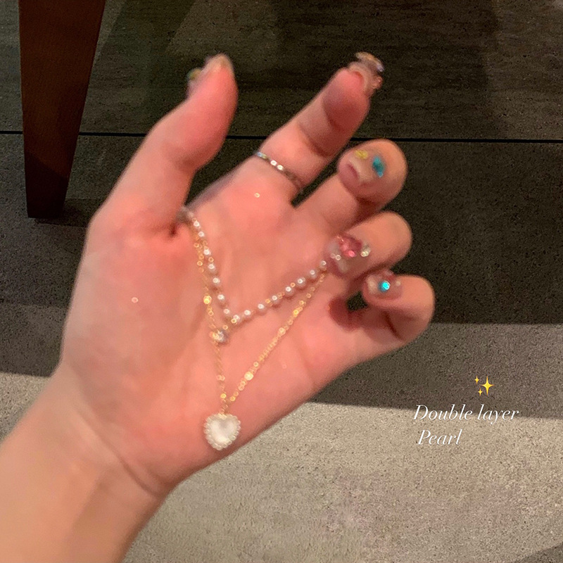春季珍珠双层爱心项链女轻奢高级设计感小众叠戴爆款锁骨链颈链