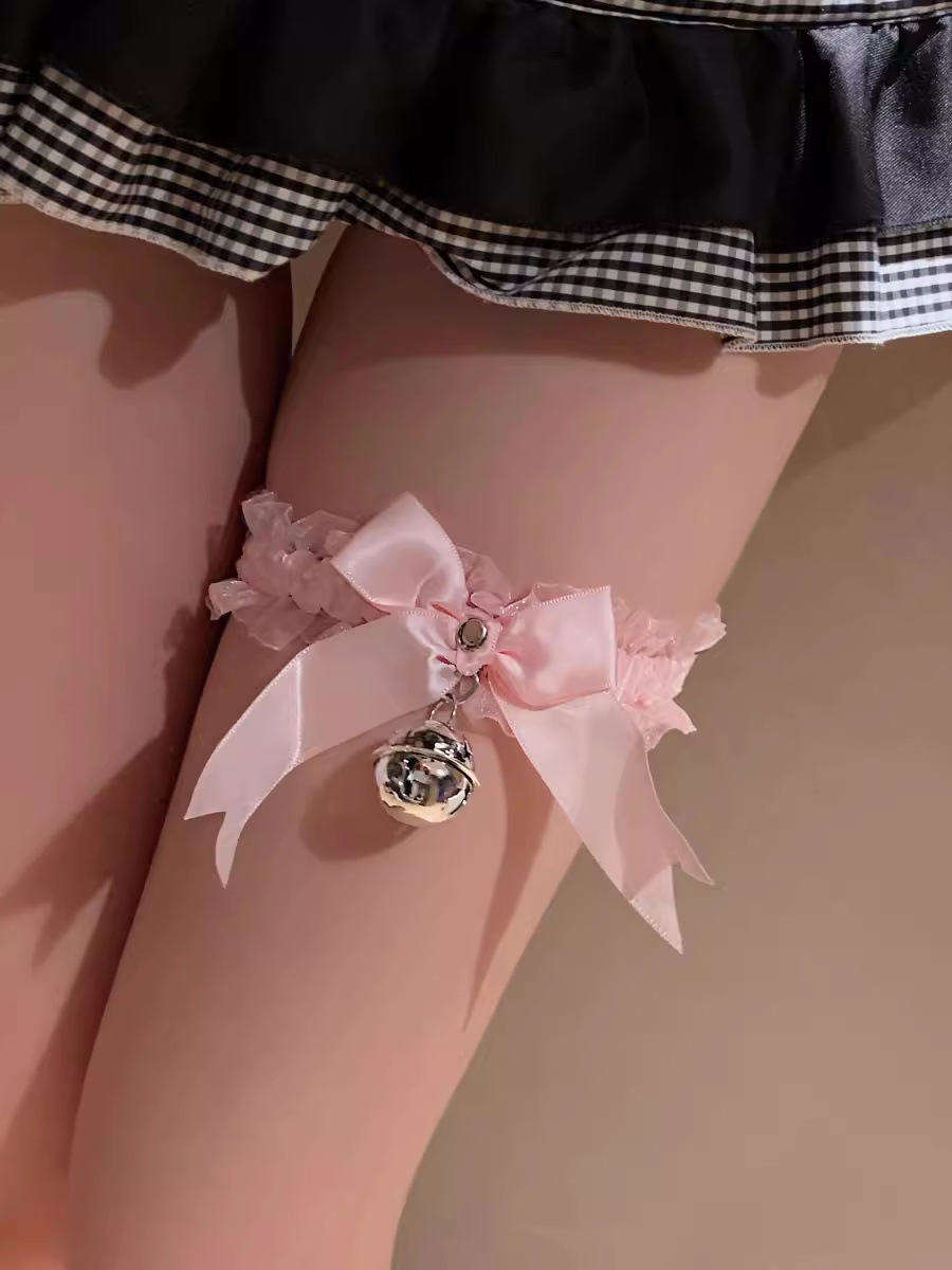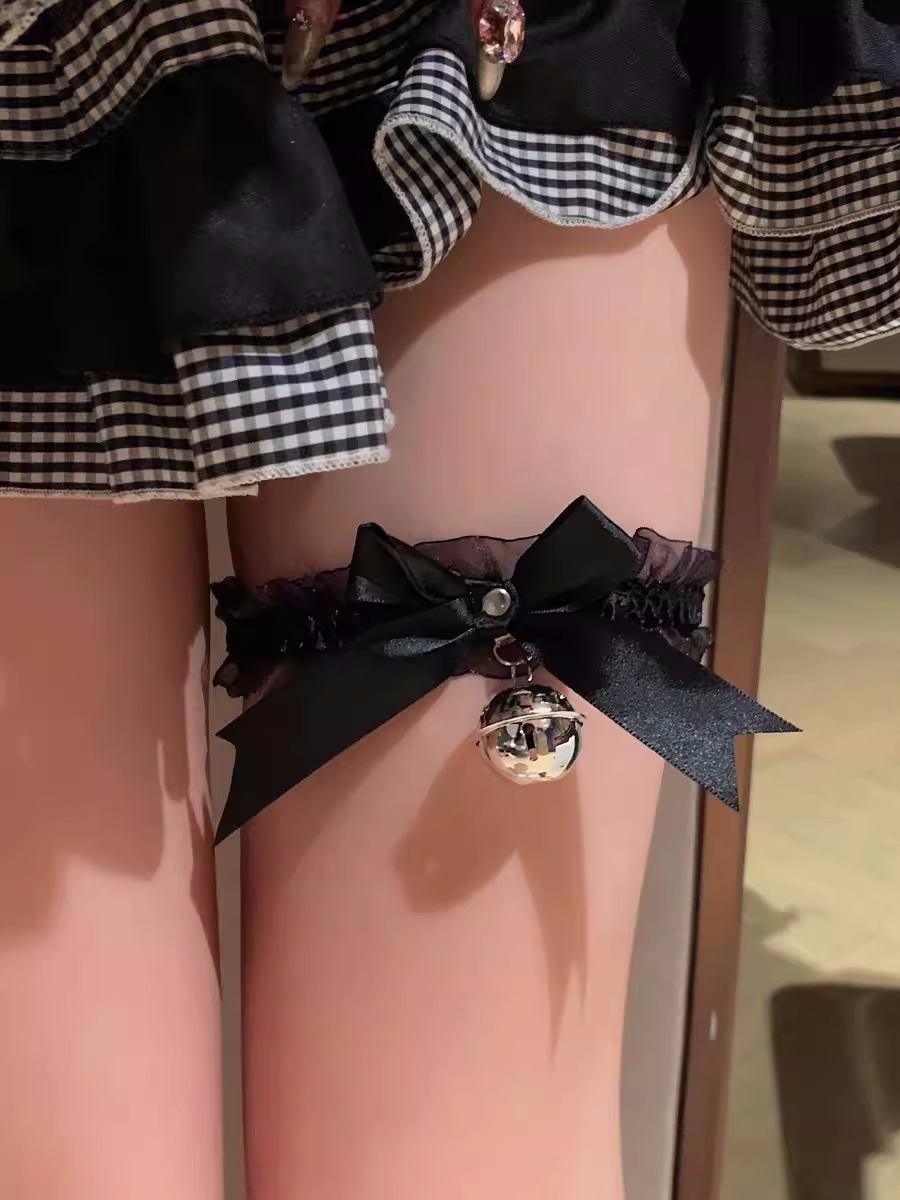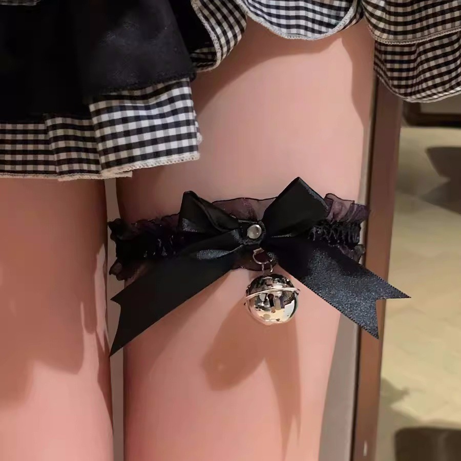 白色铃铛亚文化蝴蝶结性感蕾丝腿链配饰丝袜腿环袜y2k辣妹绑带圈