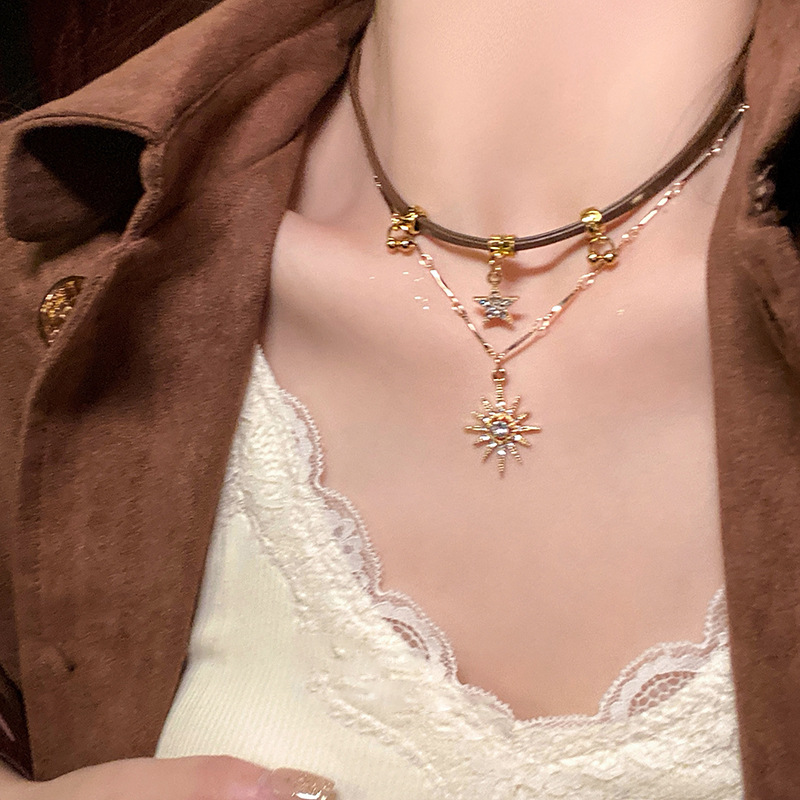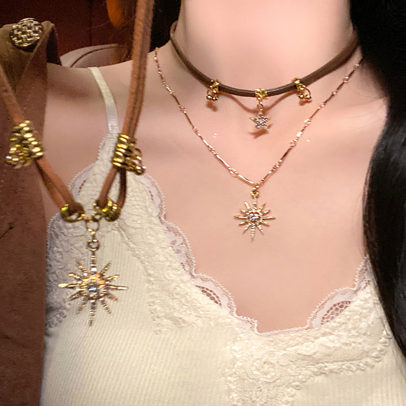 美拉德甜辣风双层星芒项链女美式复古百搭高级配饰小众设计感锁骨