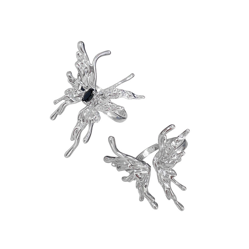液态小众设计师高级感蝴蝶开口戒指女ins潮冷淡风时尚个性食指戒