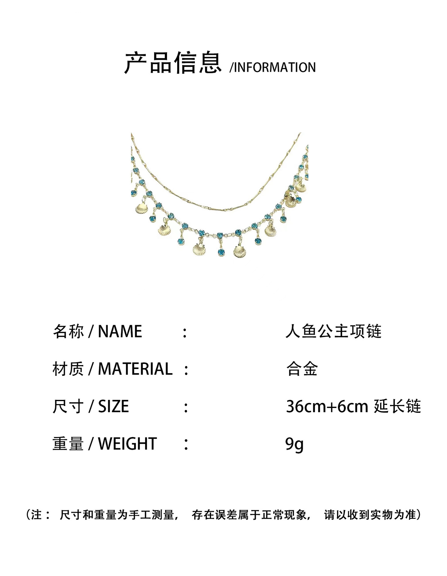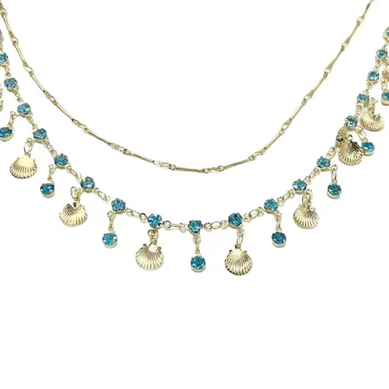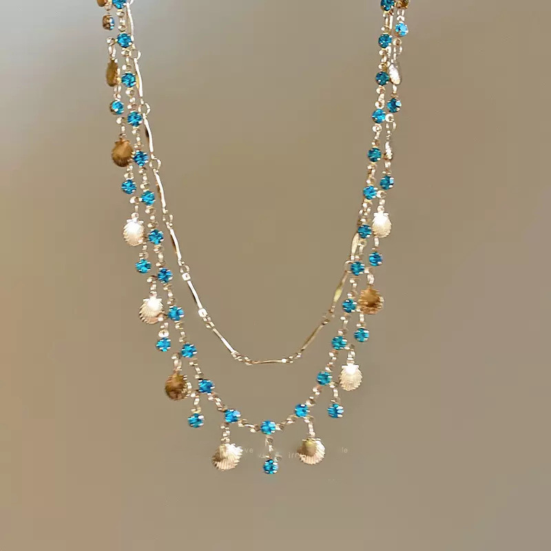 海的女儿蓝色之恋双层贝壳项链精致独特细链条千金choker锁骨链仙