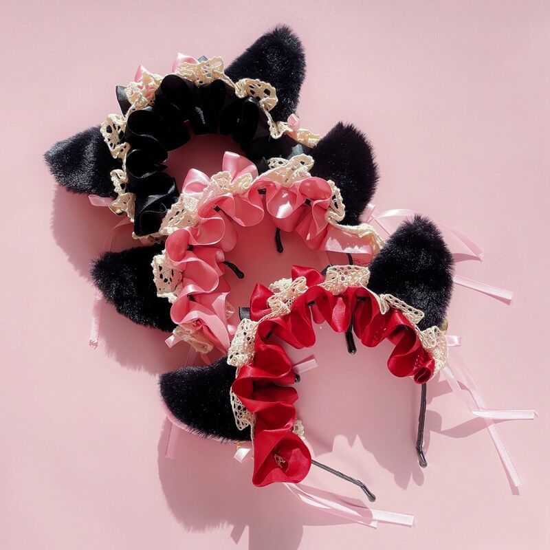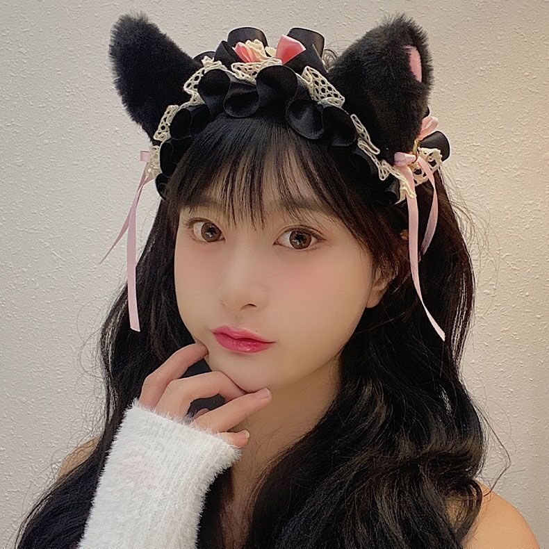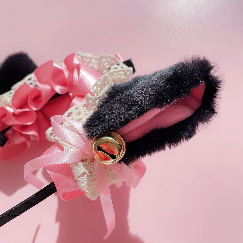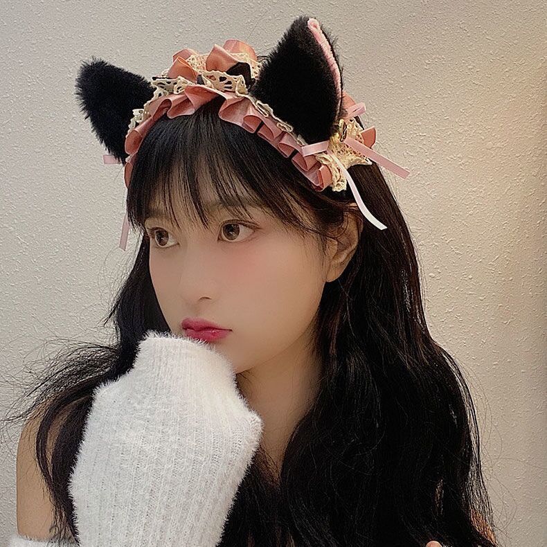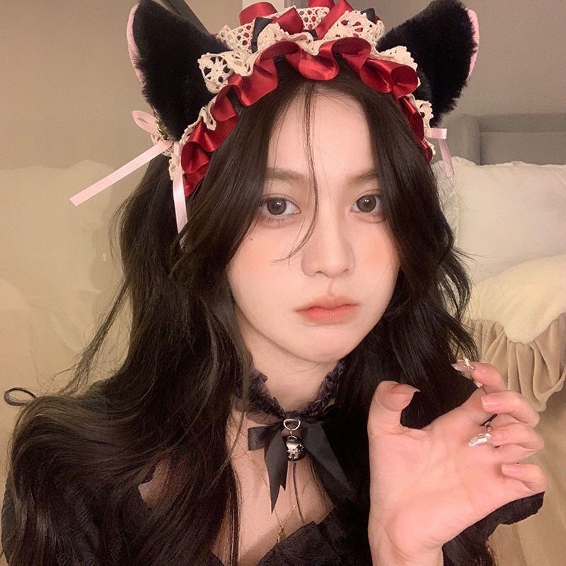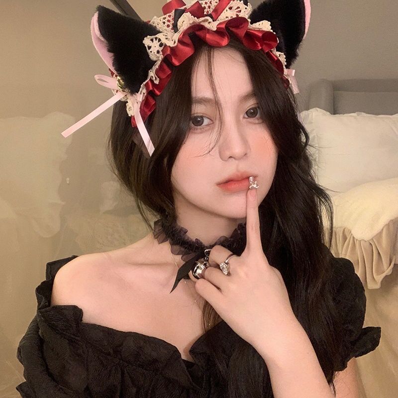 性感猫耳朵铃铛发箍项链可爱lolita头饰蕾丝蝴蝶结头箍网红发卡