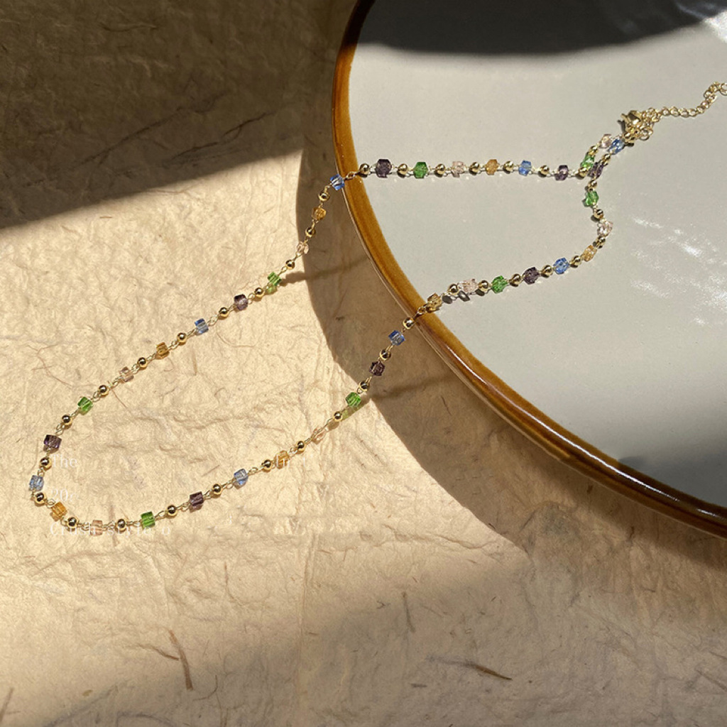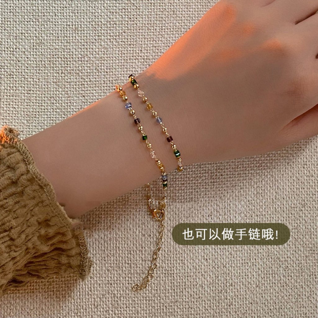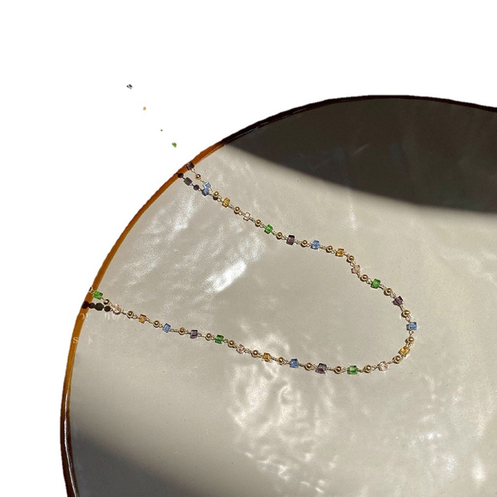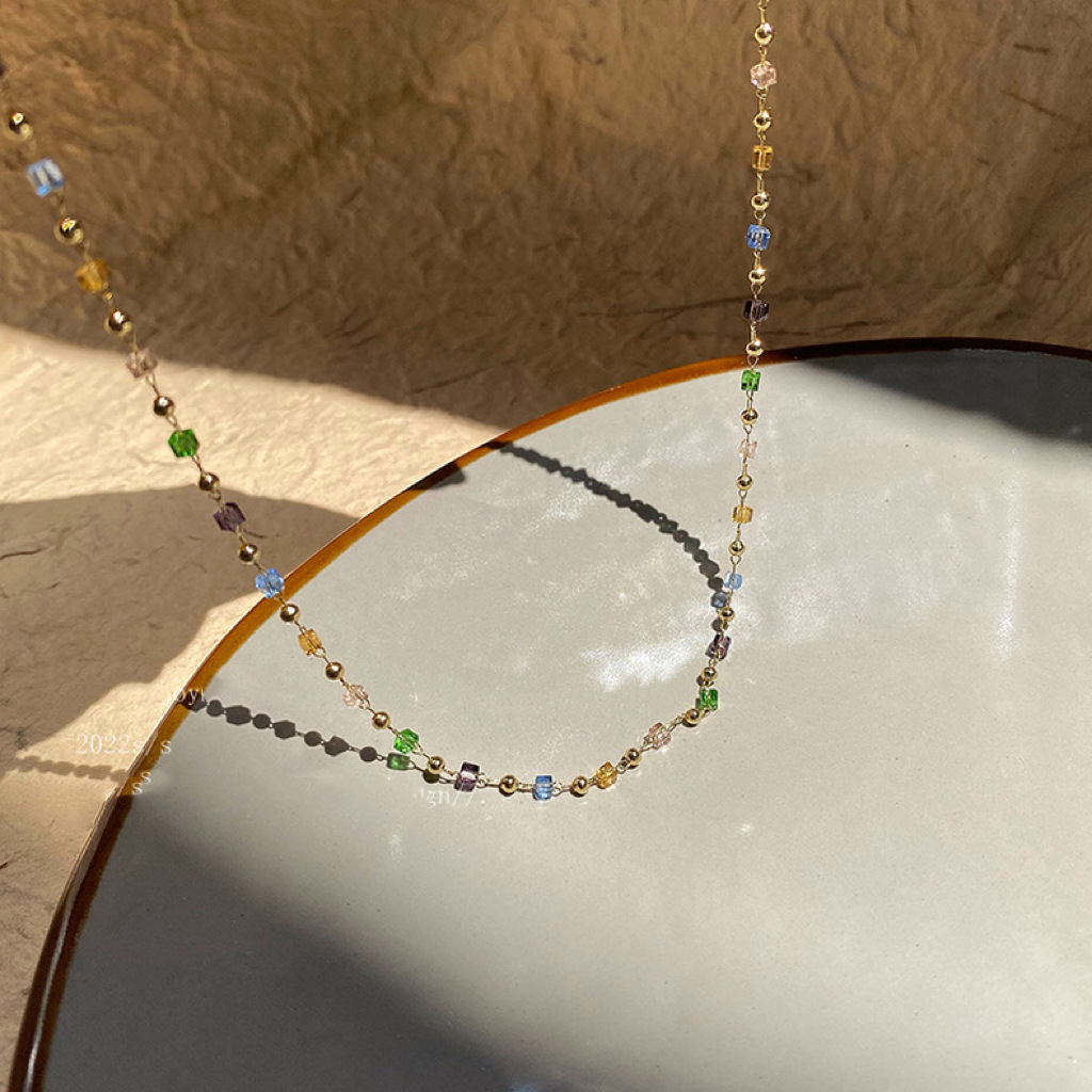 彩色水晶串珠项链女夏季2023年新款choker颈链轻奢小众设计锁骨链