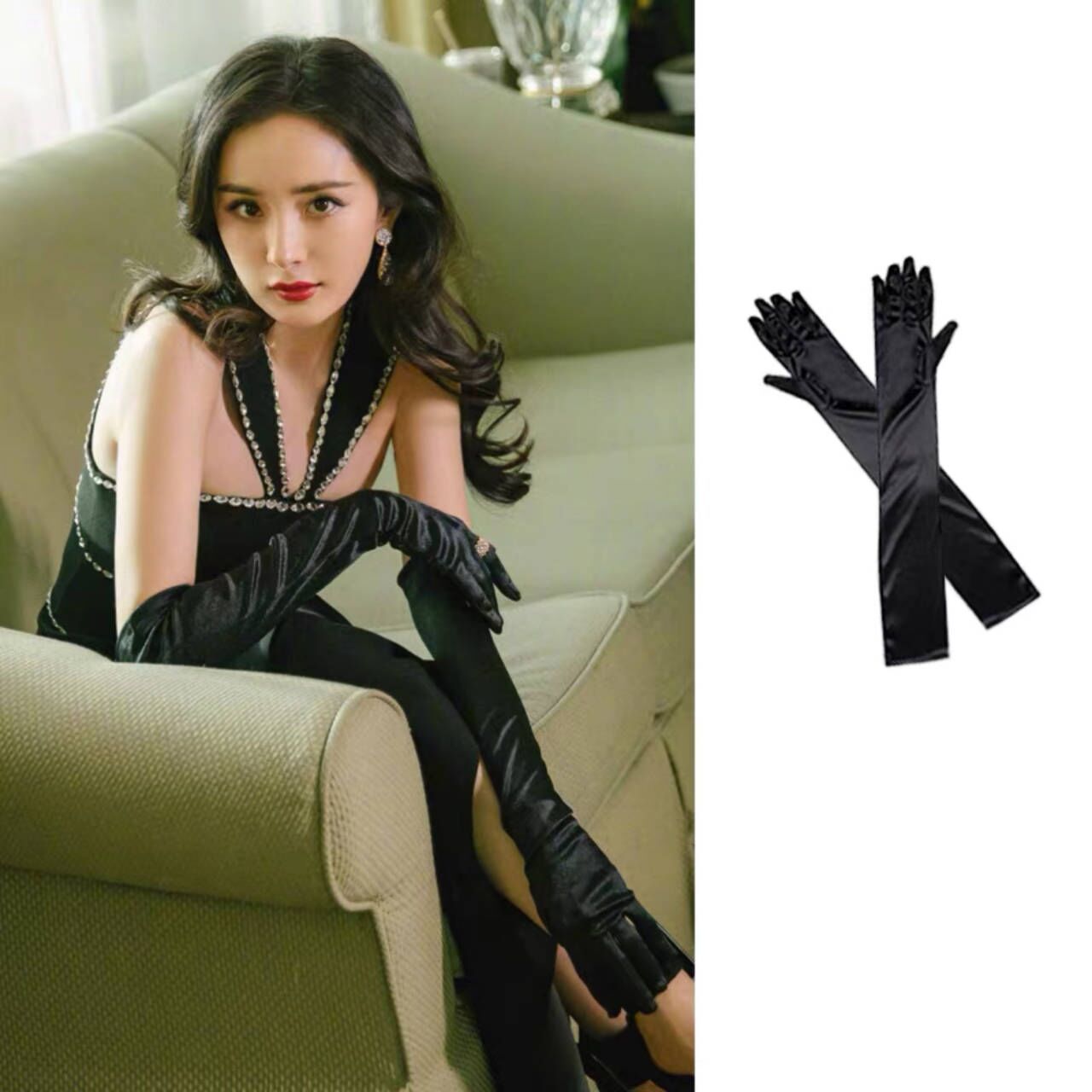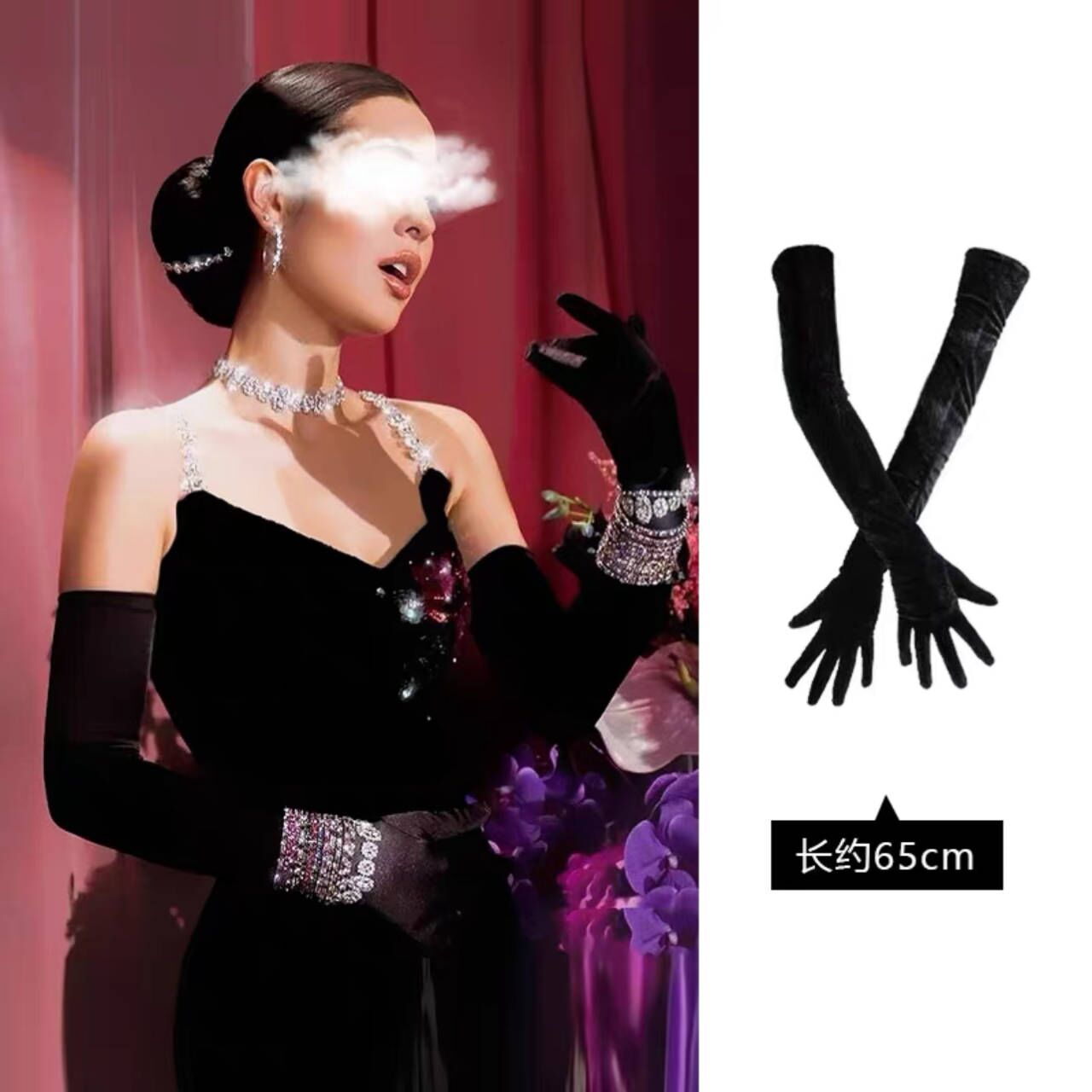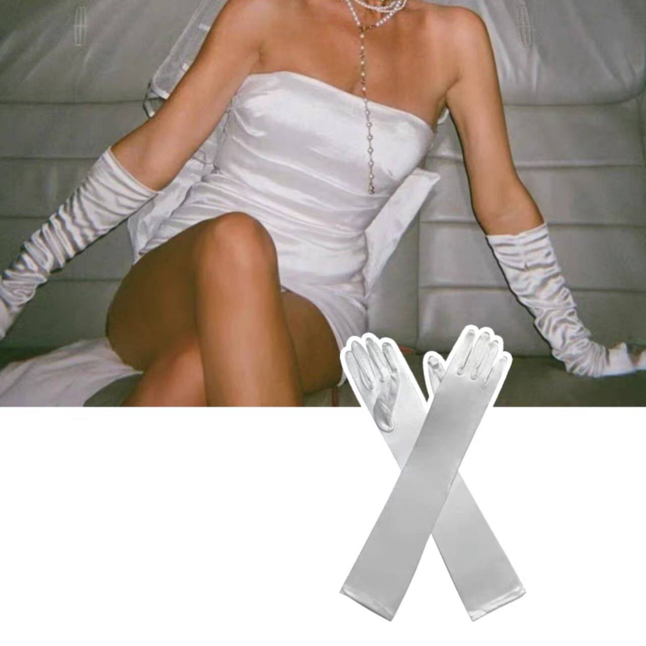 杨幂同款缎面手套长过肘复古赫本风晚礼服新娘婚纱拍照配饰手臂套