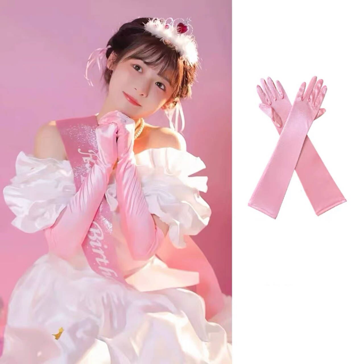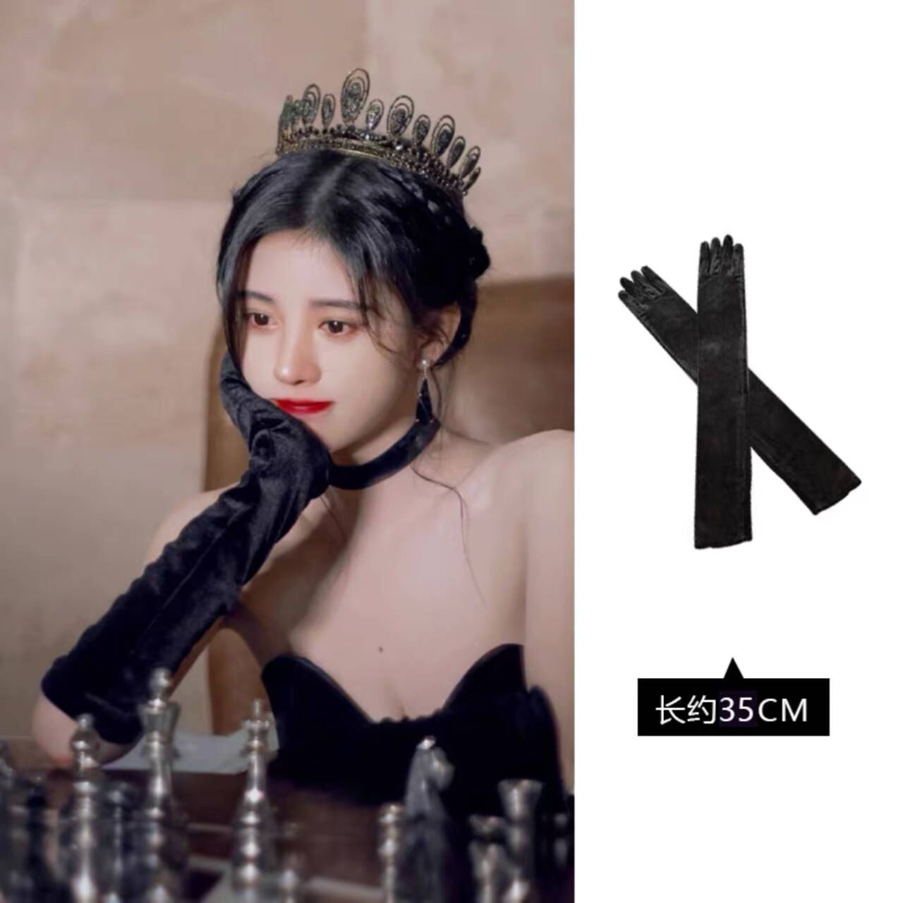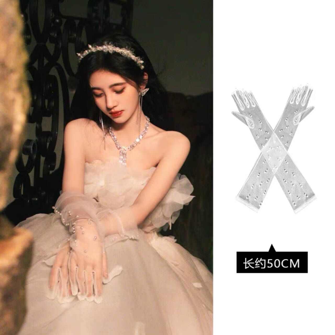 杨幂同款缎面手套长过肘复古赫本风晚礼服新娘婚纱拍照配饰手臂套