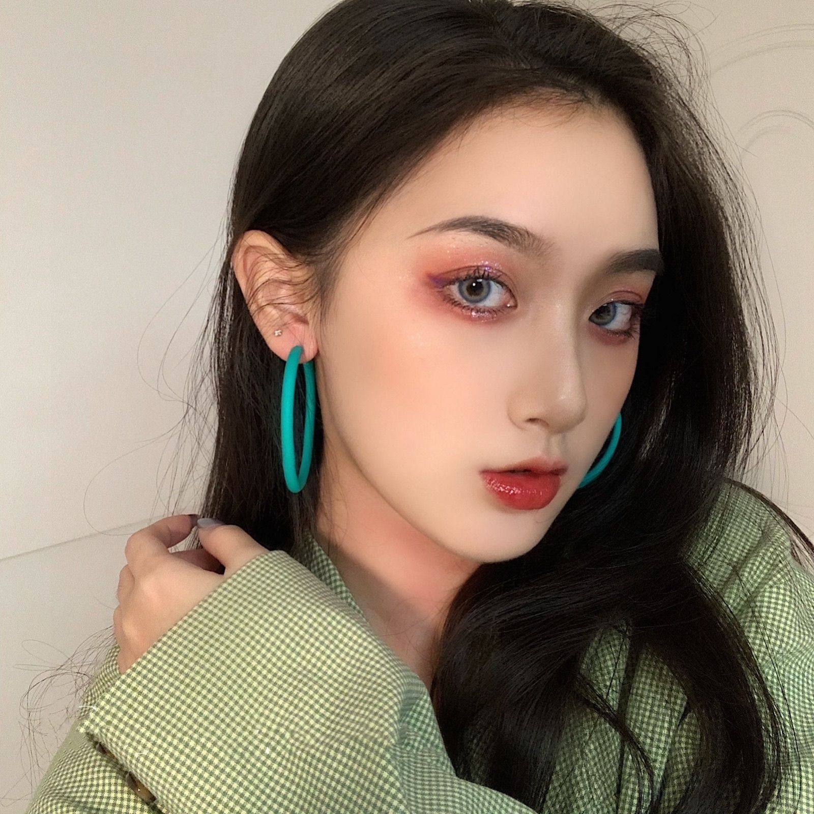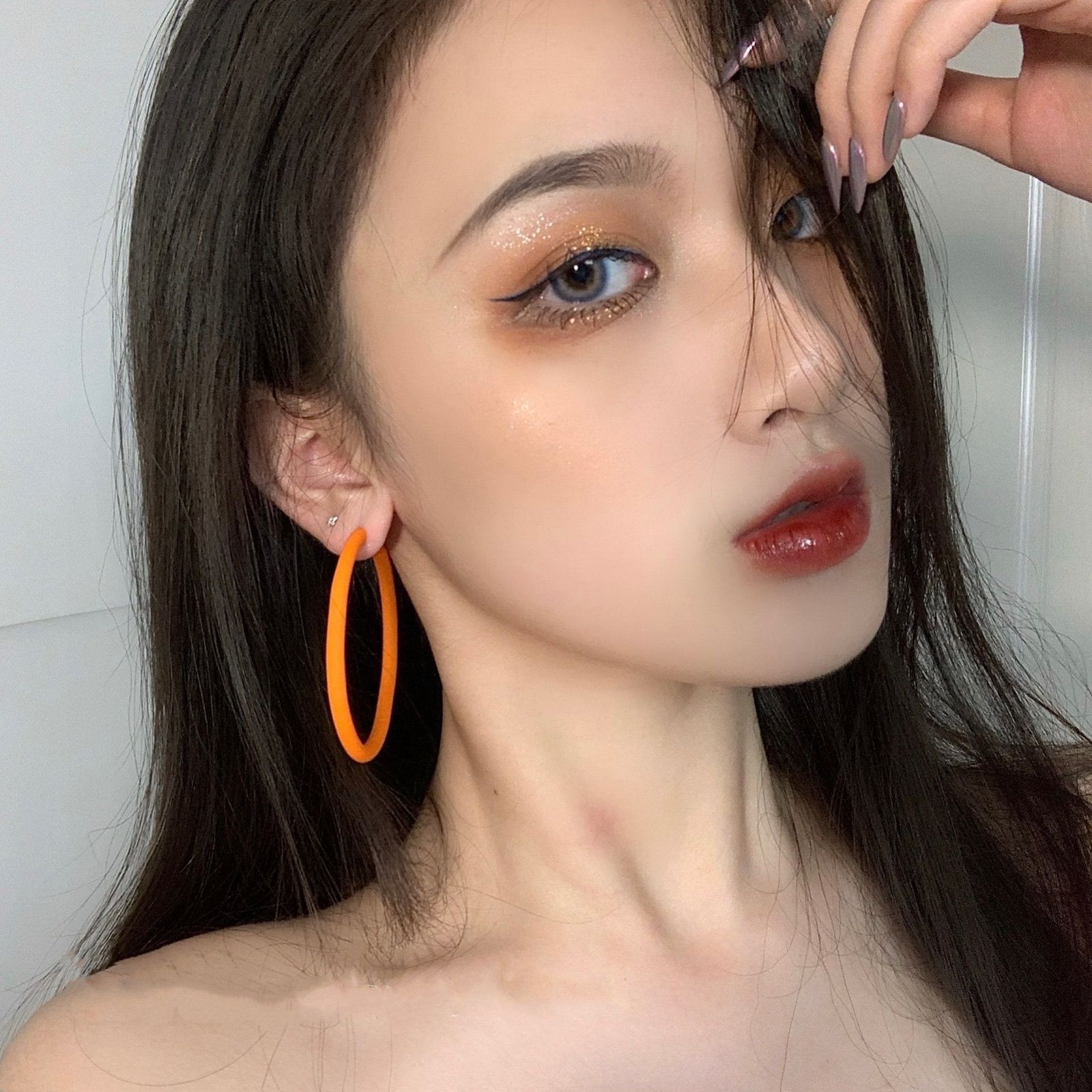 彩色大圆圈耳环2023年新款潮糖果色耳圈韩国气质耳饰品耳钉女欧美