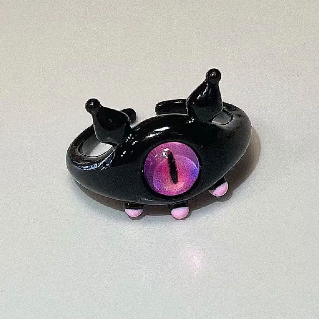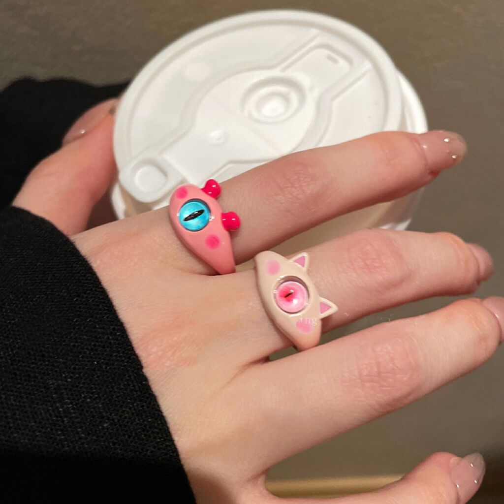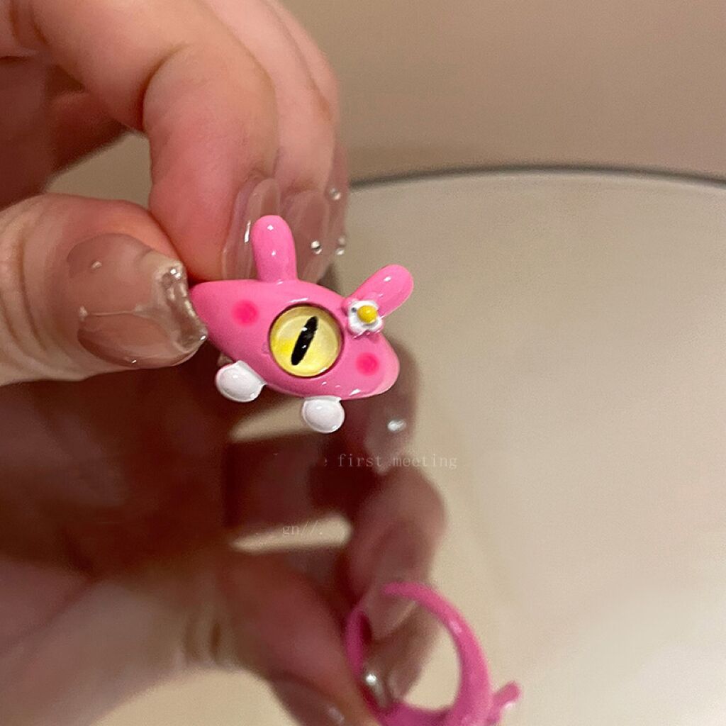 粉色系~童趣可爱喵咪怪兽戒指女2023年新款潮食指戒设计小众指环