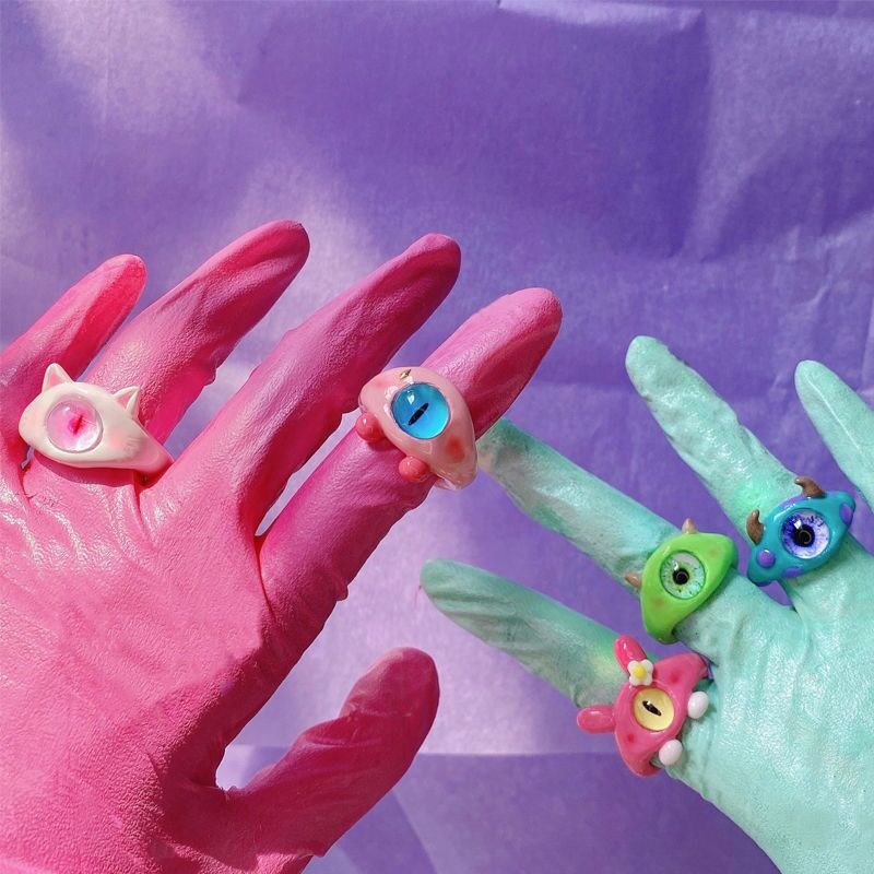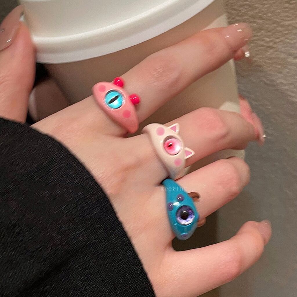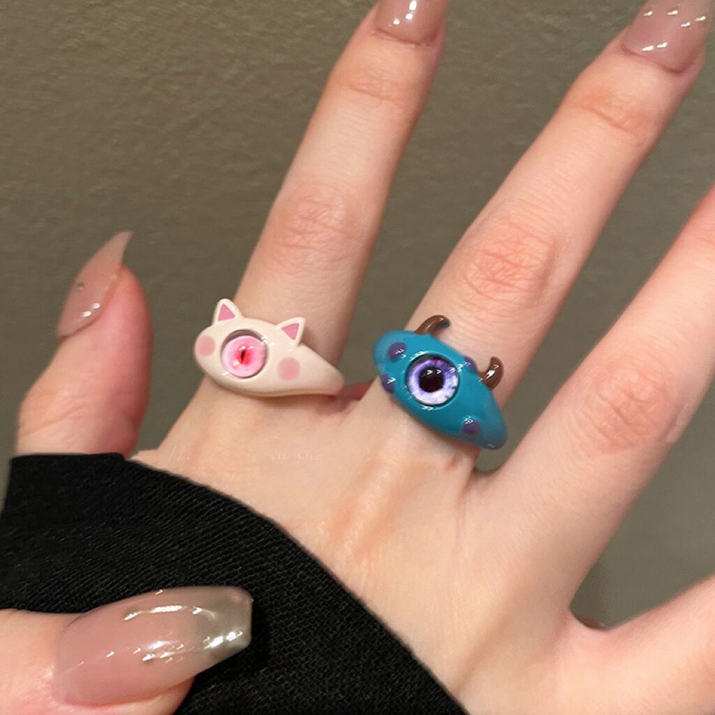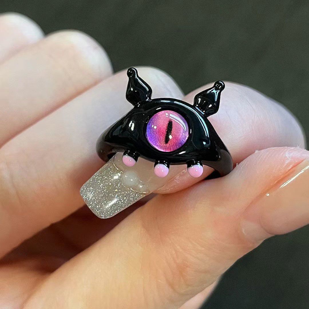 粉色系~童趣可爱喵咪怪兽戒指女2023年新款潮食指戒设计小众指环