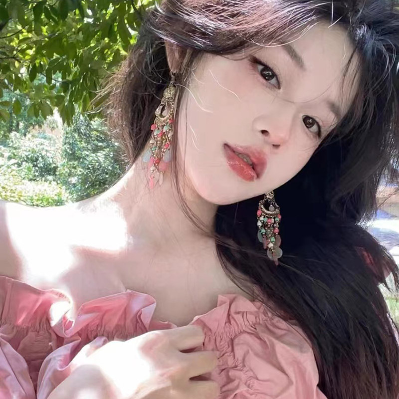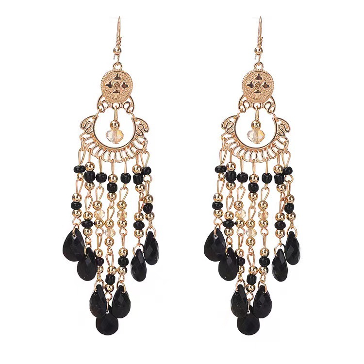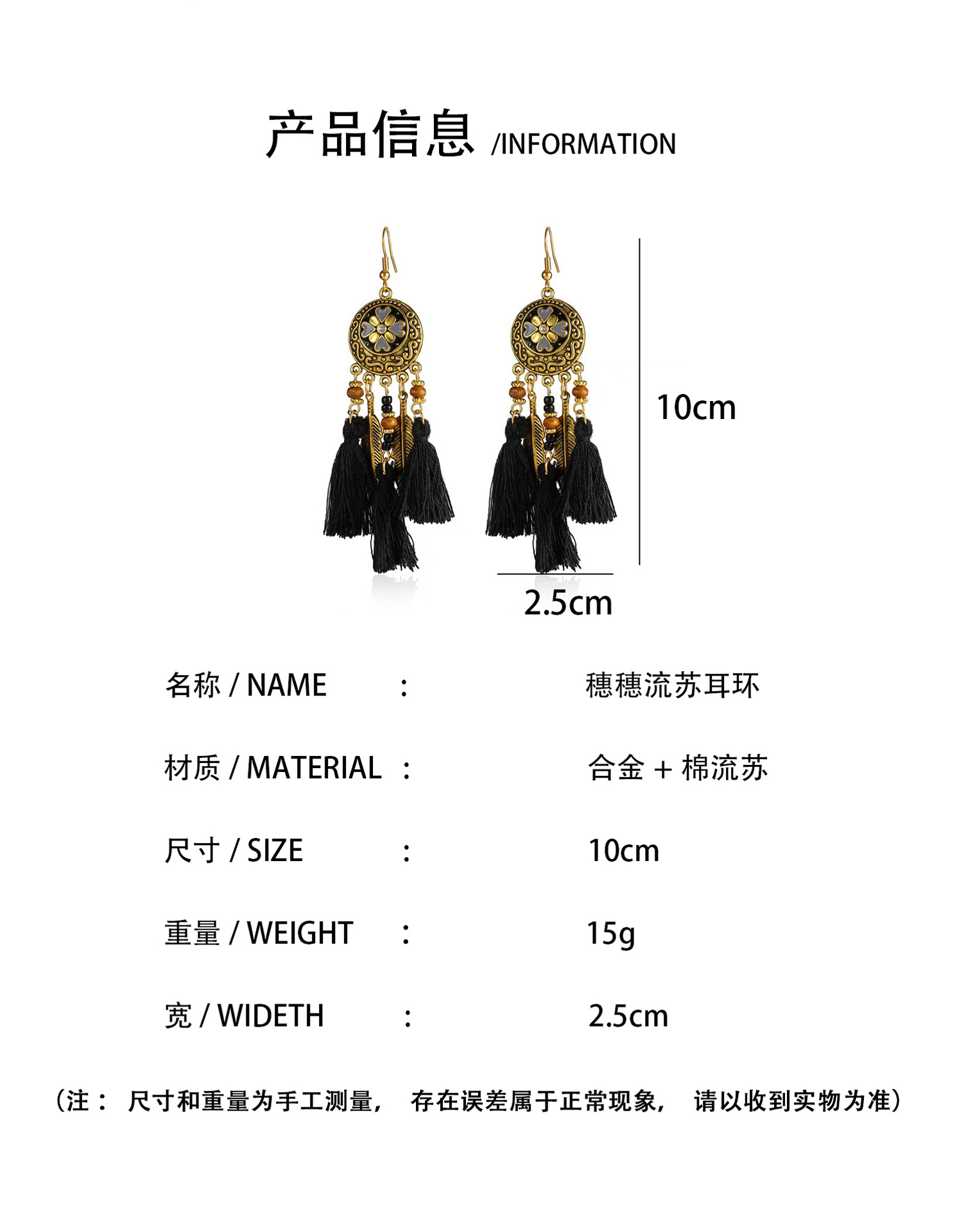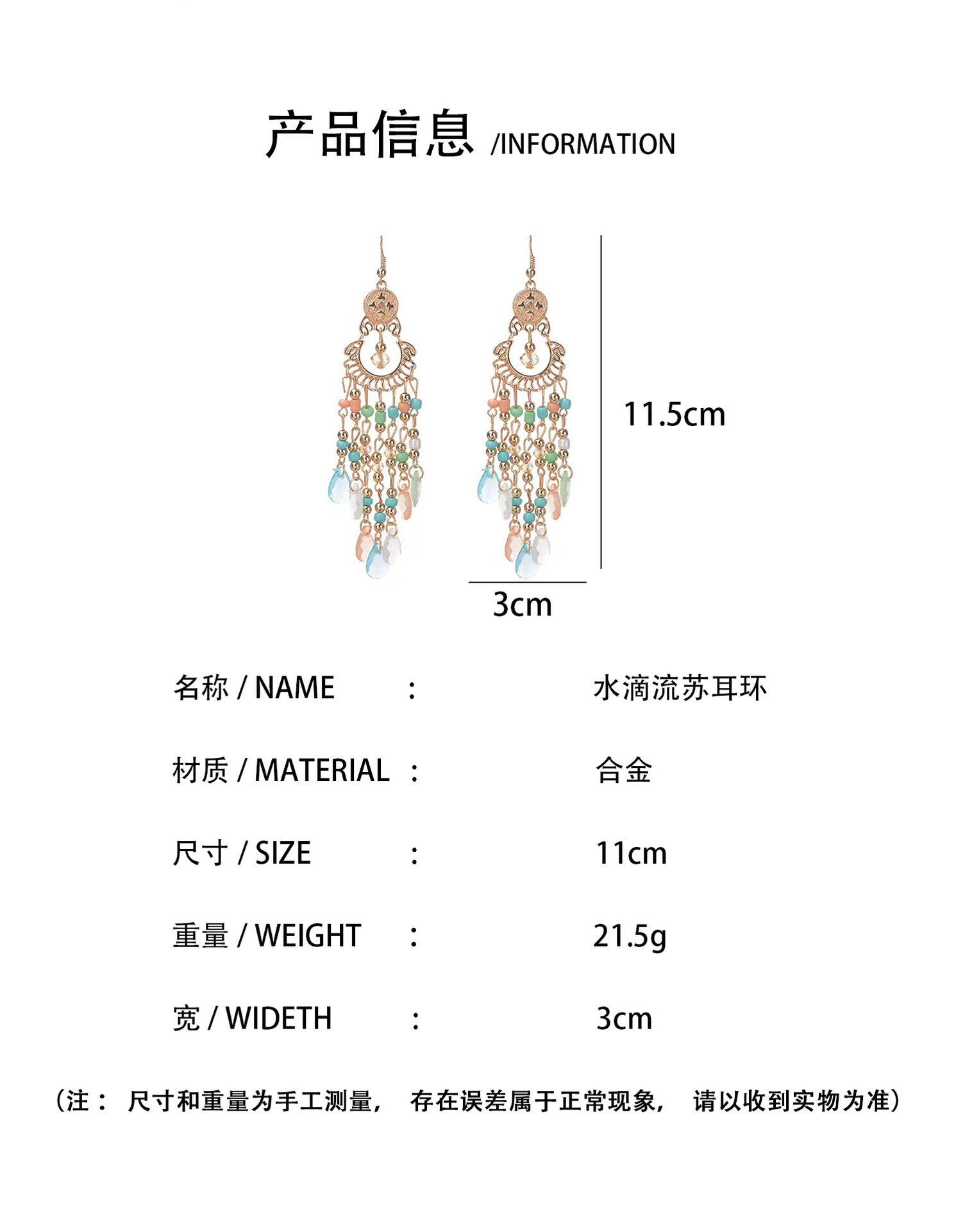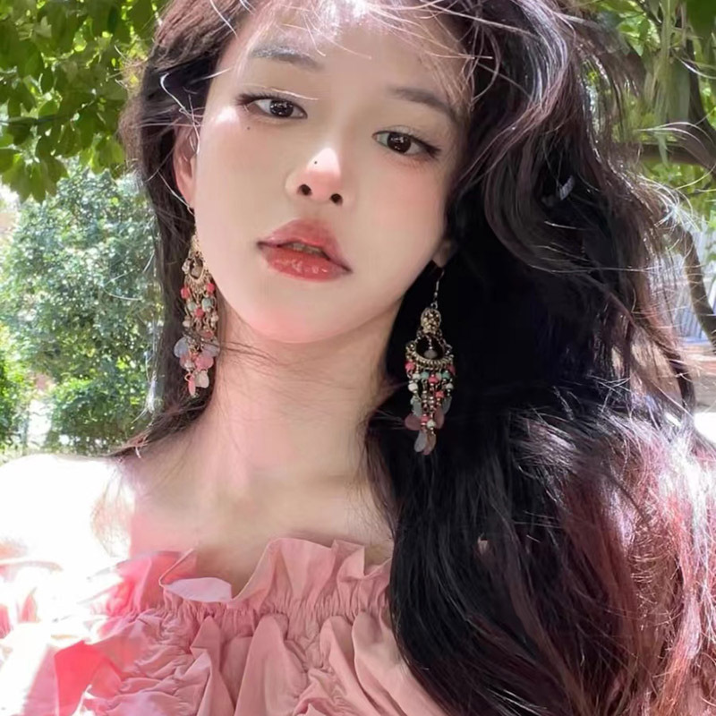 异域风情流苏串珠耳环女波西米亚复古夸张长款耳饰民族风个性耳坠