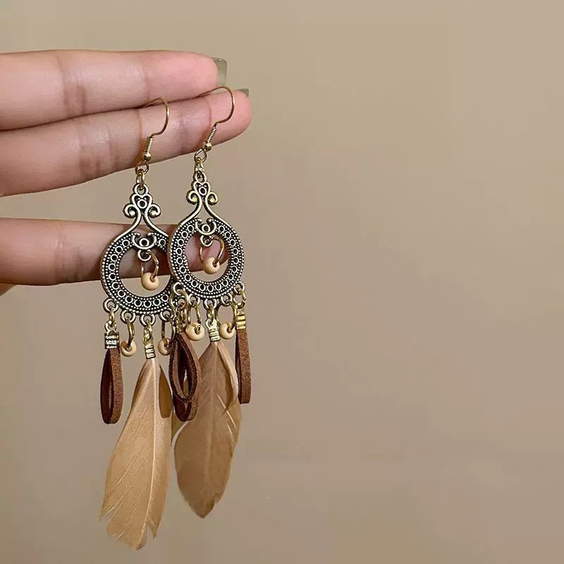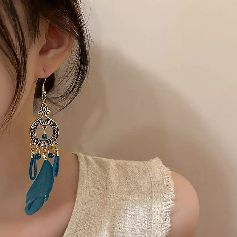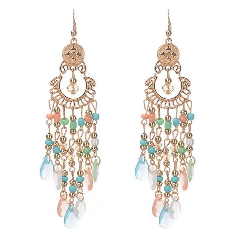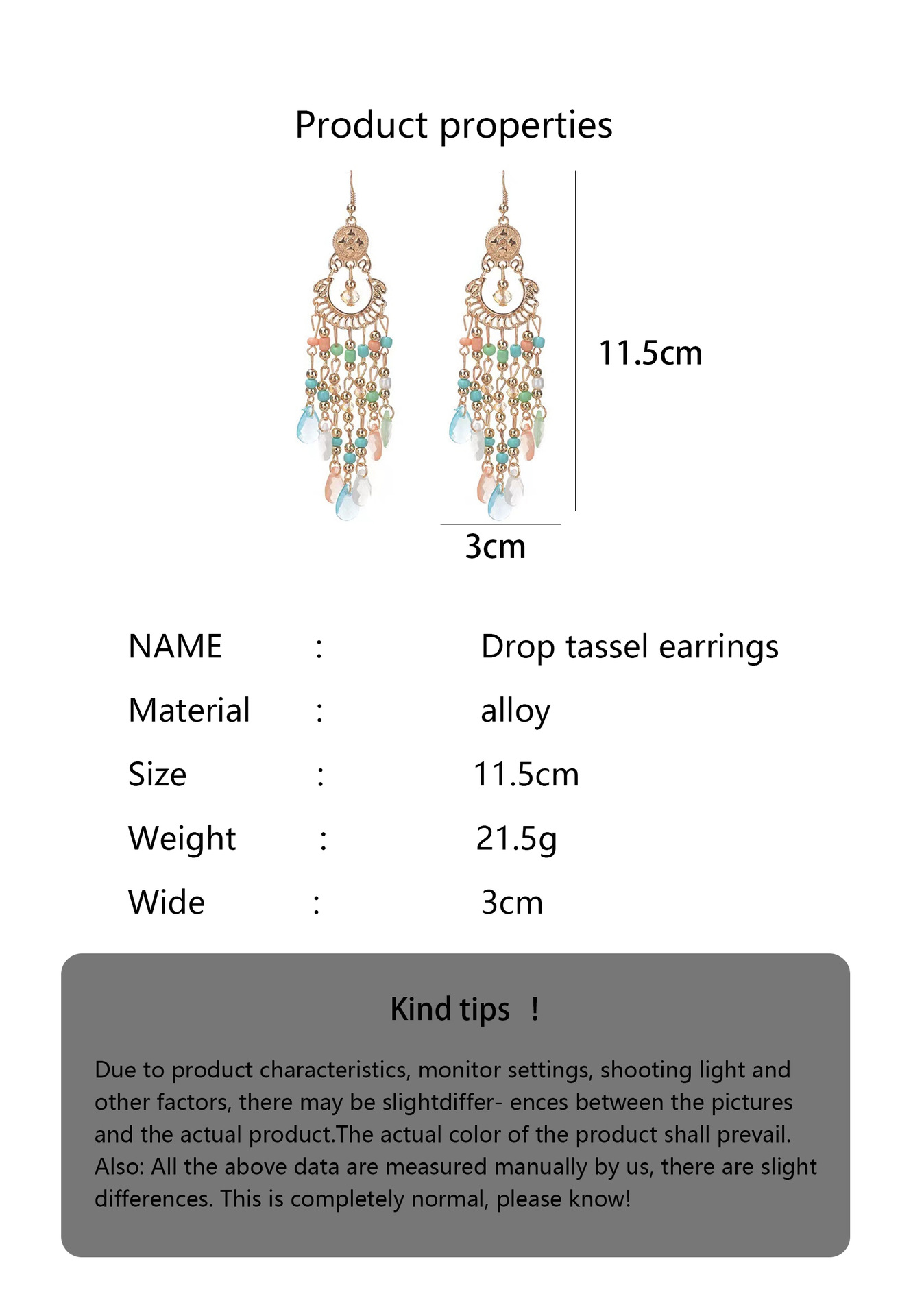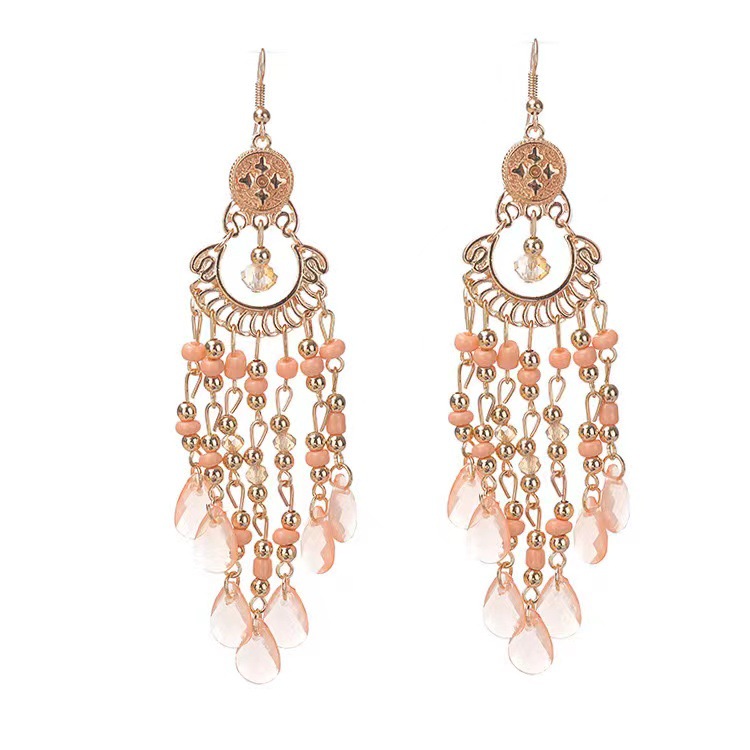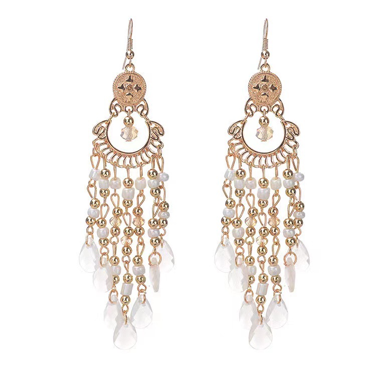 异域风情流苏串珠耳环女波西米亚复古夸张长款耳饰民族风个性耳坠