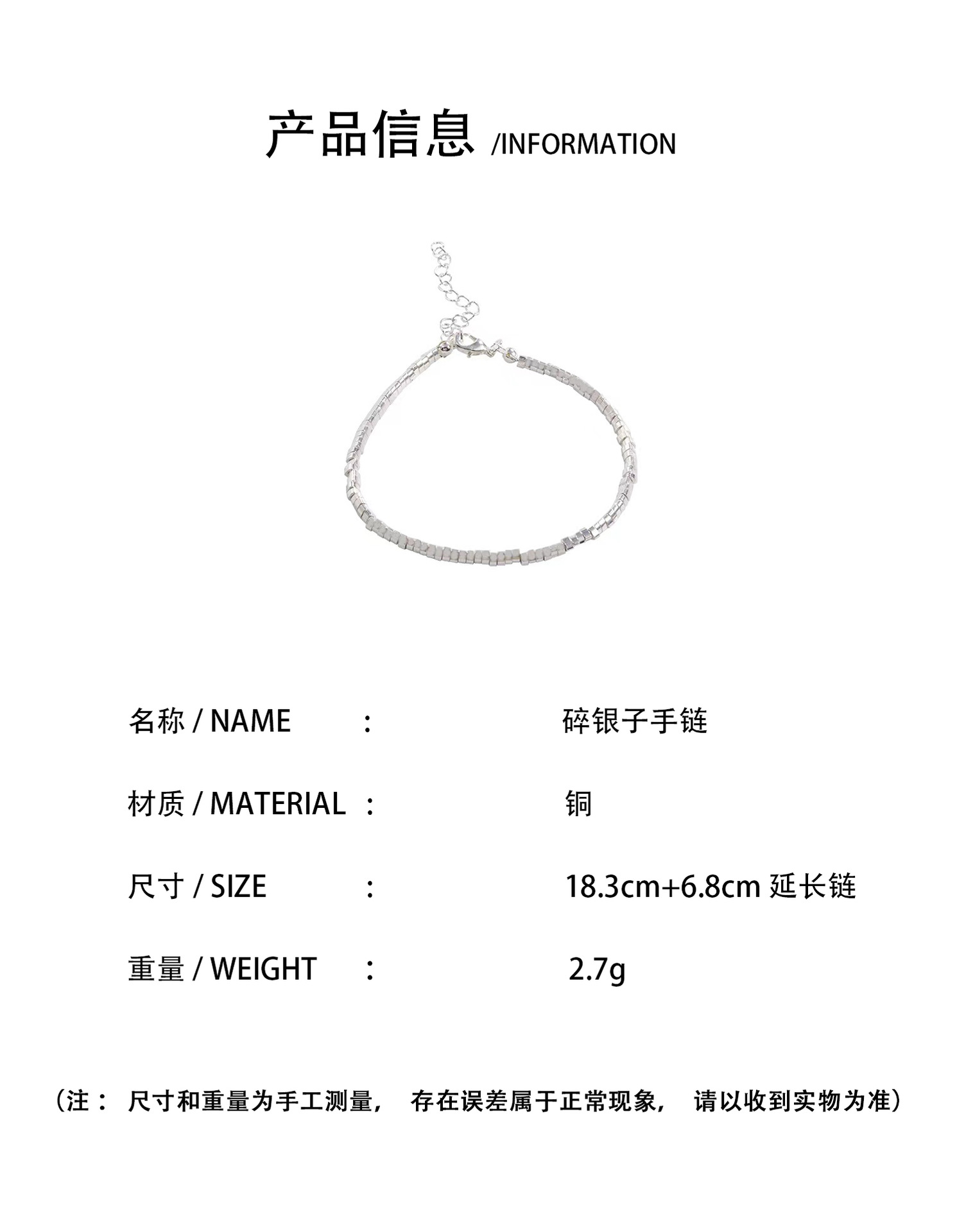气质清冷碎银子手链女轻奢小众精致情侣手串高级感气质叠戴手饰潮