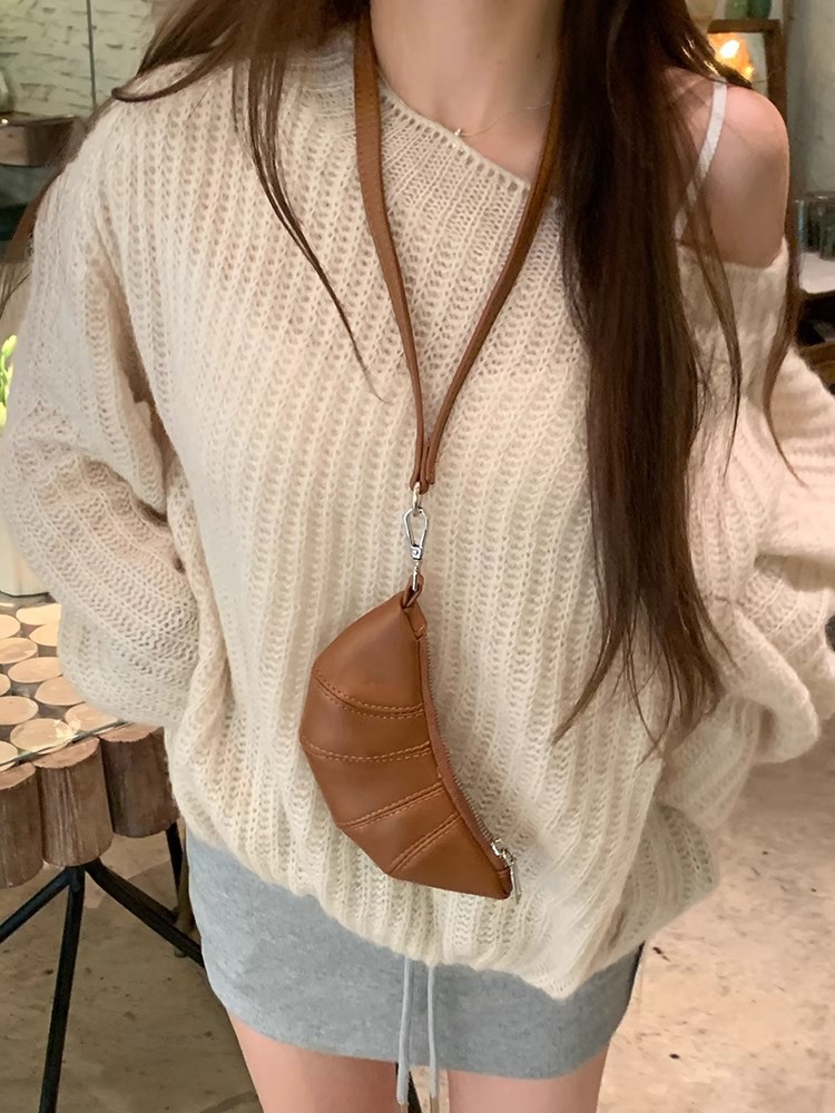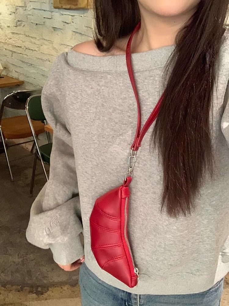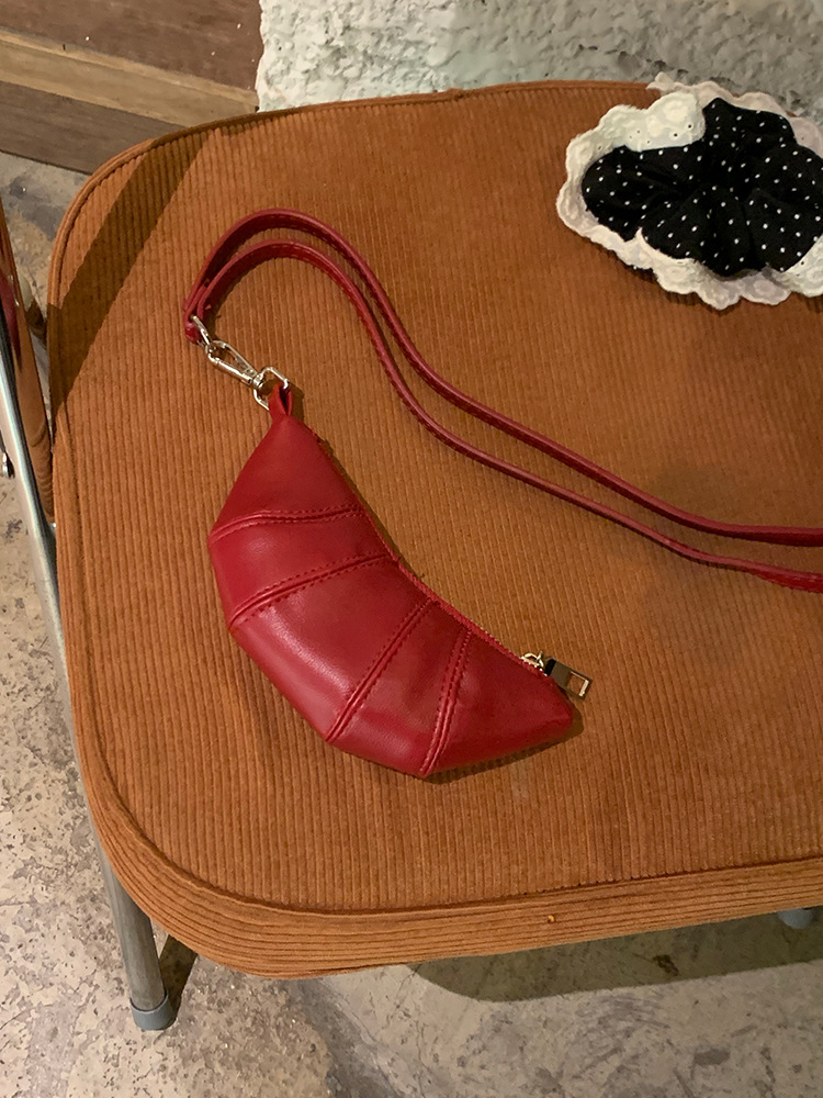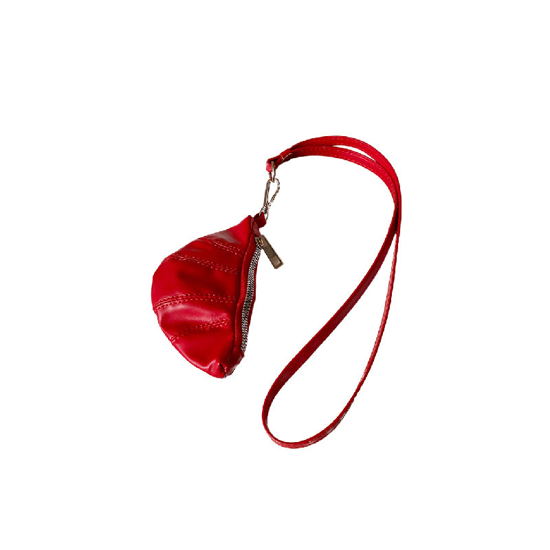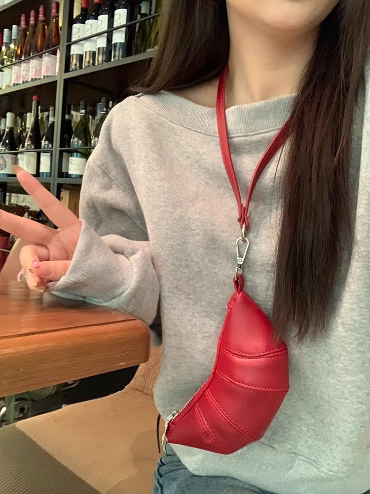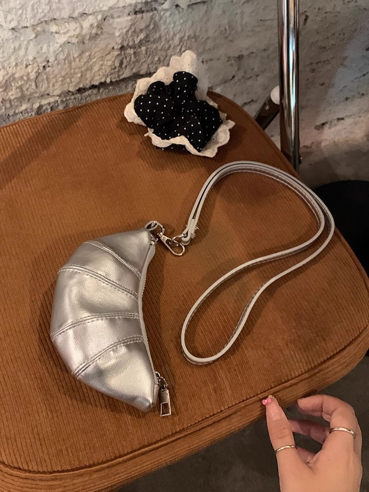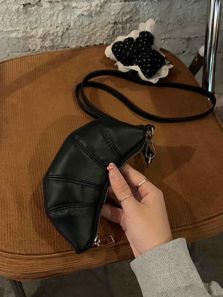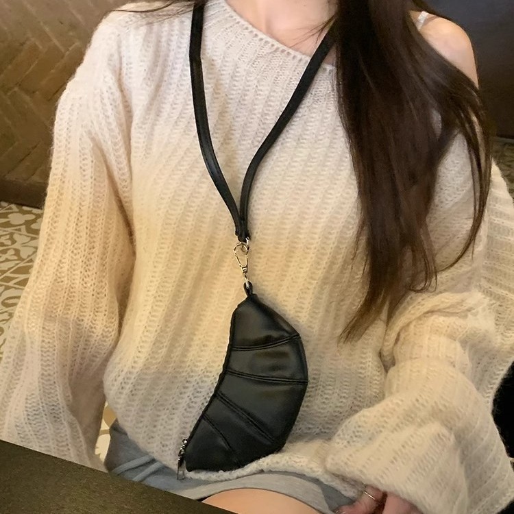 韩版牛角包挂脖网红可颂小众可爱零钱包迷你钥匙口红挂绳耳机包