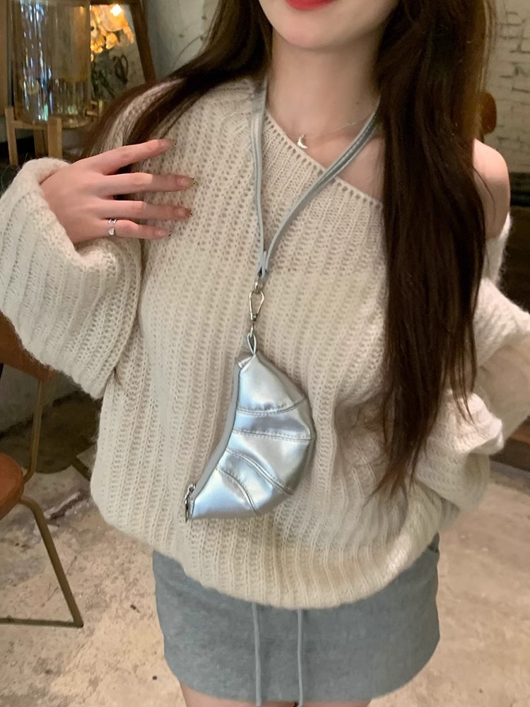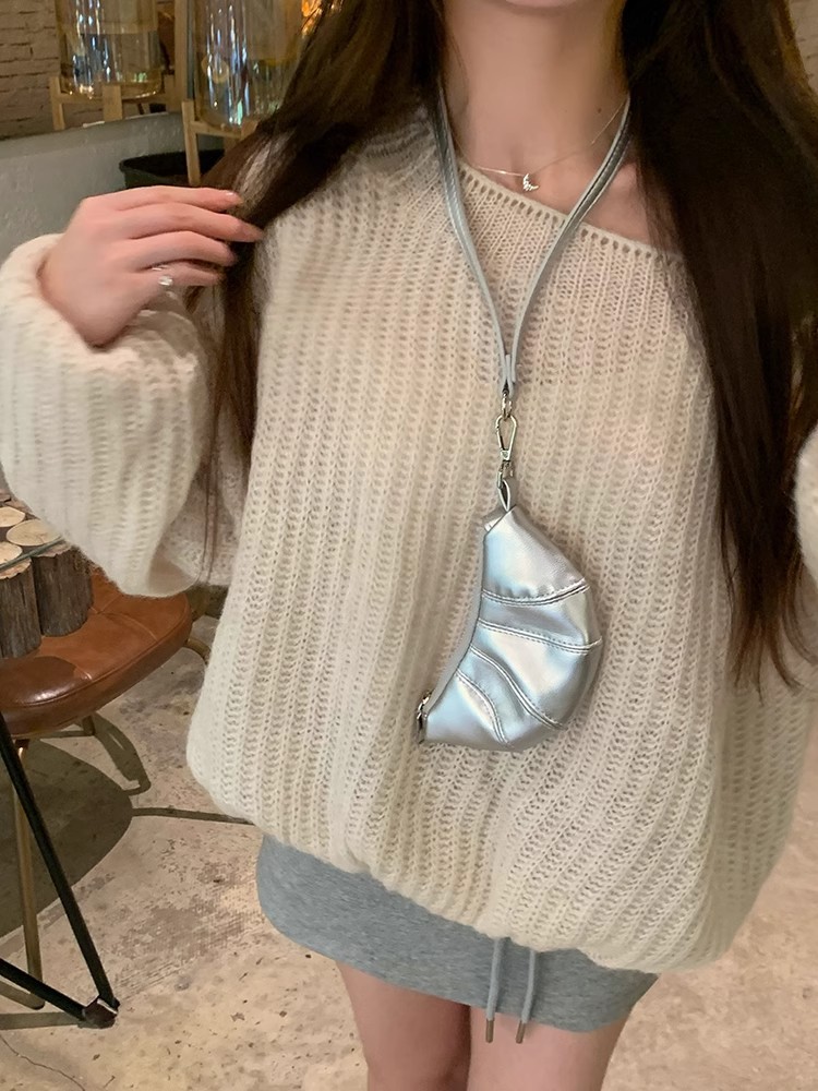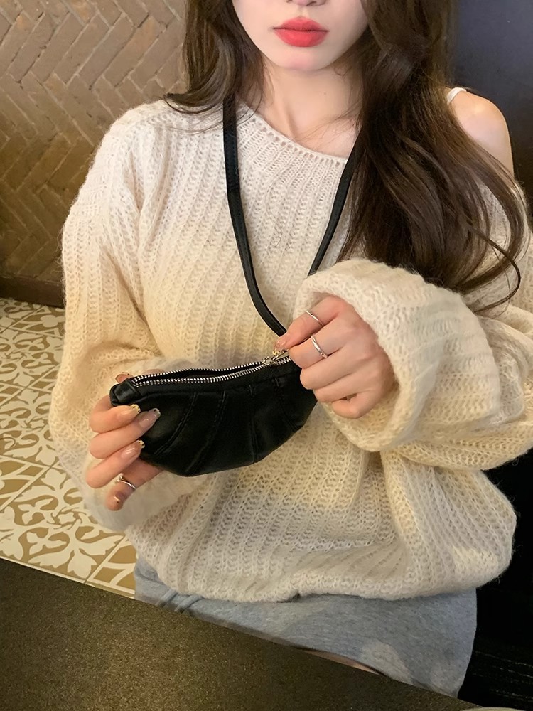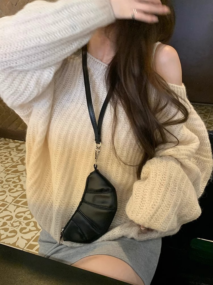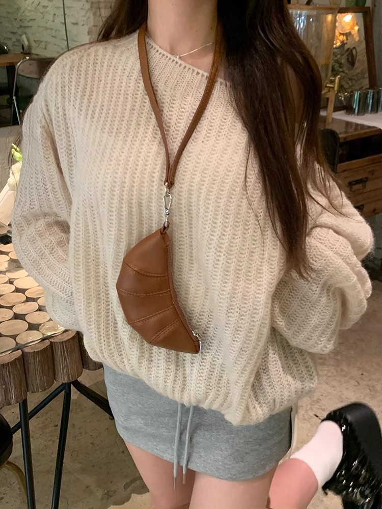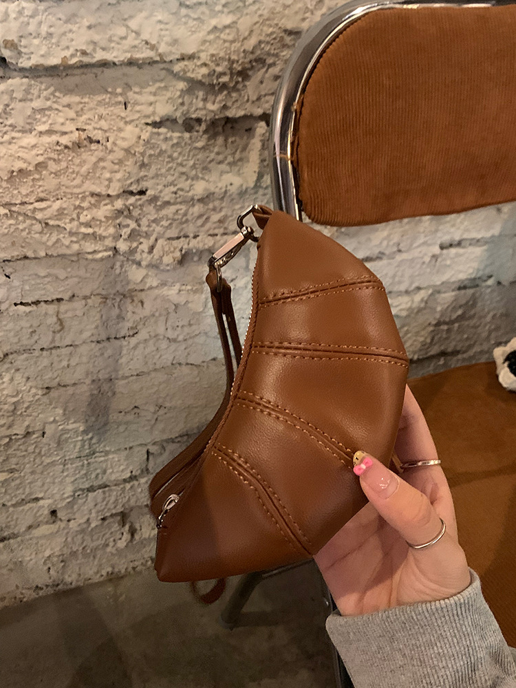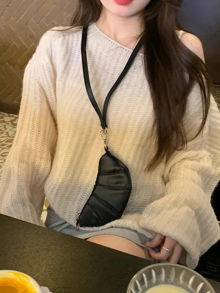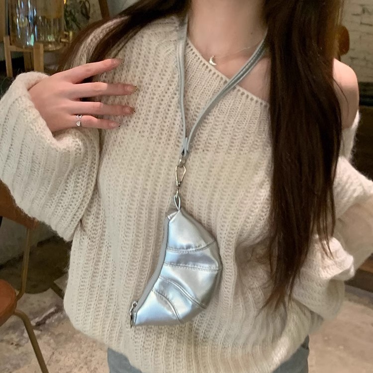 韩版牛角包挂脖网红可颂小众可爱零钱包迷你钥匙口红挂绳耳机包