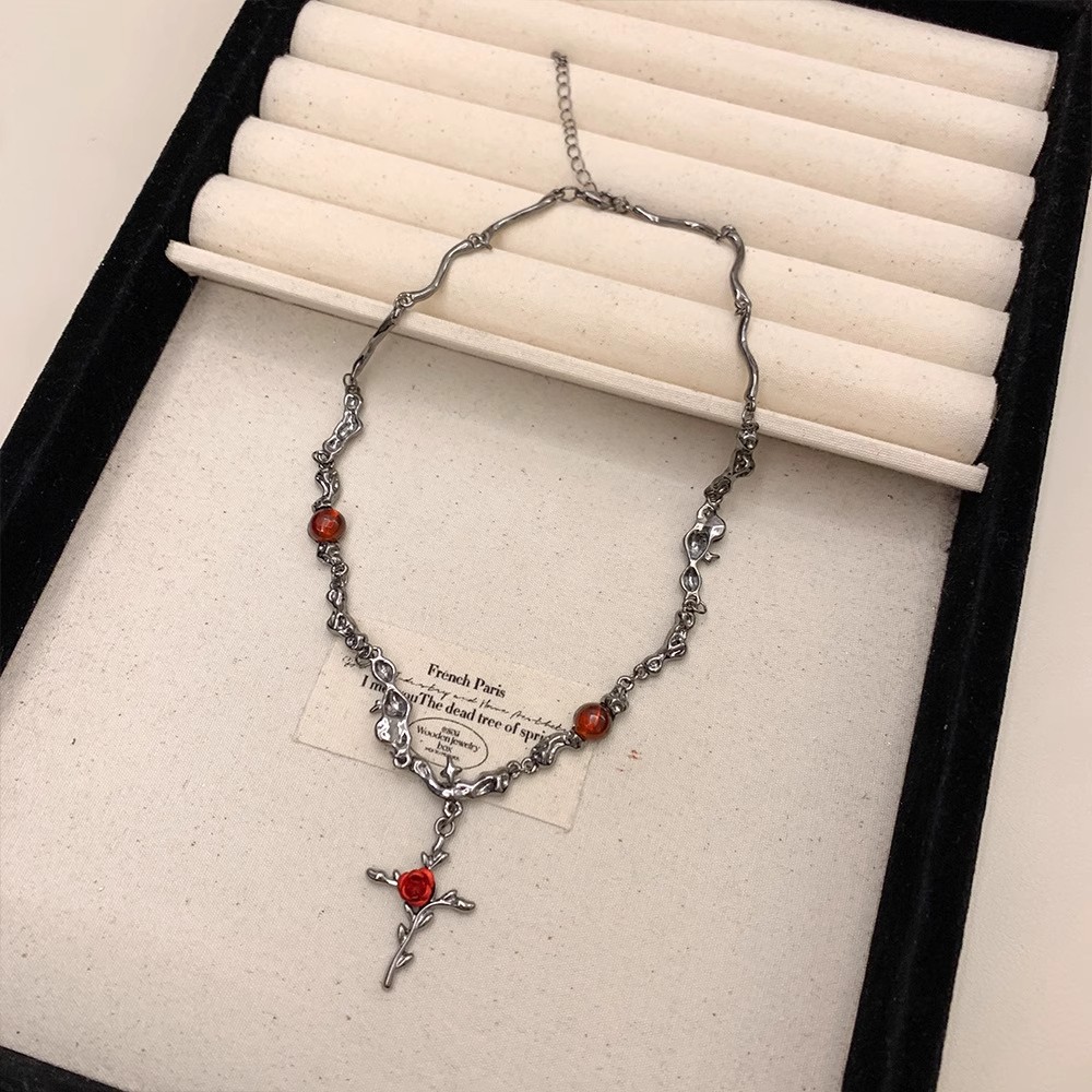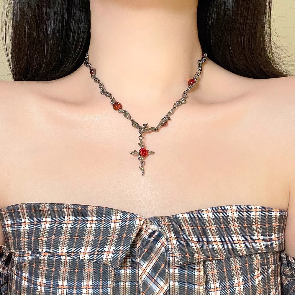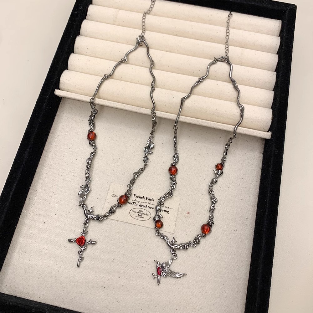 甜酷辣妹风玫瑰花十字架项链女小众设计感个性小鸟吊坠锁骨链高级