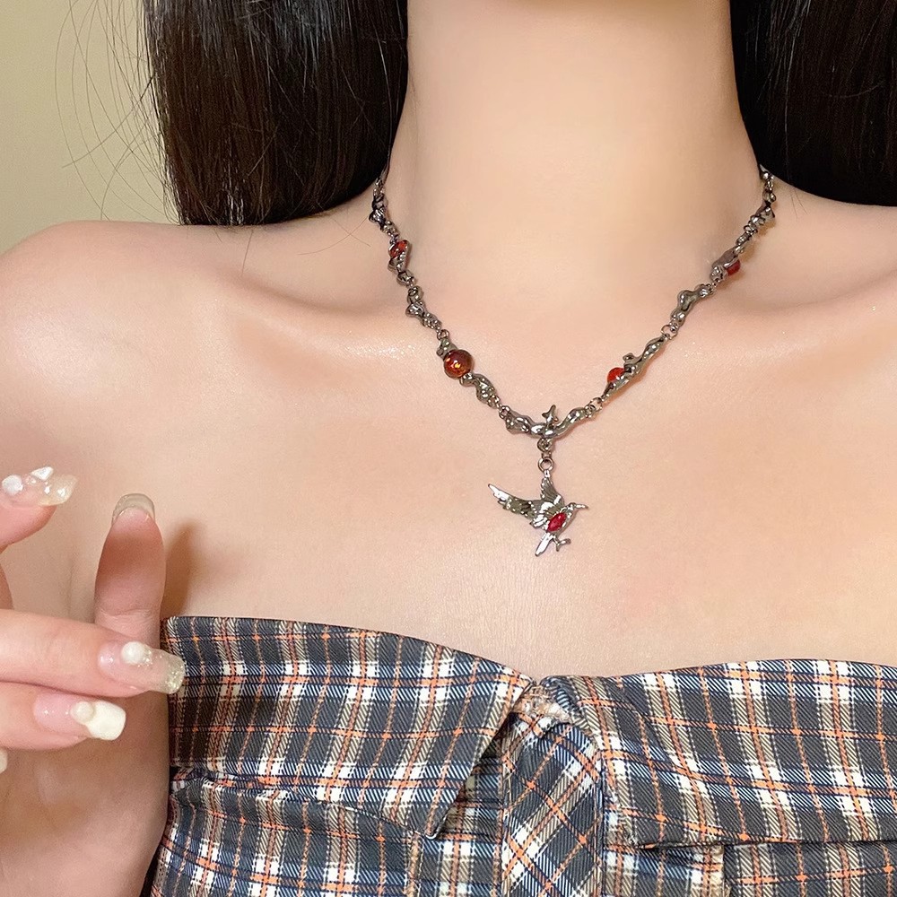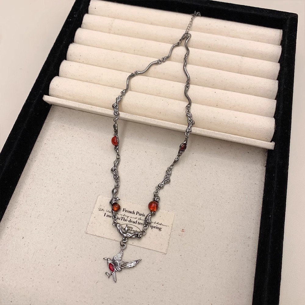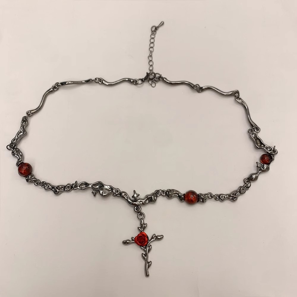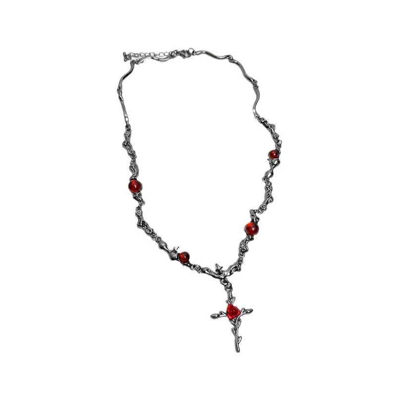 甜酷辣妹风玫瑰花十字架项链女小众设计感个性小鸟吊坠锁骨链高级