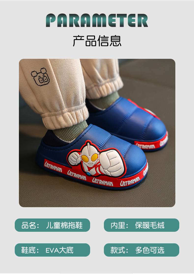 奥特曼儿童棉鞋冬防水男童女童室内居家防滑男孩小孩宝宝女孩拖鞋