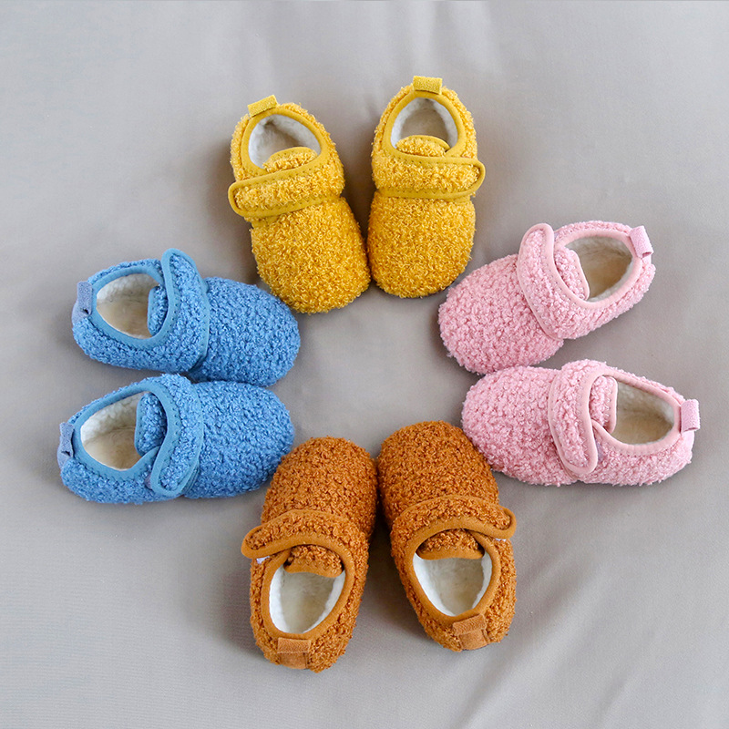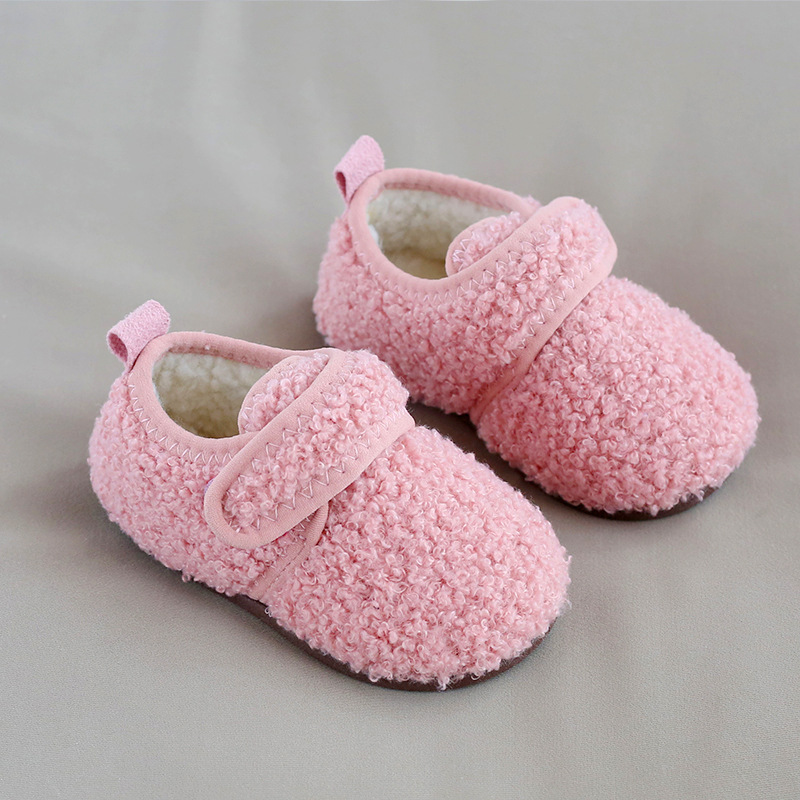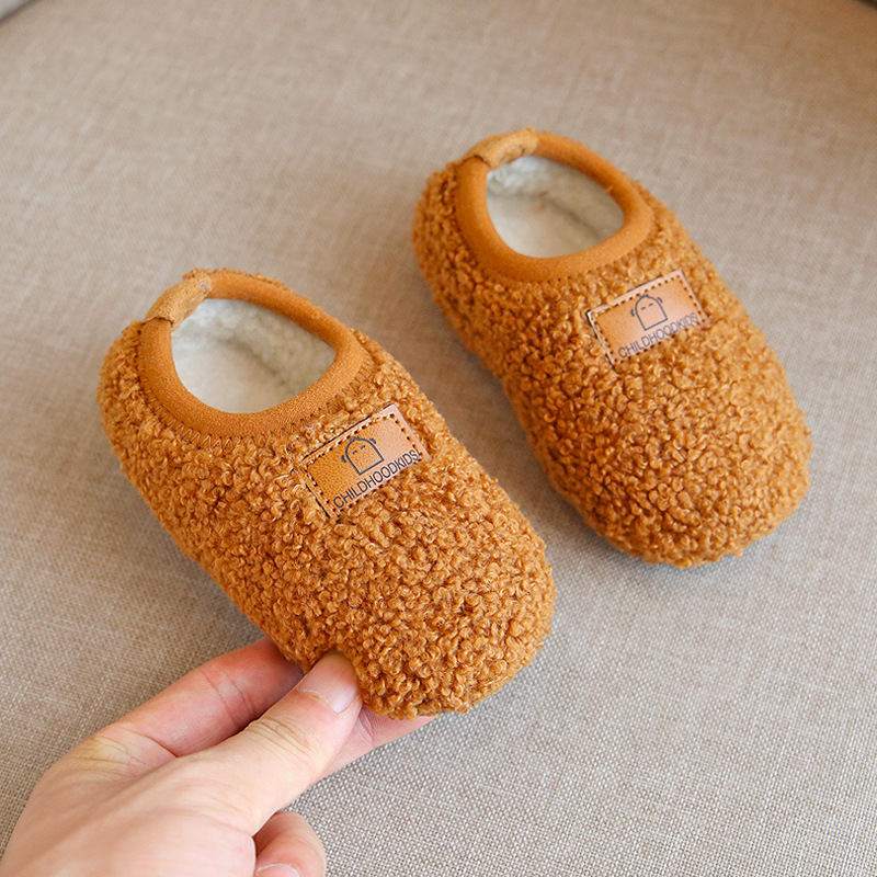 冬季加绒儿童家居鞋宝宝棉拖鞋包根女小孩婴幼室内毛毛男不掉防滑