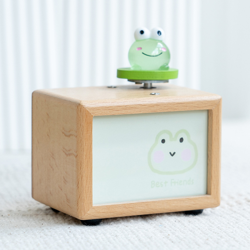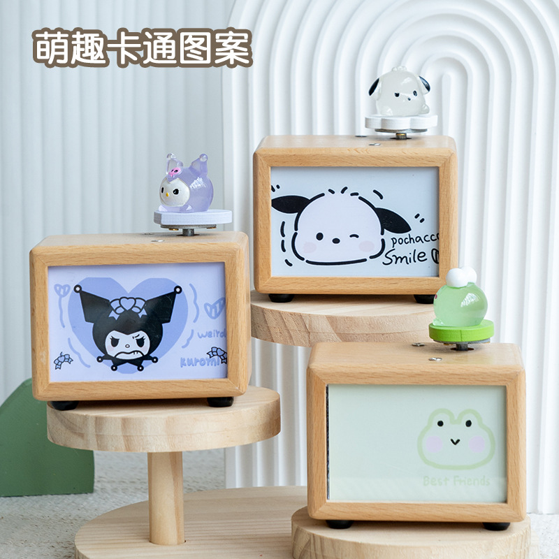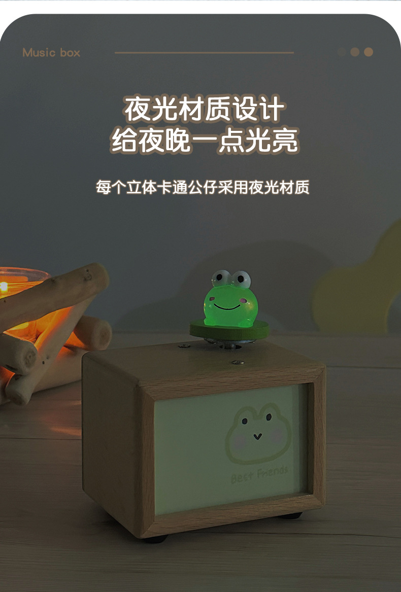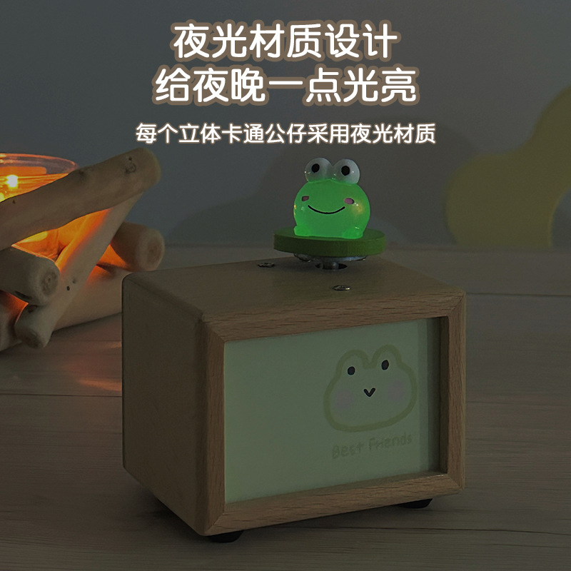 木质发条旋转发光公仔音乐盒八音盒创意生日礼物木制礼品送男女友