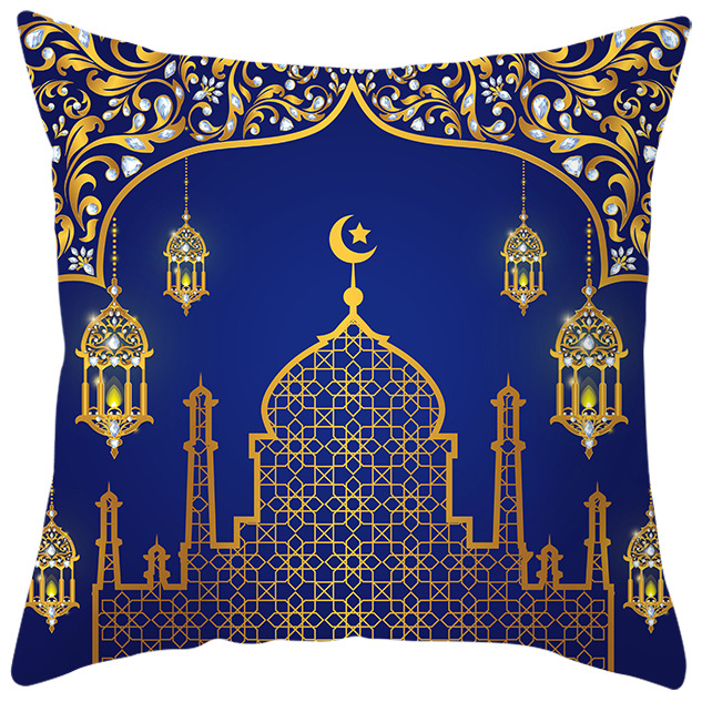 跨境新款民族节日金色月亮灯蓝色印花抱枕套餐垫桌旗民族风家居