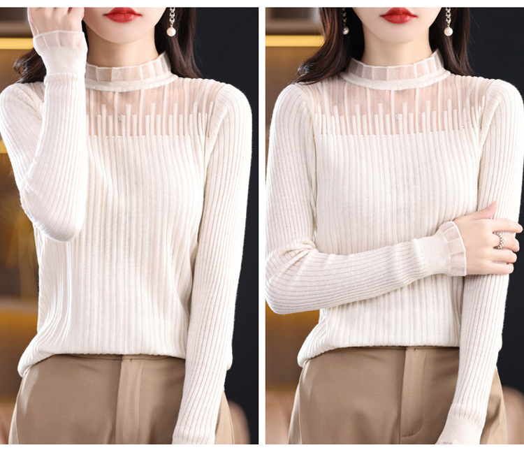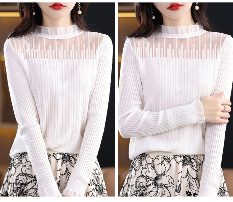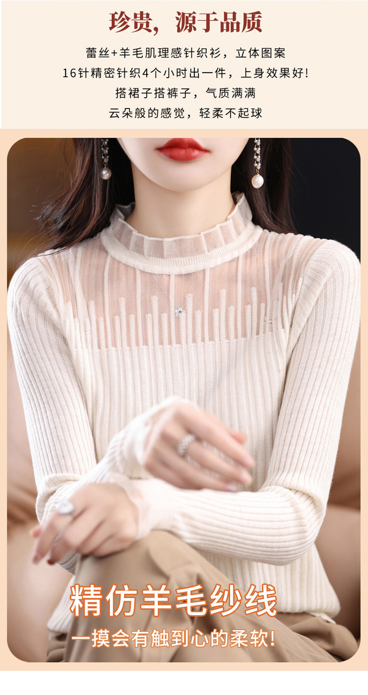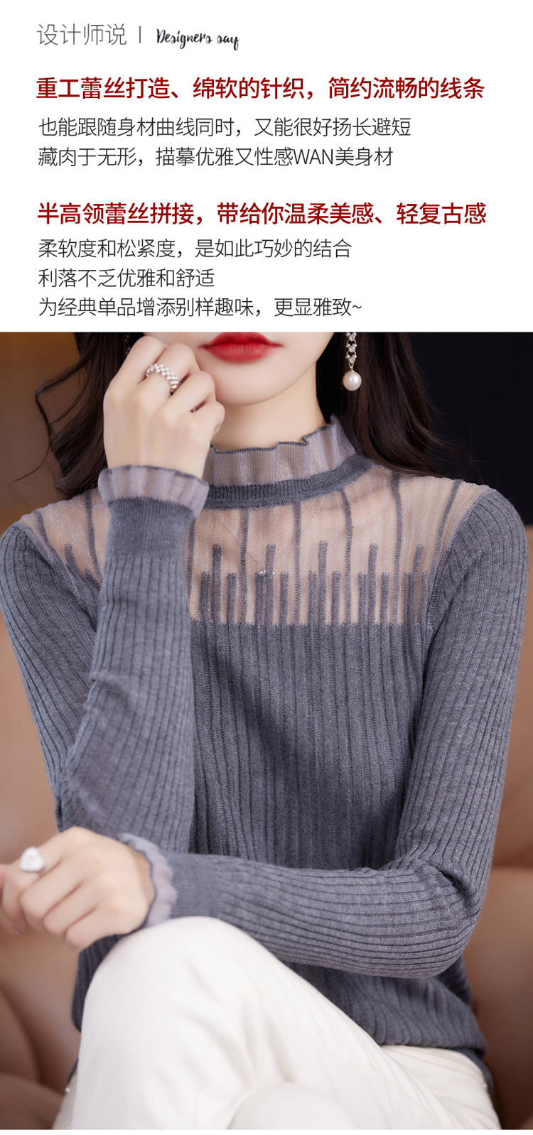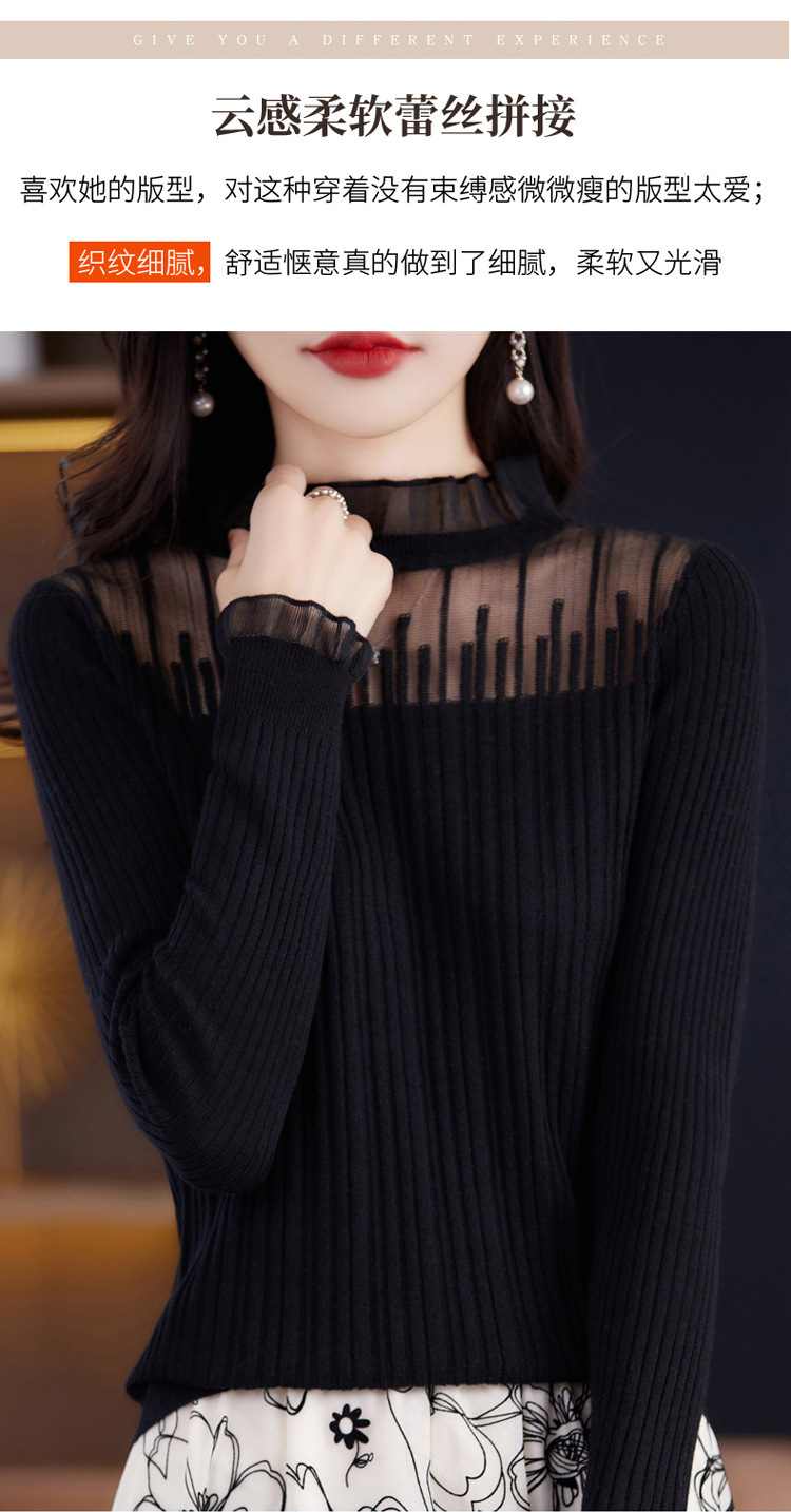 法式别致蕾丝花边领打底衫女半高领毛衣薄款洋气羊毛针织衫女代发