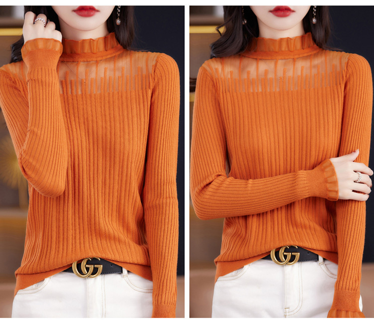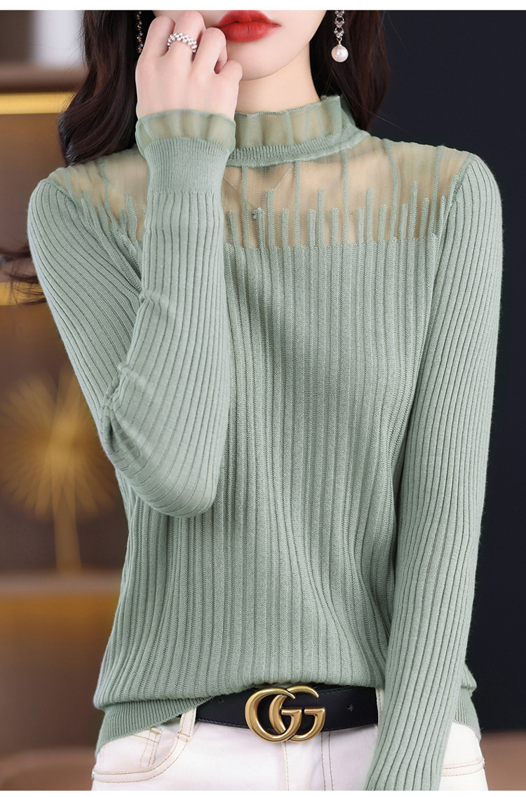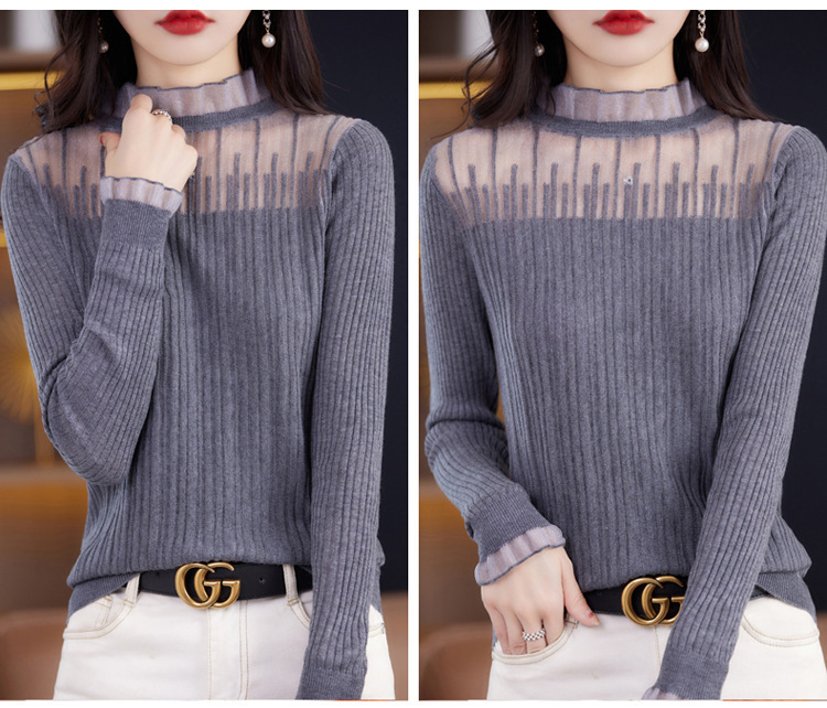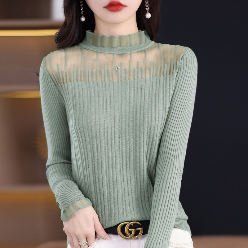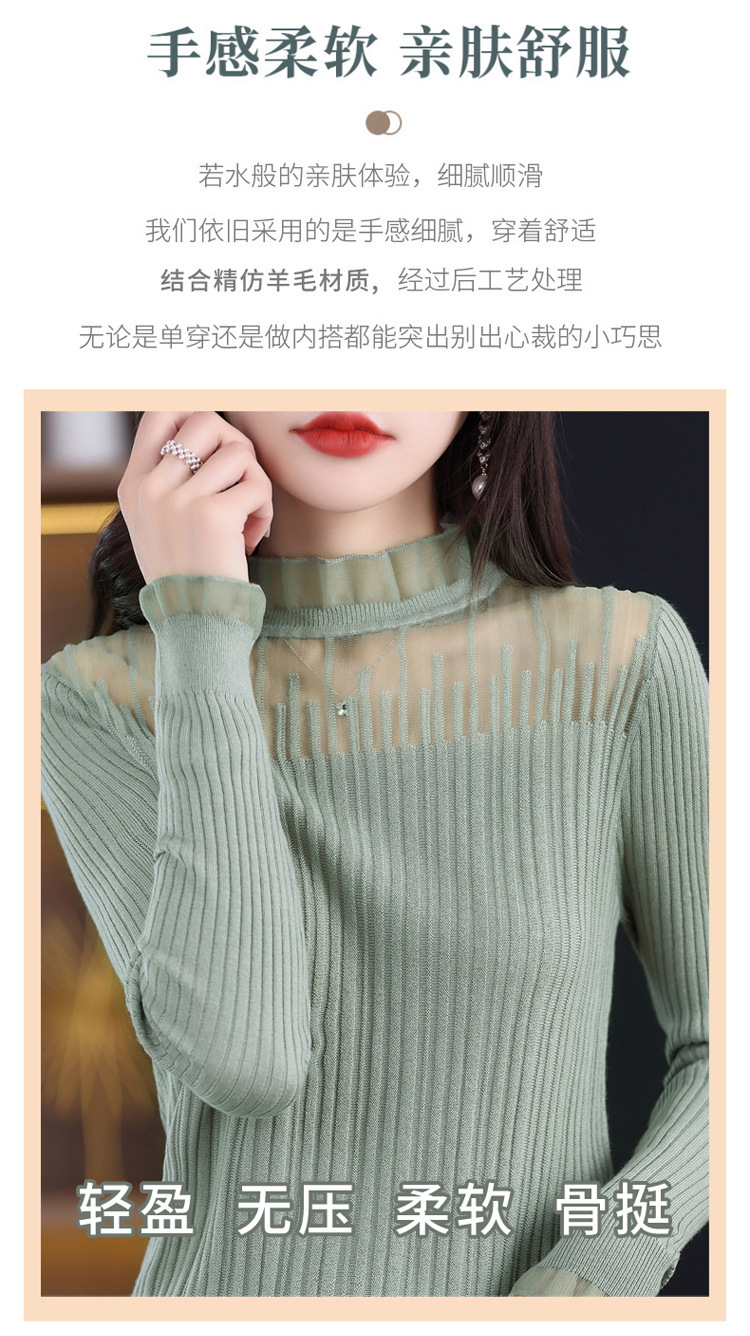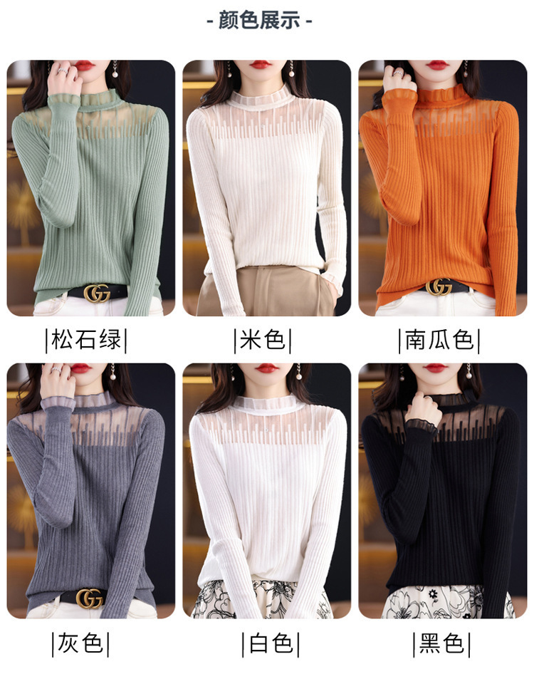 法式别致蕾丝花边领打底衫女半高领毛衣薄款洋气羊毛针织衫女代发