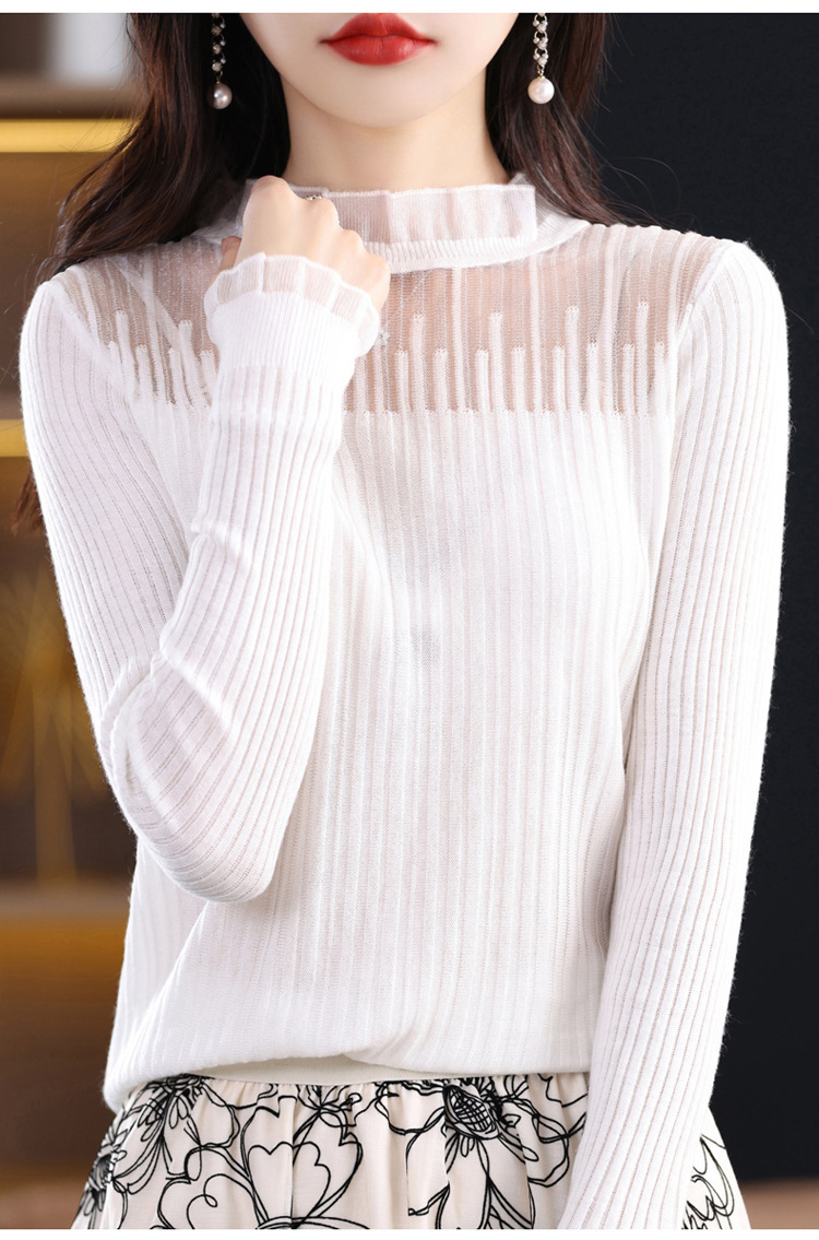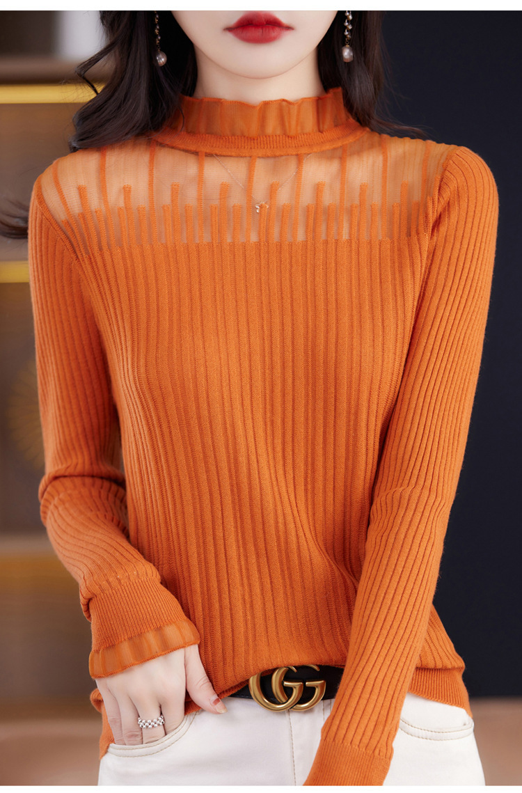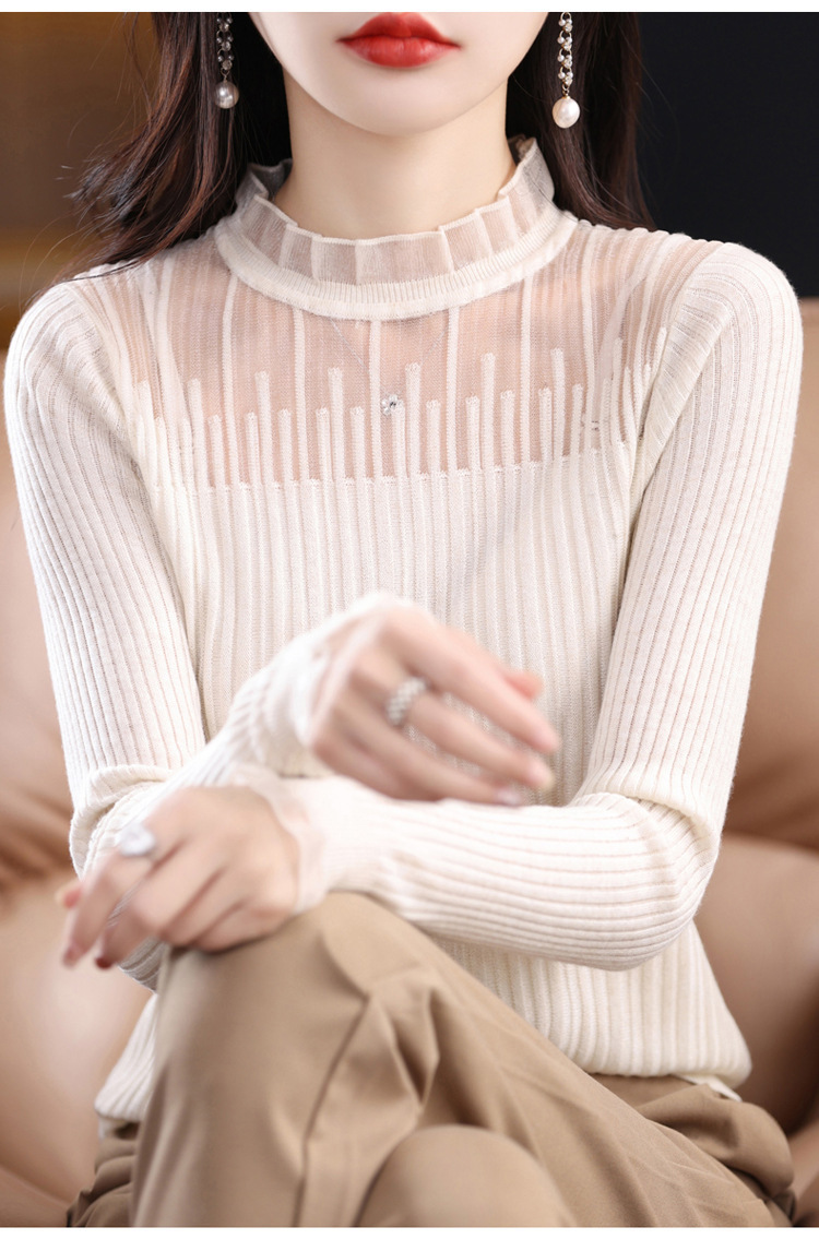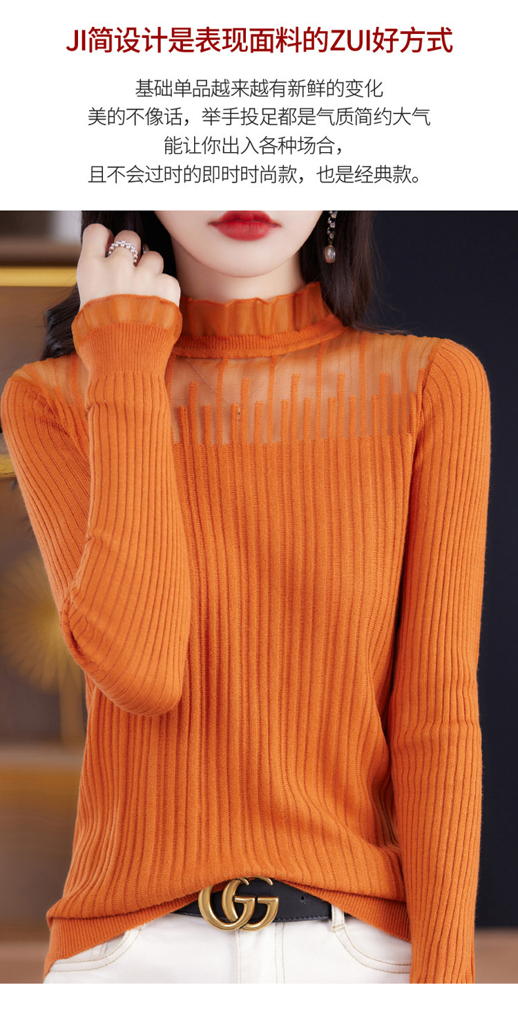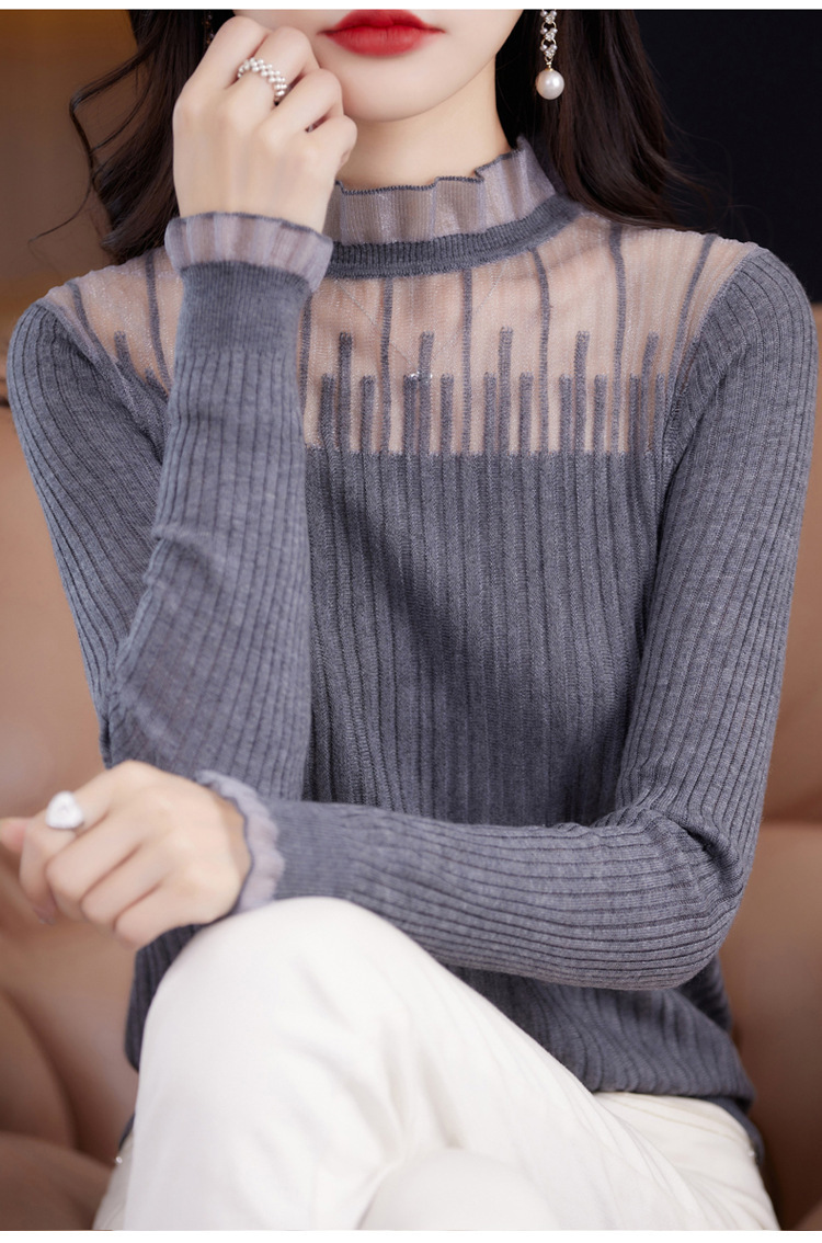 法式别致蕾丝花边领打底衫女半高领毛衣薄款洋气羊毛针织衫女代发