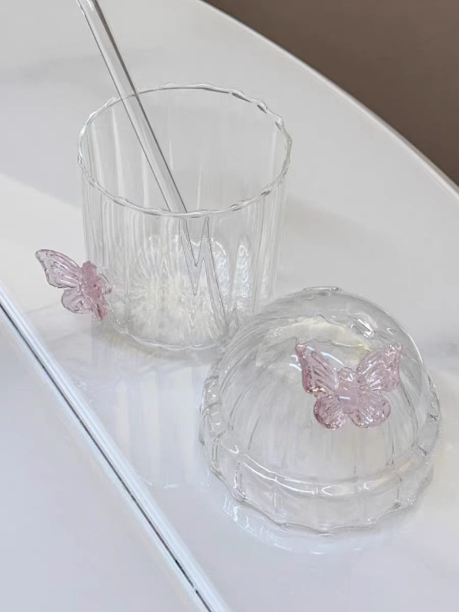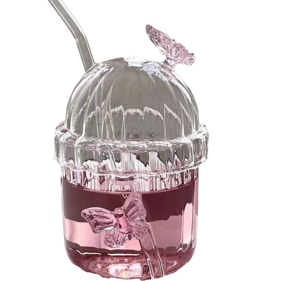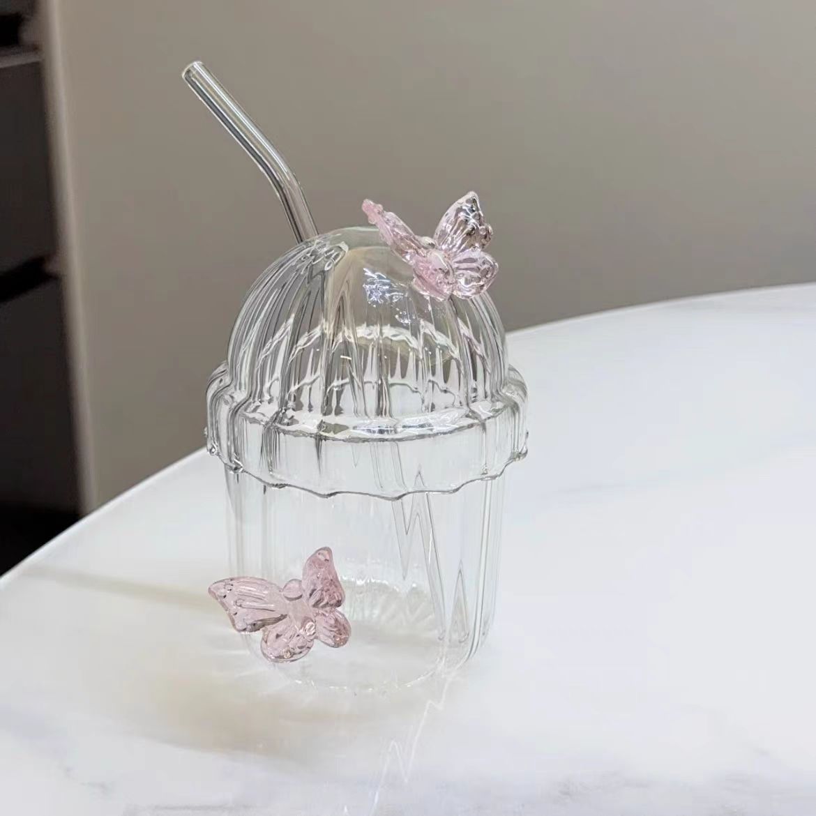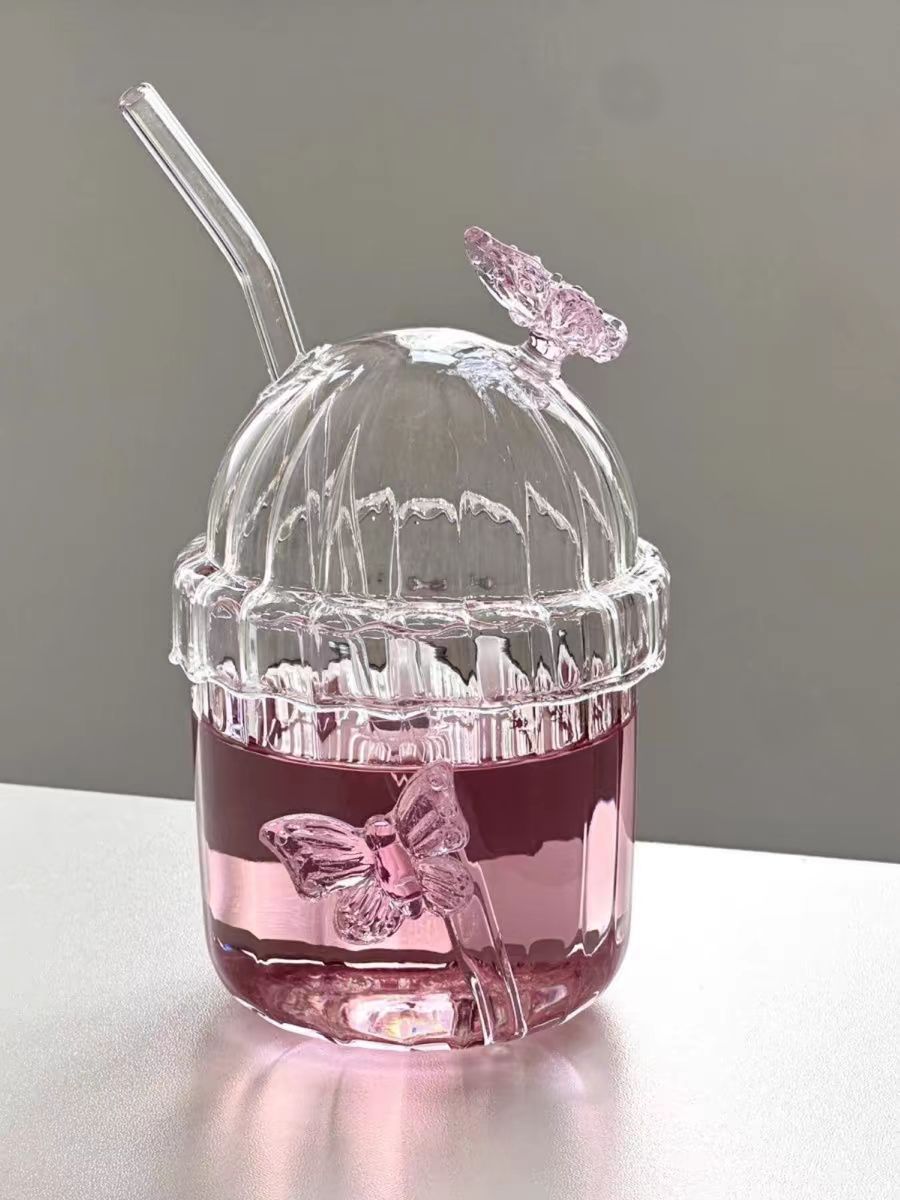 蝴蝶啵啵杯BOBO吸管杯带带盖高硼硅玻璃杯耐高温牛奶杯咖啡杯果汁