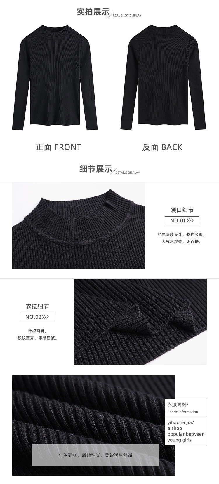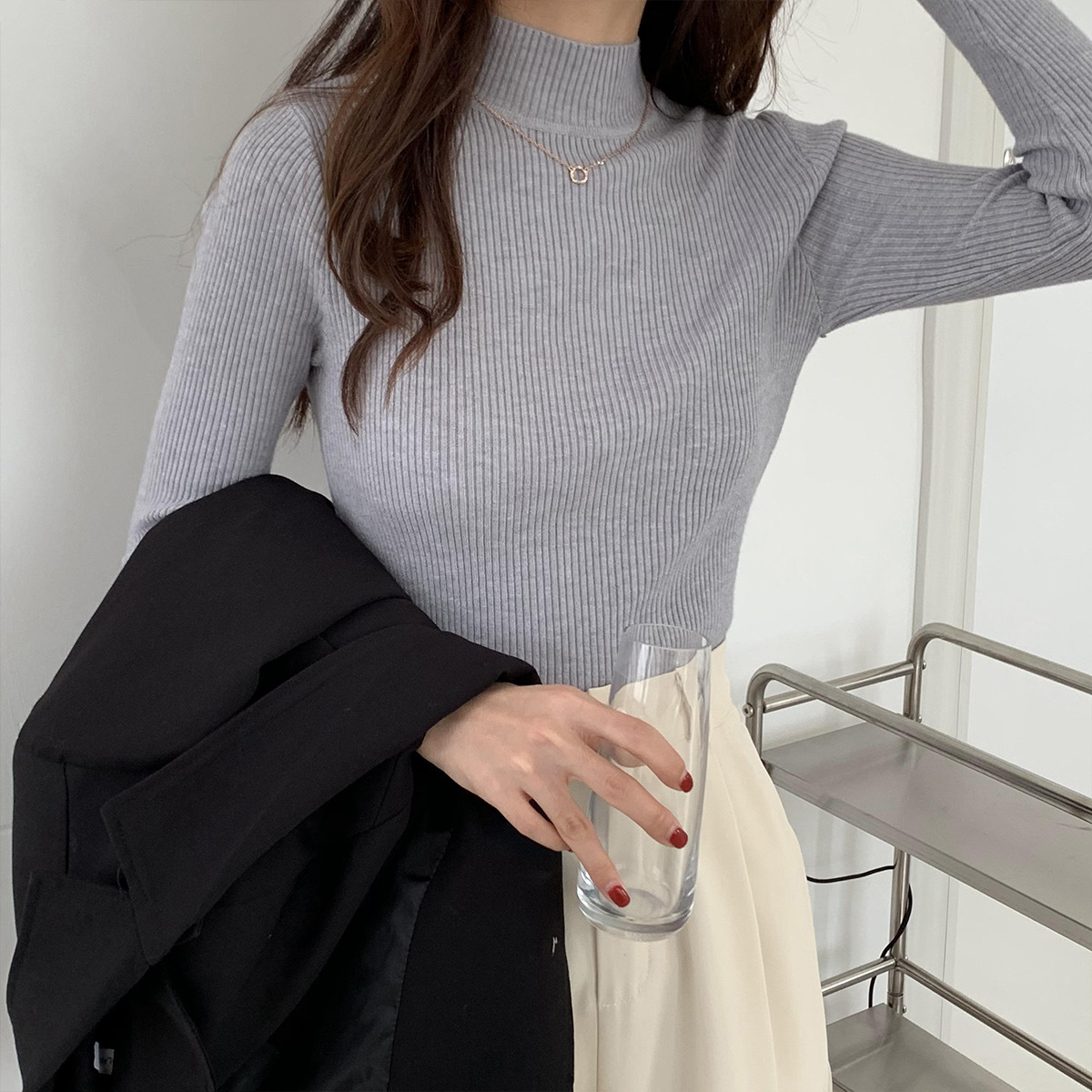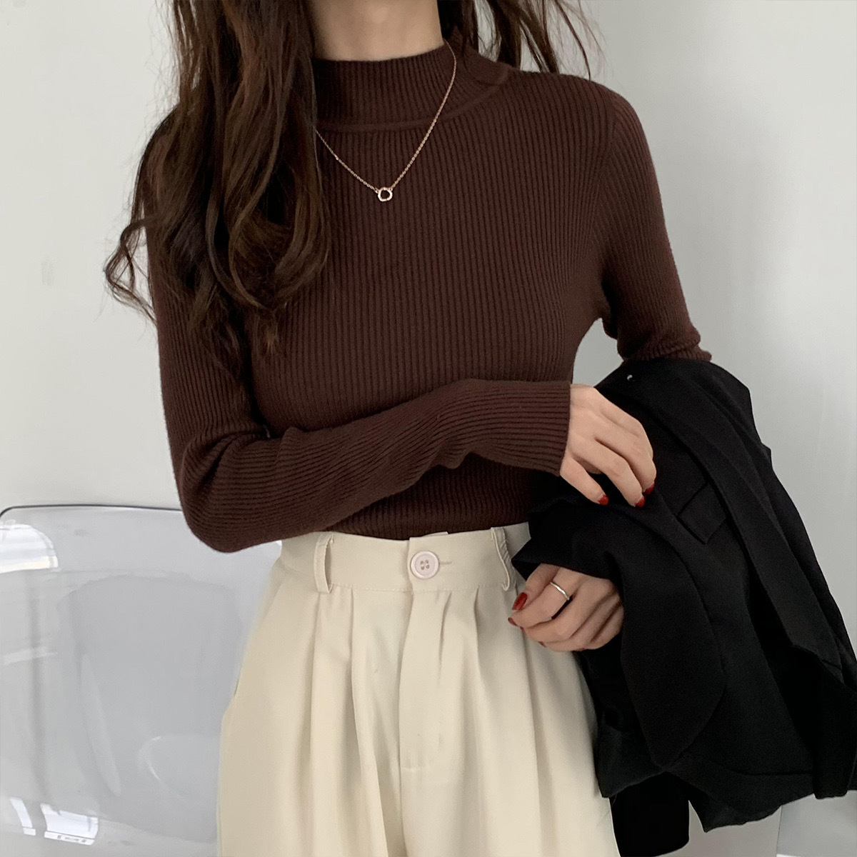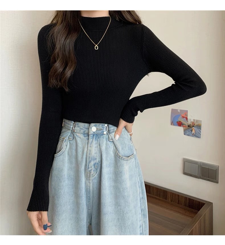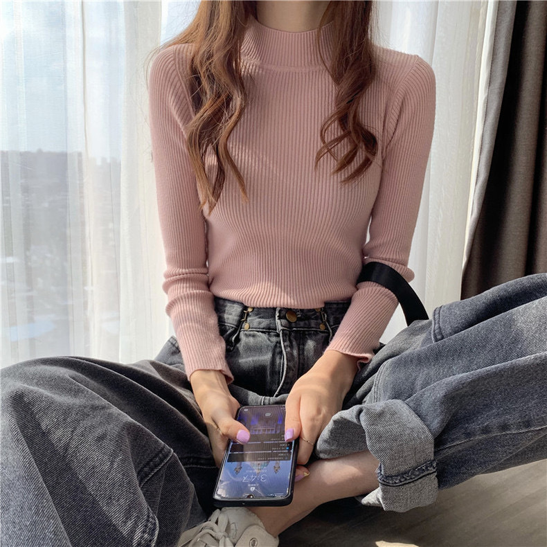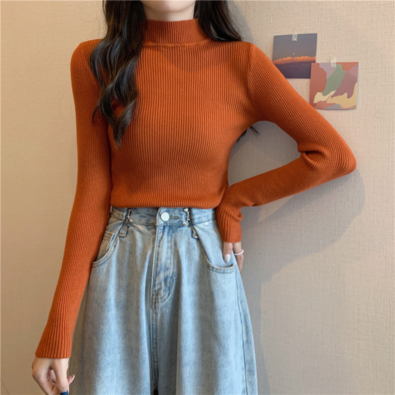 半高领毛衣打底衫女秋冬洋气修身内搭上衣新款百搭针织衫长袖代发