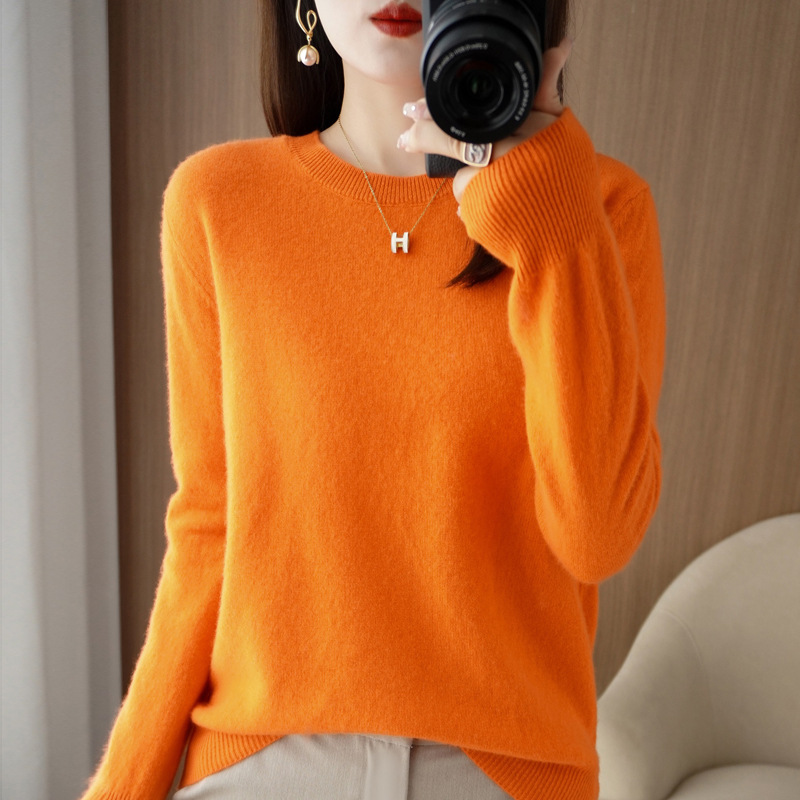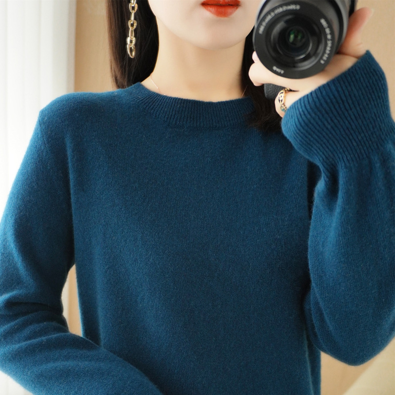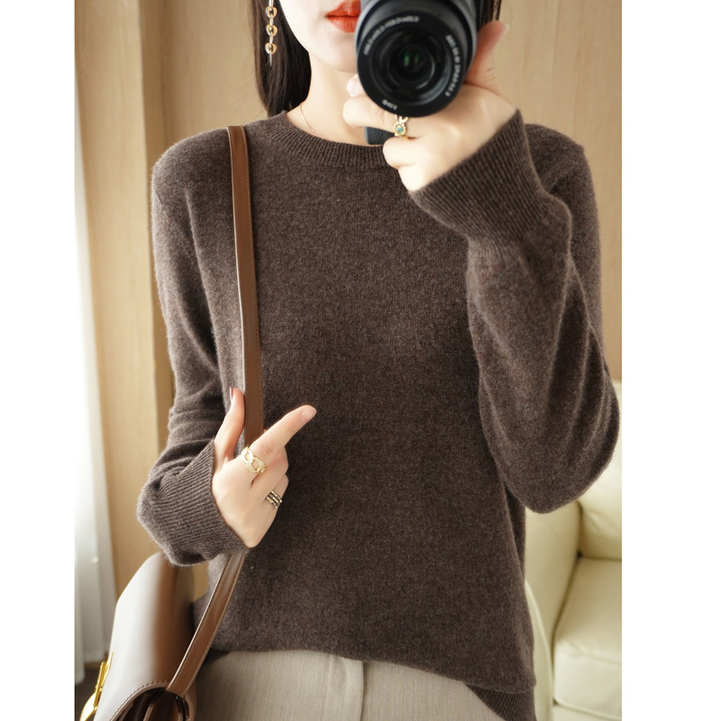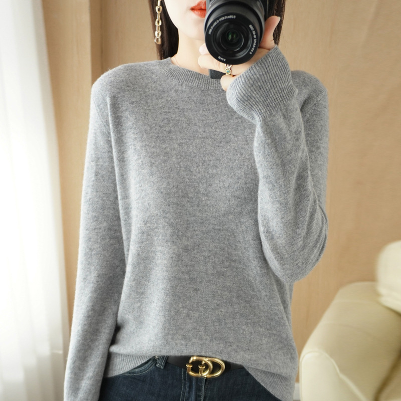 春秋打底毛衣新款圆领针织衫女套头长袖毛衫宽松显瘦内搭休闲女装