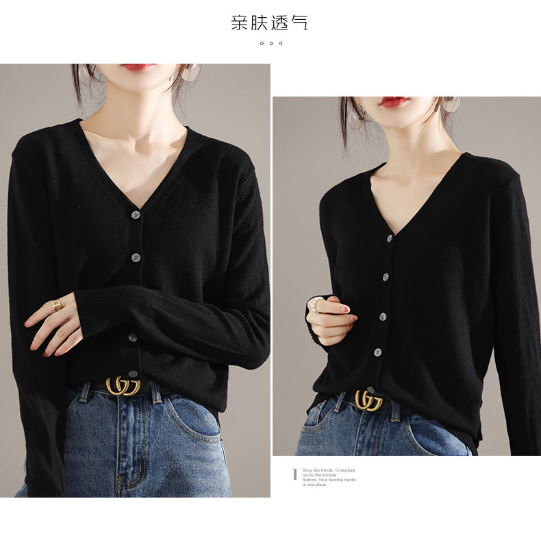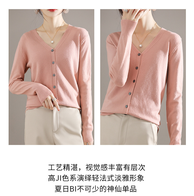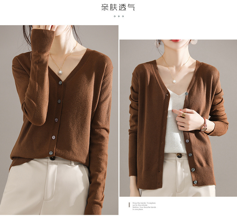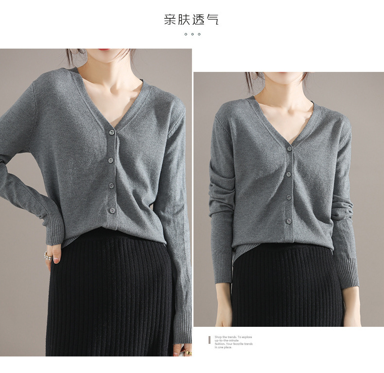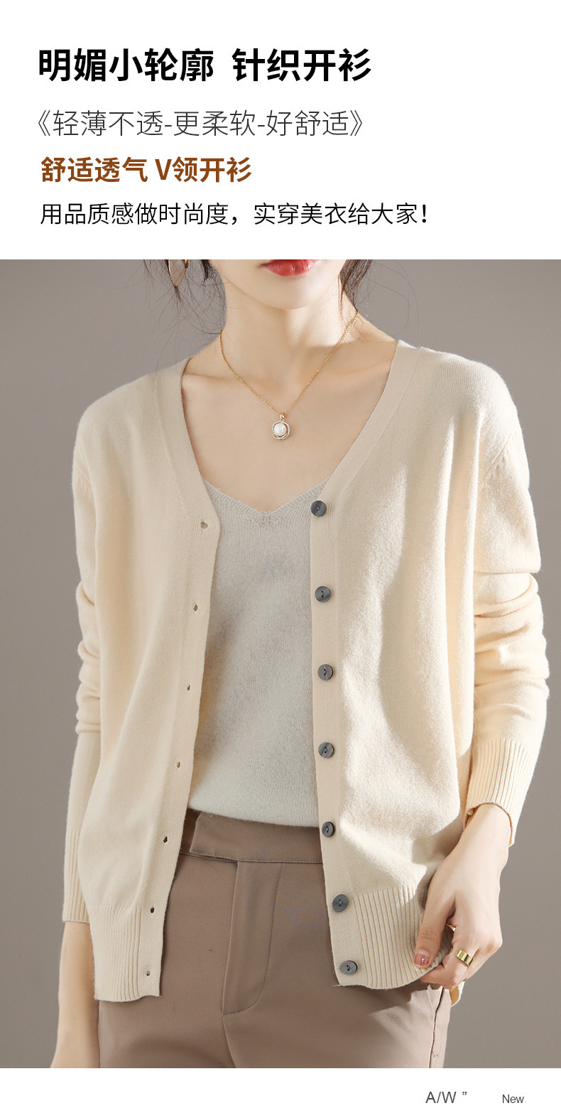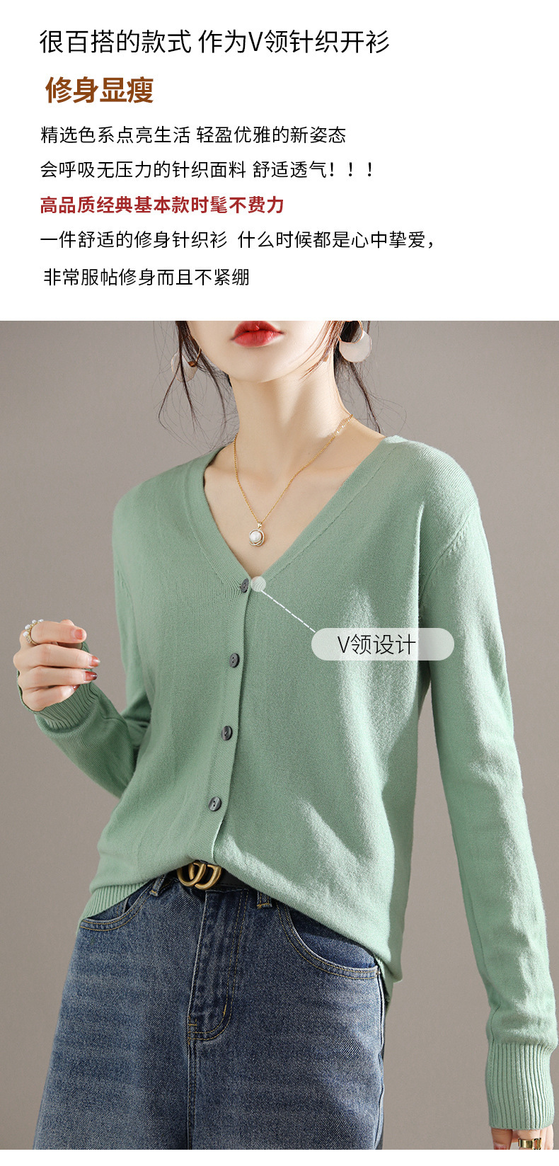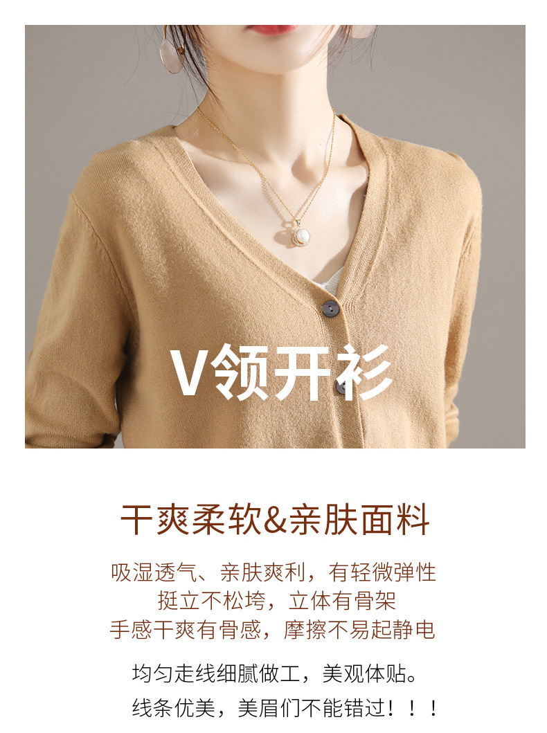 2024秋季薄款V领针织开衫女宽松休闲长袖毛衣小外套百搭打底上衣