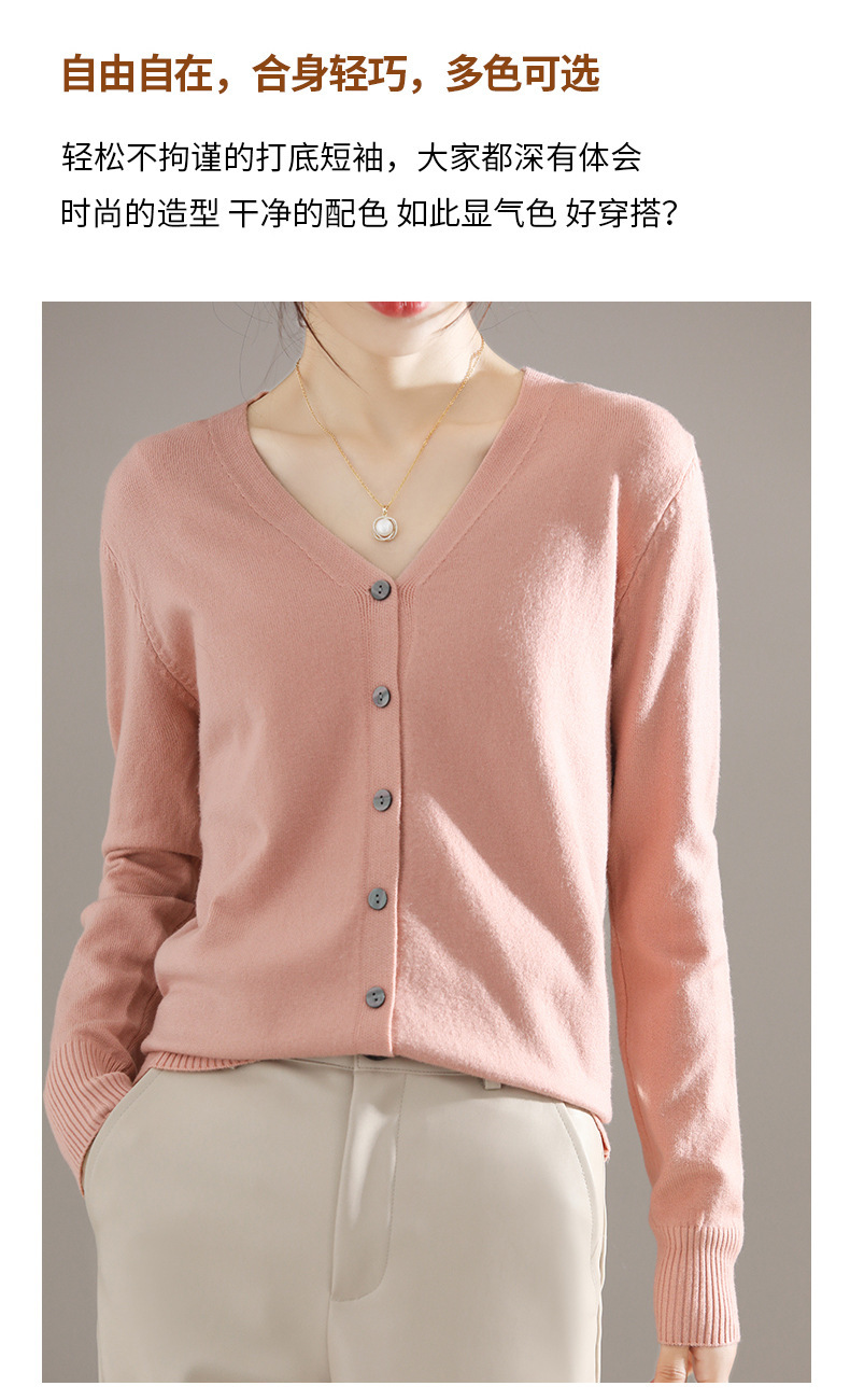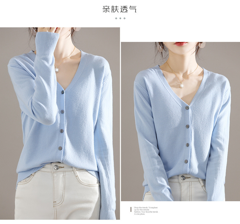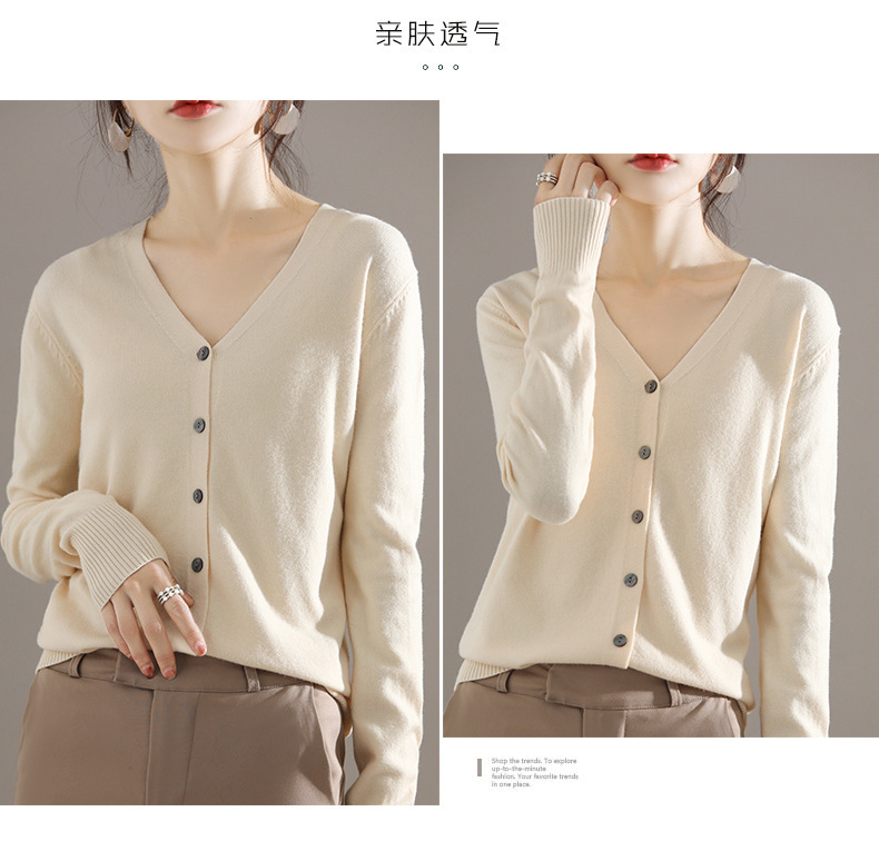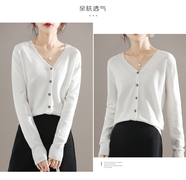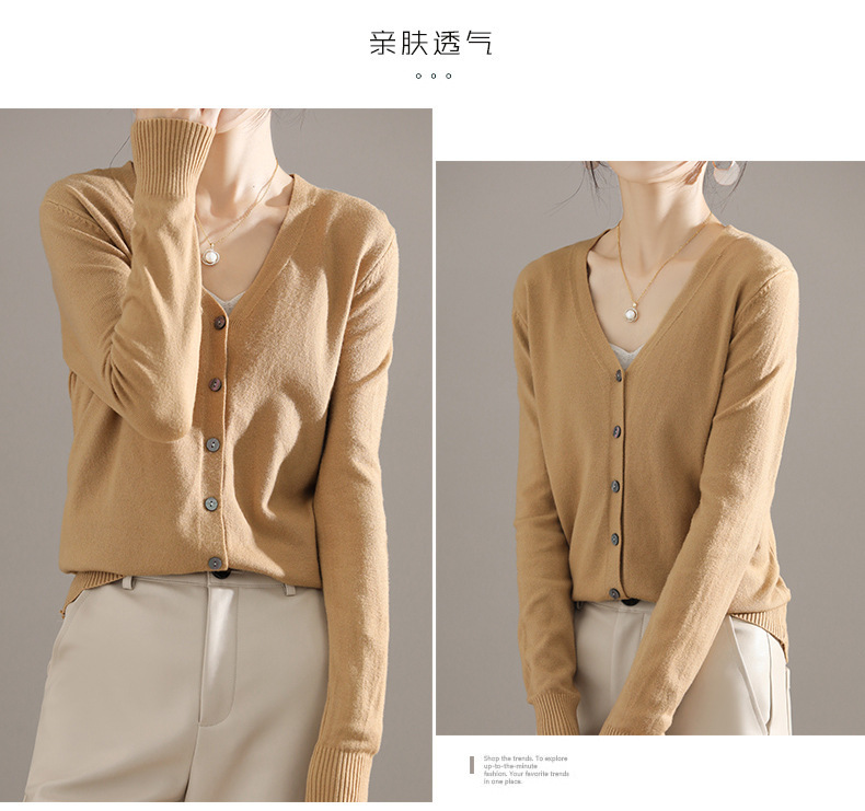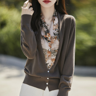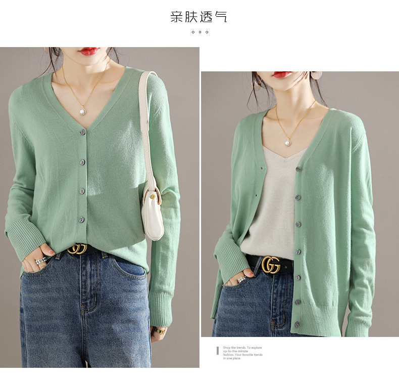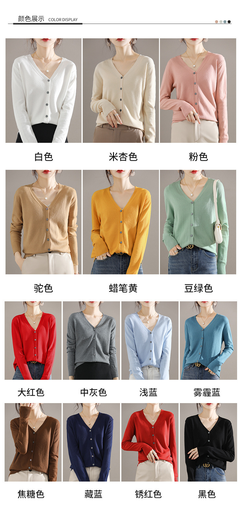 2024秋季薄款V领针织开衫女宽松休闲长袖毛衣小外套百搭打底上衣