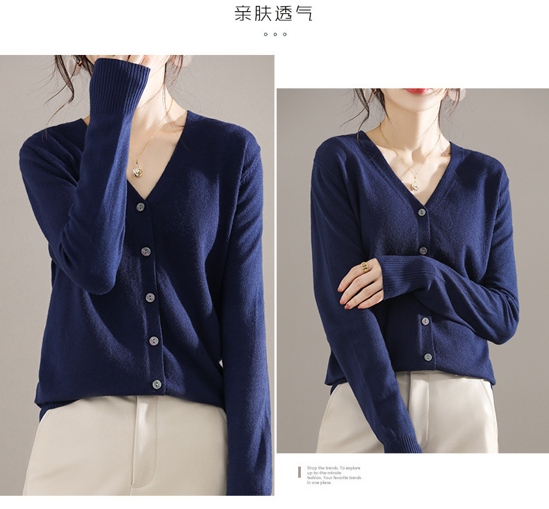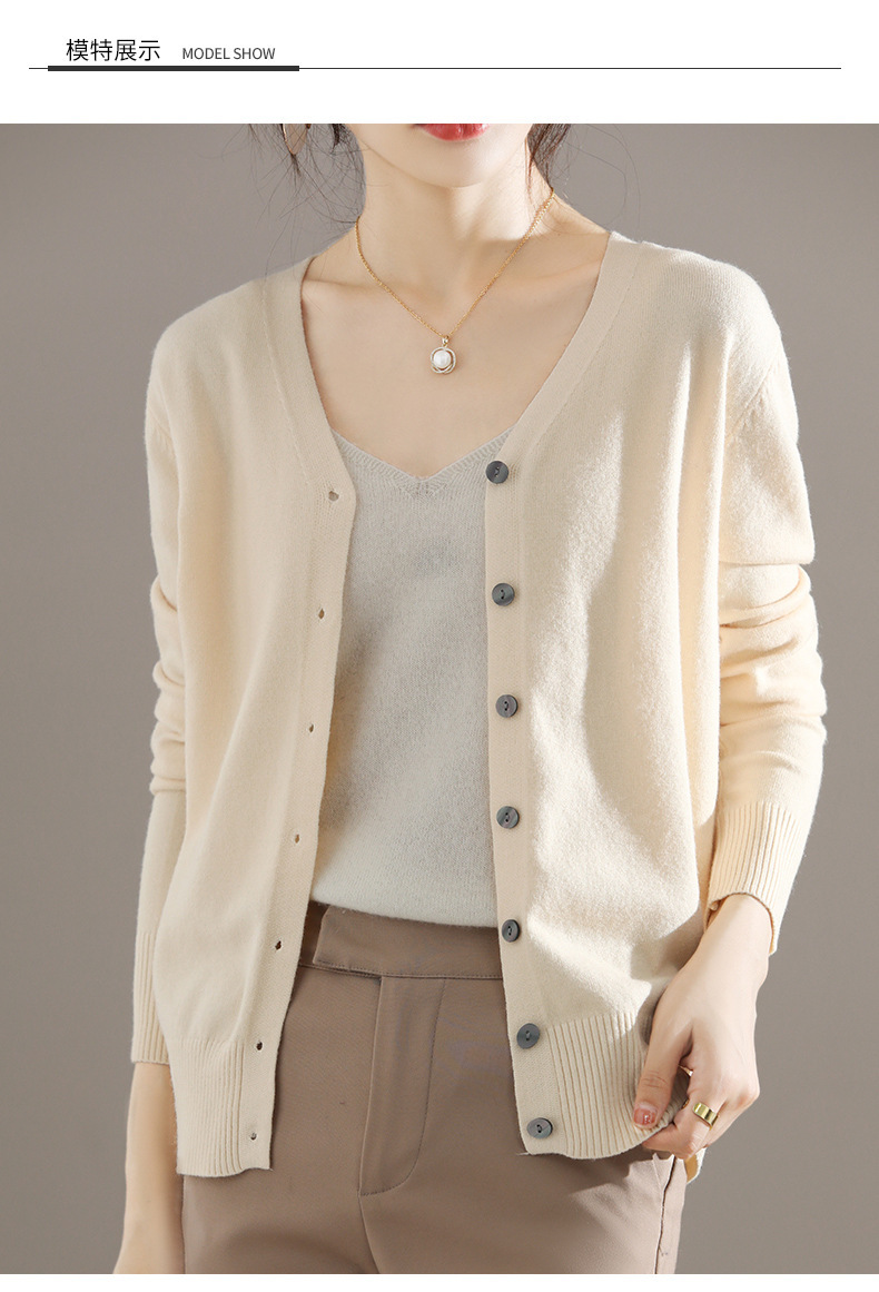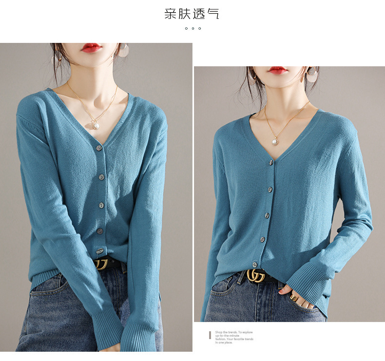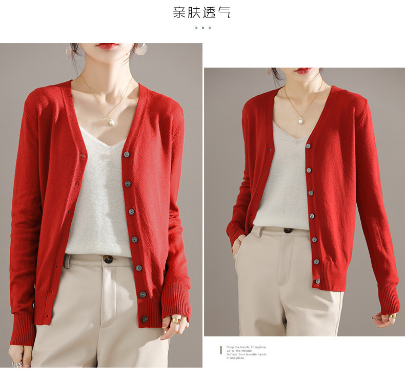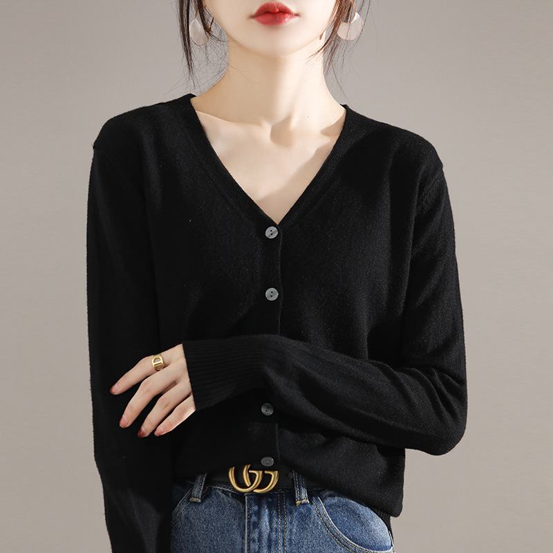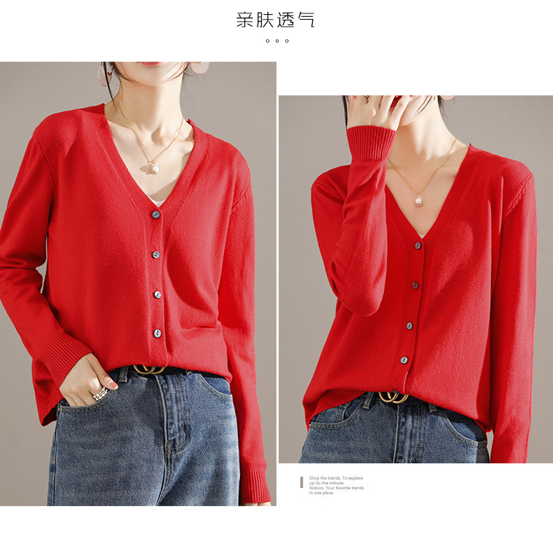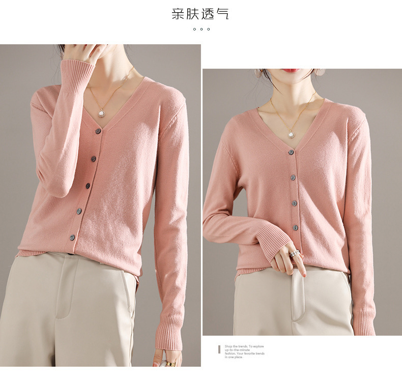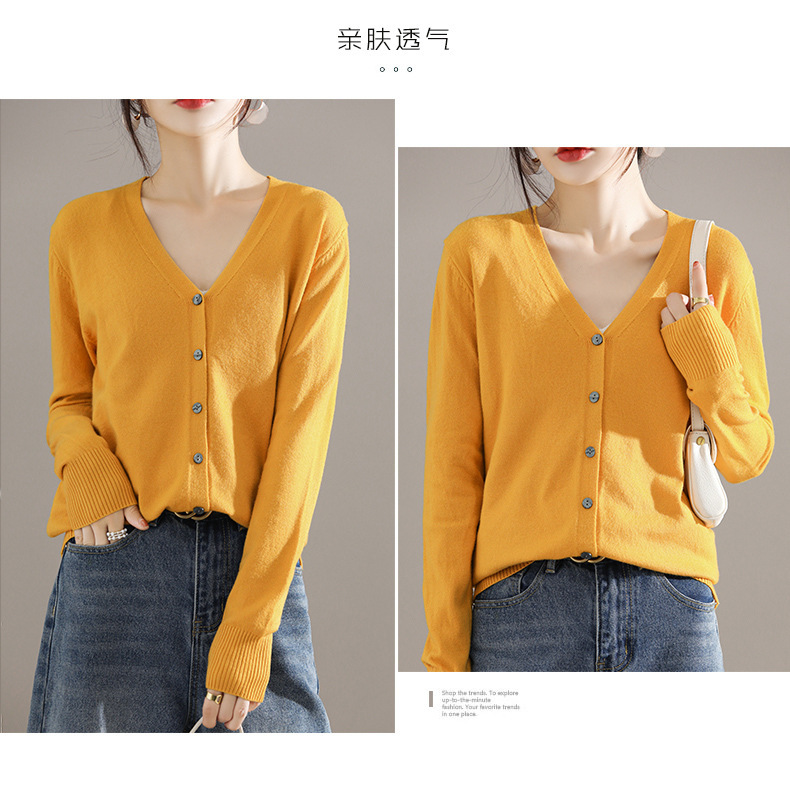 2024秋季薄款V领针织开衫女宽松休闲长袖毛衣小外套百搭打底上衣