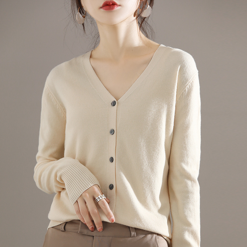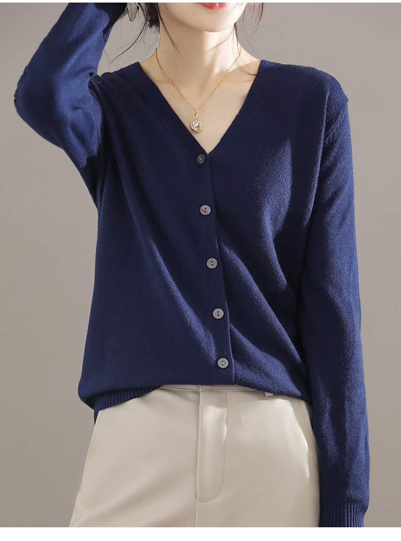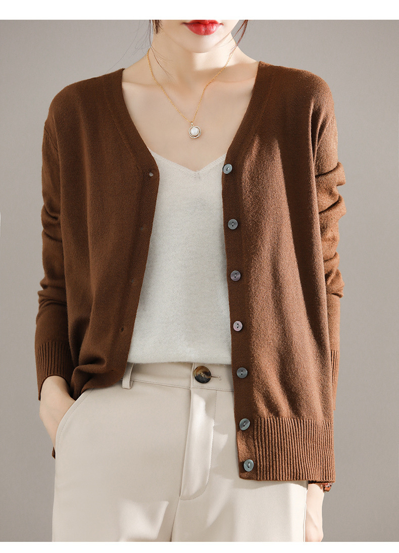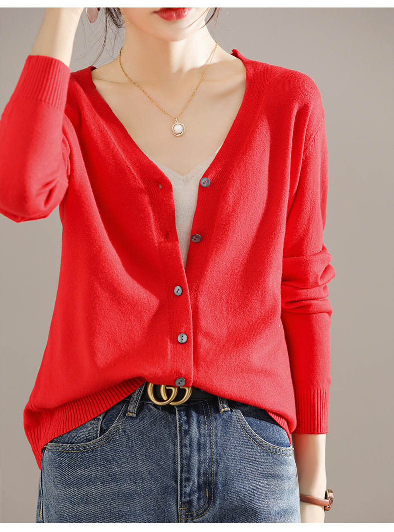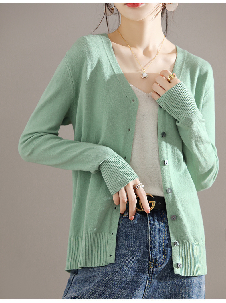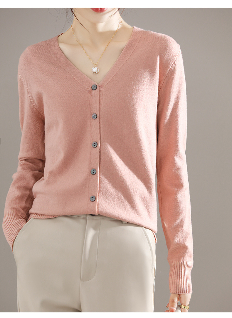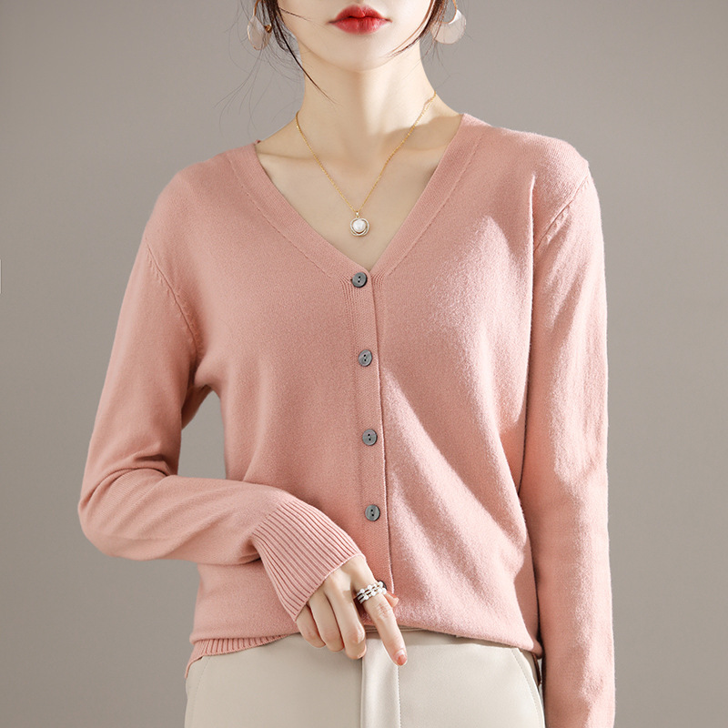 2024秋季薄款V领针织开衫女宽松休闲长袖毛衣小外套百搭打底上衣