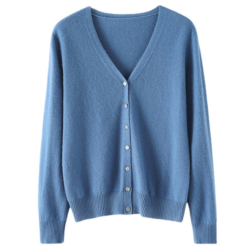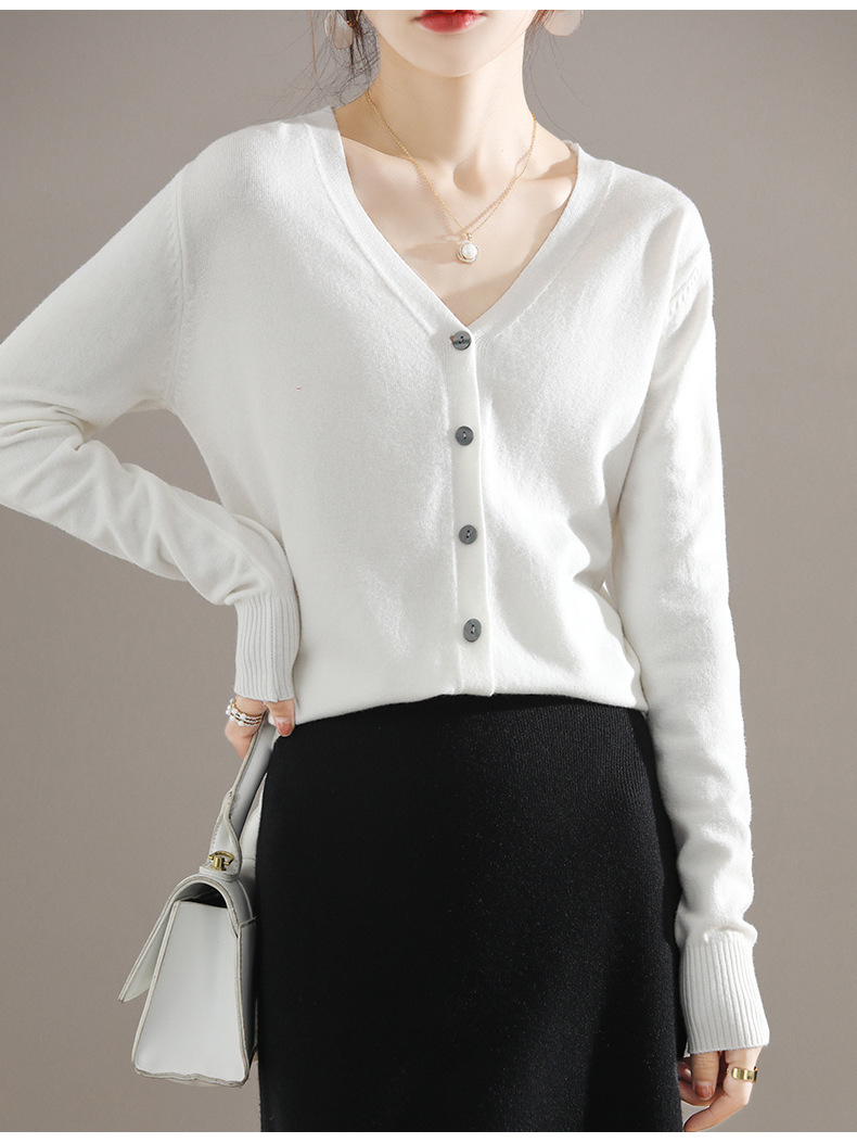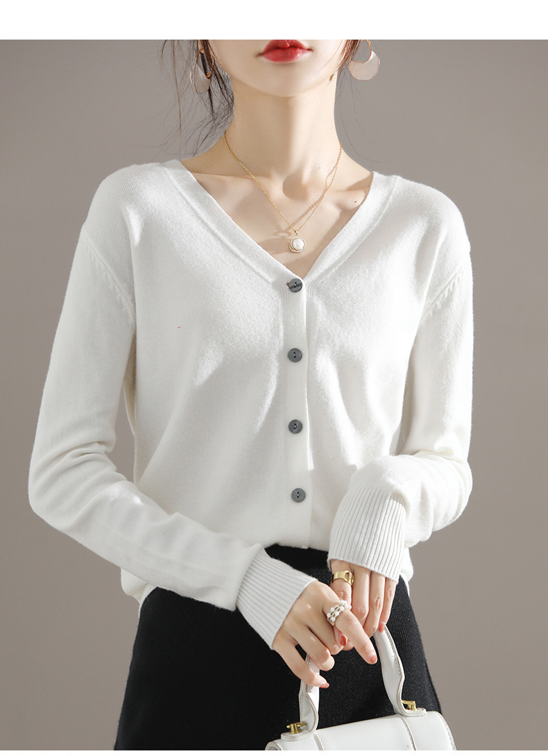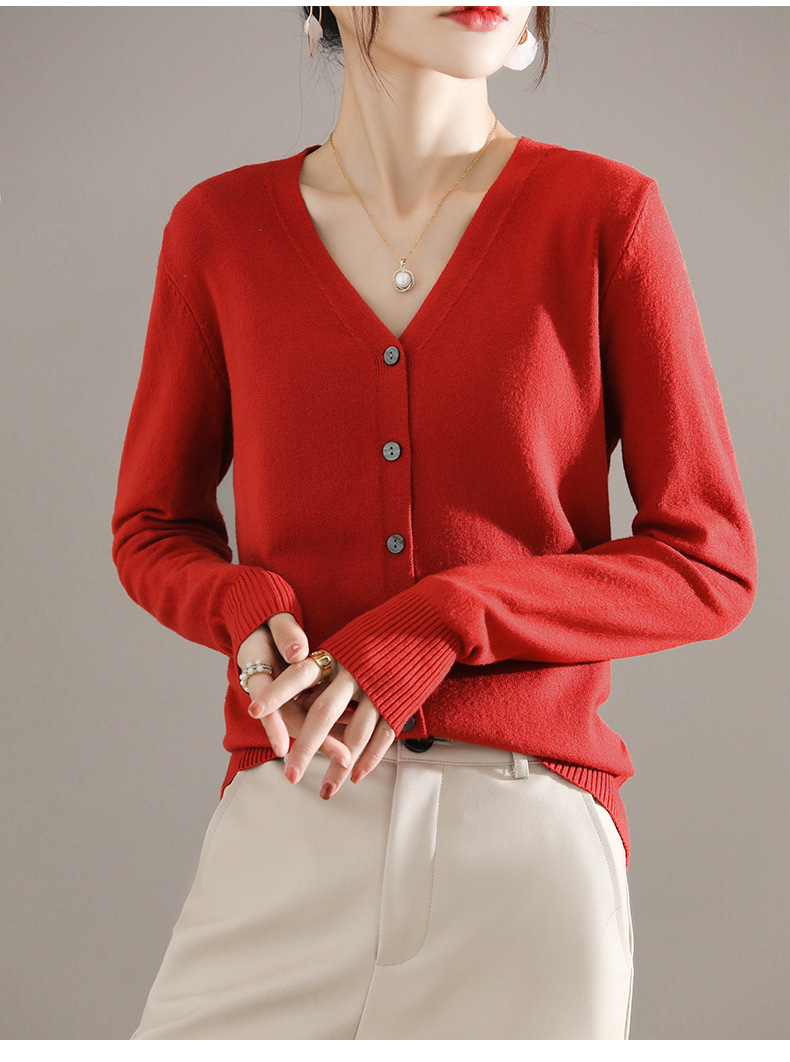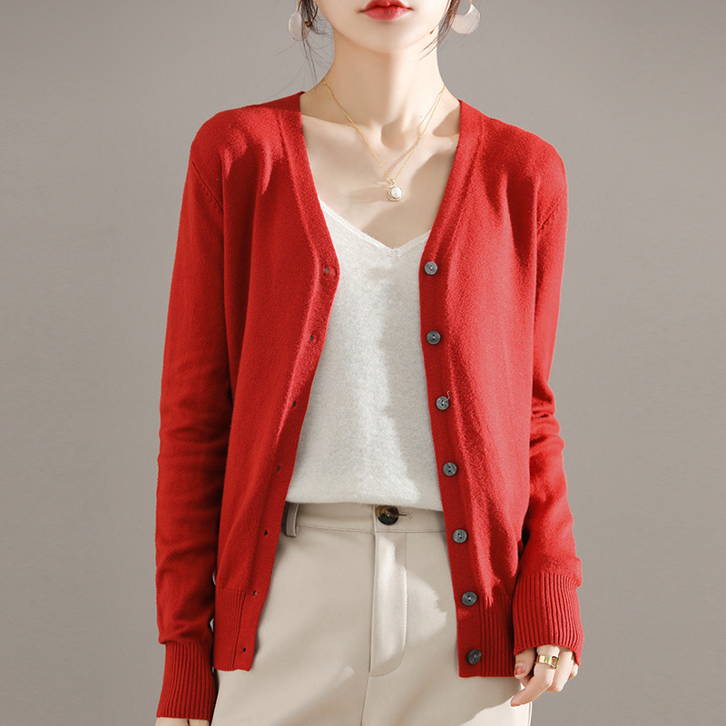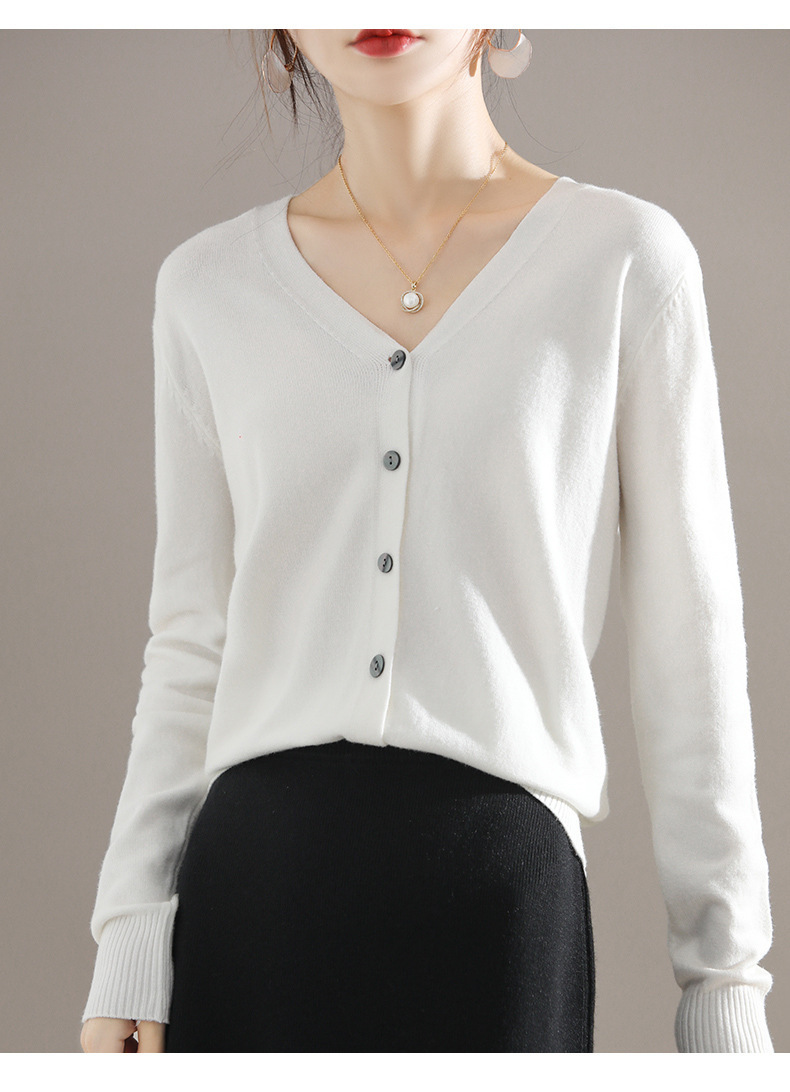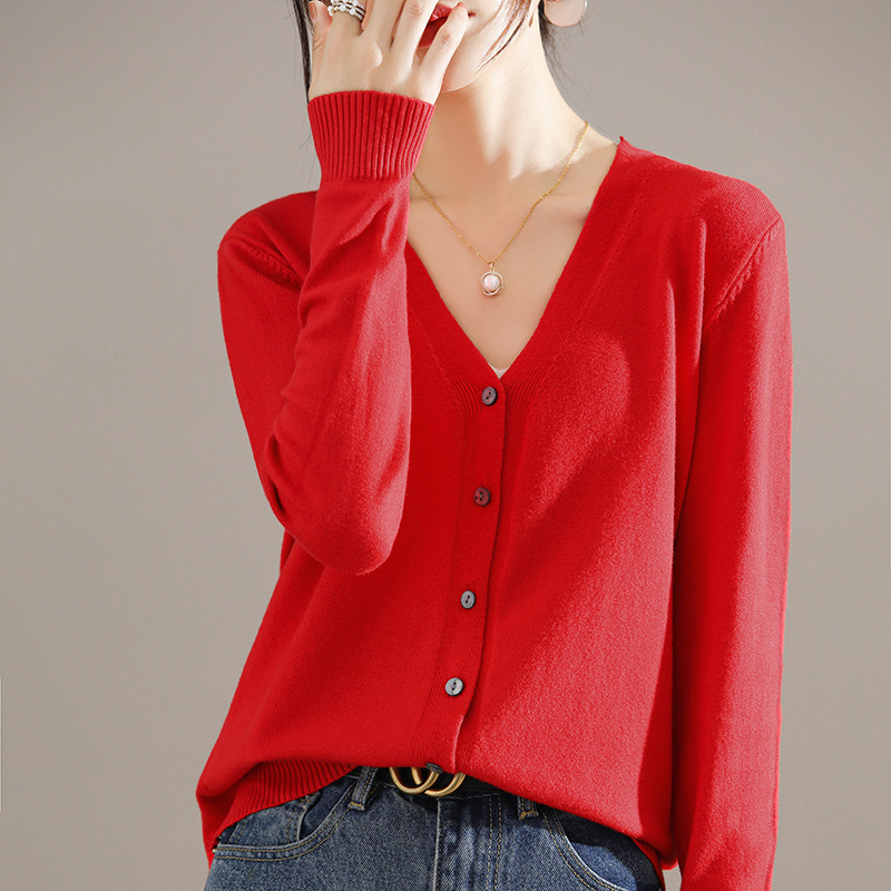 2024秋季薄款V领针织开衫女宽松休闲长袖毛衣小外套百搭打底上衣